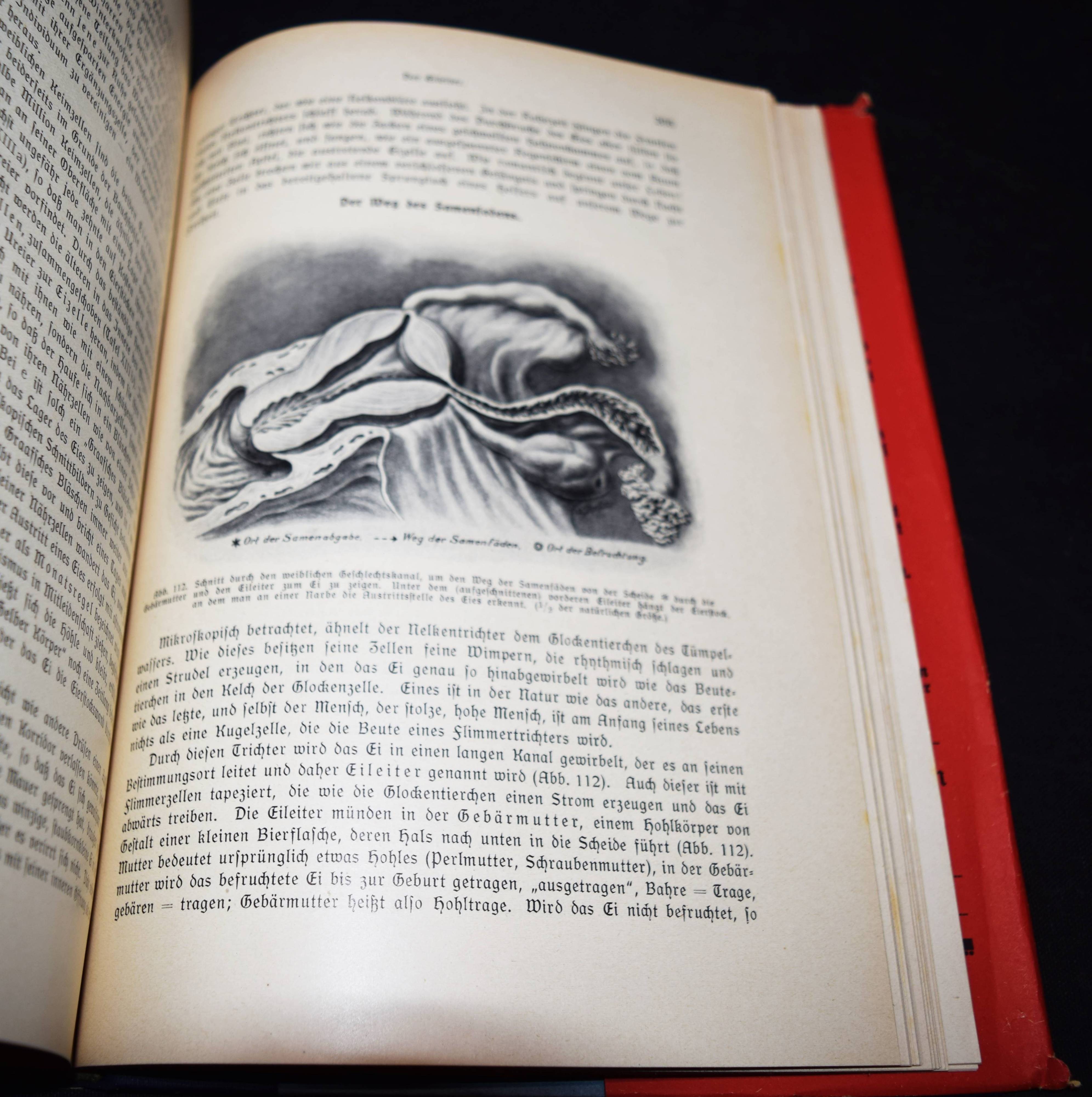Der Mensch als Industriepalast (farbige Lithographie, 95 x 48 cm. als Beilage) – Kahn, Fritz. Das Leben des Menschen. Eine volkstümliche Anatomie, Biologie, Physiologie und Entwicklungsgeschichte des Menschen. 5 Bände. Stuttgart, Kosmos 1926-1931. Gr.-8°. Mit 1058 Textabb.,144 teils farb. Tafeln sowie 3 Beilagen und 1 3-D-Brille in Band V. Orig.-Halbleinenbände. Debschitz, Man Machine – Maschine Mensch, Heidelberg, New York 2009 (mit Abb. der Lithographie auf dem Umschlag). Rössler, P. in: Aus dem Antiquariat, NF 16, Nr. 1, 2018, S. 18-36 (ausführl. zur Editionsgeschichte). Wilk, Modernism – Designing a New World, London, Victoria & Albert Museum, S. 250 (mit Abb.). – Eine „Meisterleistung populärer Wissenschaftsvermittlung“ (Patrick Rössler). – „Eine Pionierleistung des modernen Informationsdesigns, die bis heute durch Themen- und Stilvielfalt, Humor und originelle Analogien fasziniert“ (U. u. T. v. Debschitz). – Vollständiges Exemplar des umfangreichen populärwissenschaftlichen Werks. Die bekannte Plakatbeilage „Der Mensch als Industriepalast“, schon damals der Höhepunkt der Edition, gilt als Pionierarbeit im Informationsdesign und als „Meilenstein der Infografik“ (Die Zeit, 3. April 2014, S. 38). – Mit allen losen Beilagen in der hinteren Deckeltasche von Band V, die beiden Falttafeln (″Der Mensch als Industriepalast“ und „Stammbaum des Menschen“), die Broschüre mit Erläuterungen (2 Teile, XI S. mit 6 Abb.) und die 3-D-Brille. – Der Mediziner Fritz Kahn (1888-1968), wurde mit dieser Reihe zum internationalen Erfolgsautor. Seine Schriften waren in Nazi-Deutschland verboten und wurden vernichtet. Kahn gelang es, mit Unterstützung von Albert Einstein 1941 in die USA zu emigrieren. Sein Wirken und seine „industriellen Visionen der Natur“ (Spiegel online) würdigte eine international viel beachtete Ausstellung im „Berliner Medizinhistorischen Museum der Charité“. – Sehr gutes sauberes Exemplar.