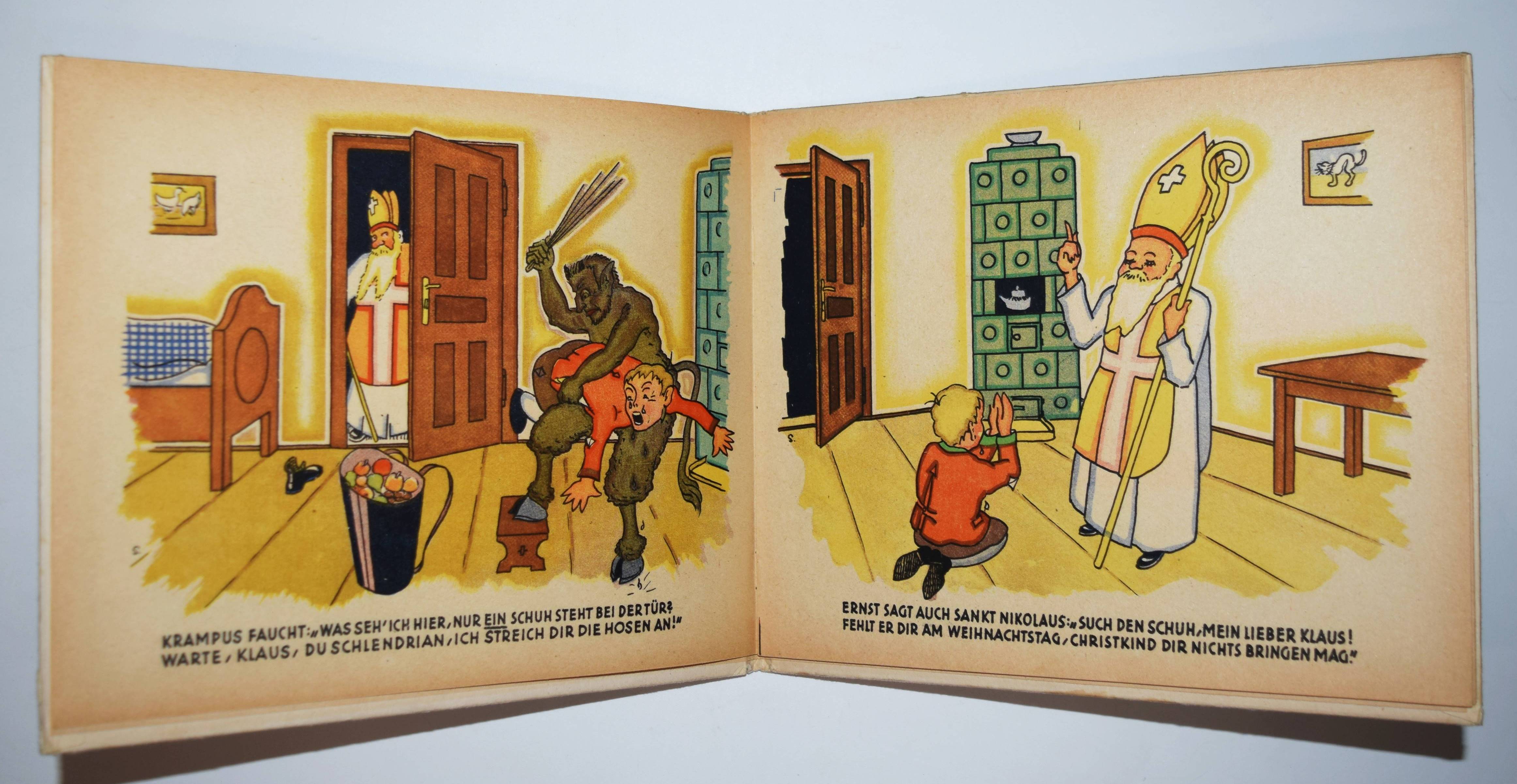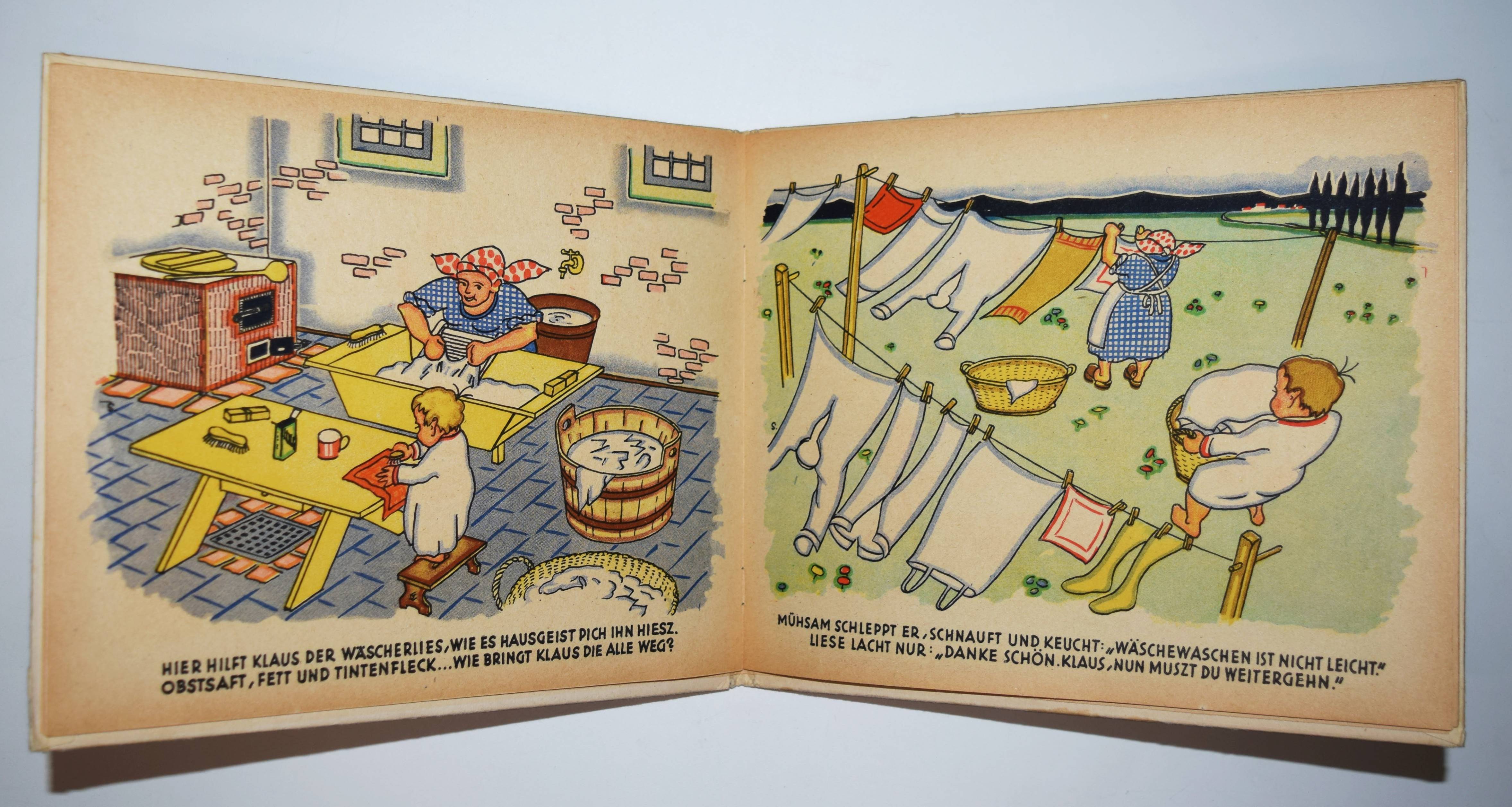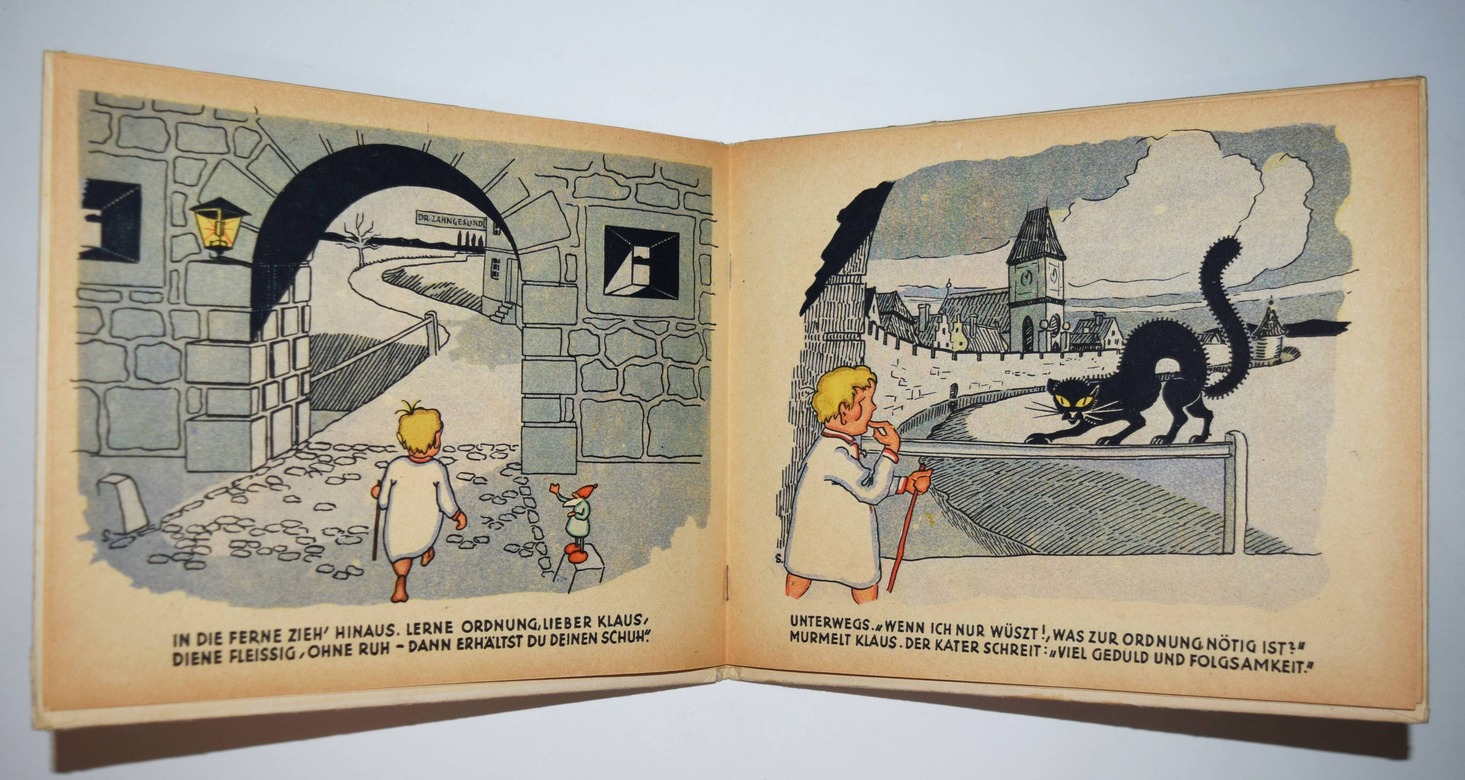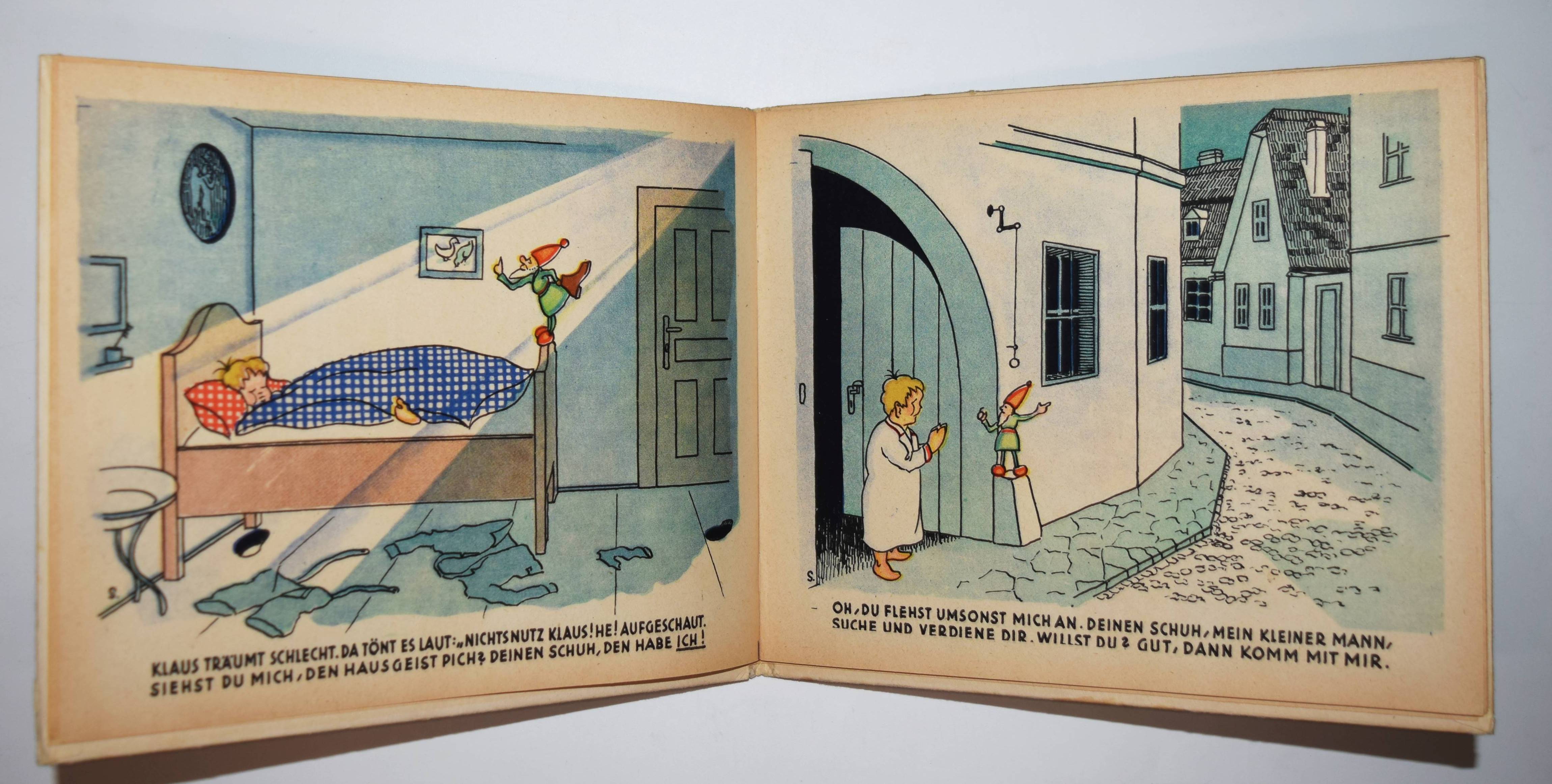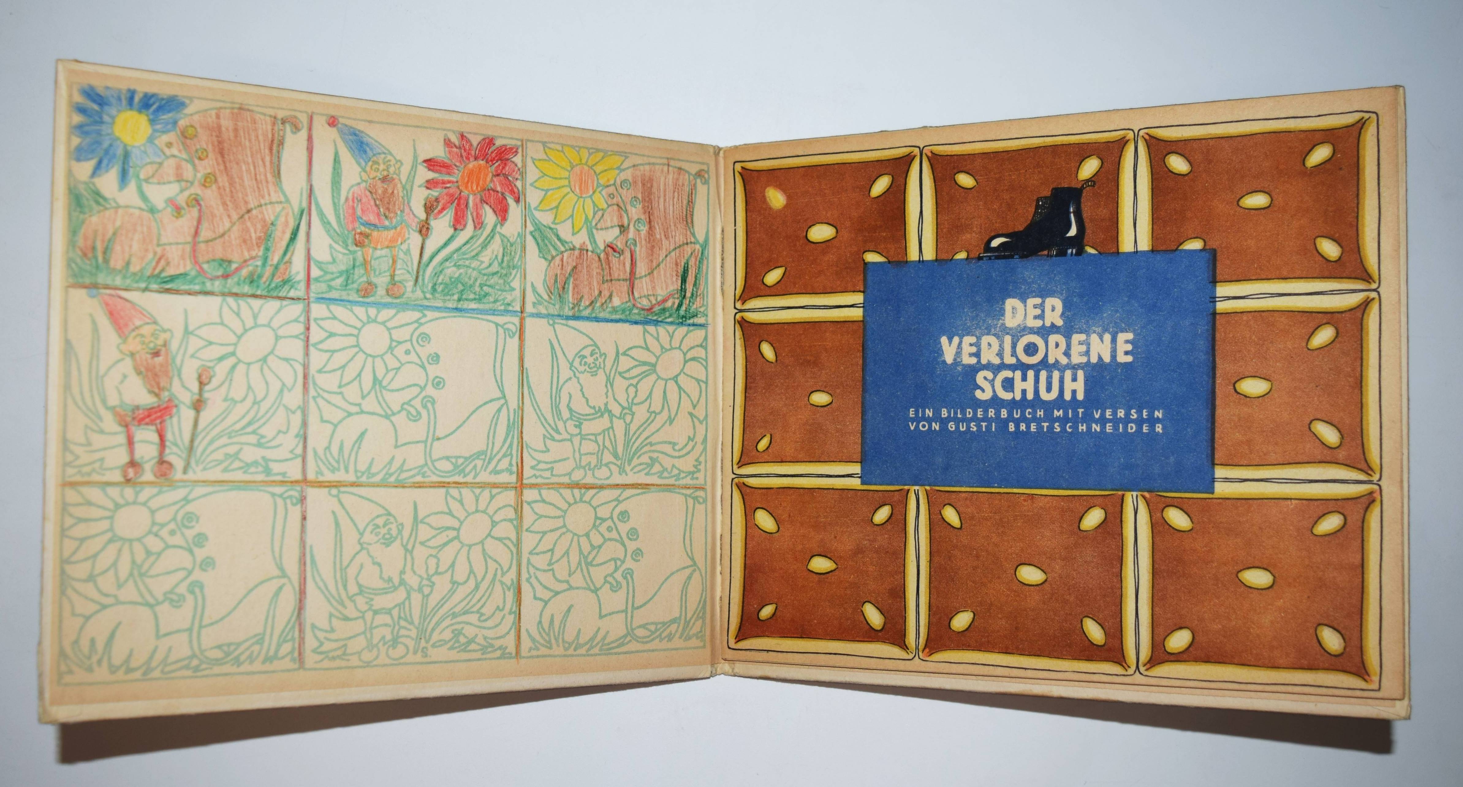 Bretschneider, Gusti (Auguste Juliane). Der verlorene Schuh. Ein Bilderbuch mit Versen. Wien, Gerlach & Wiedling o. J. (1946). Quer-Gr.-8°. [16] Bl. mit farblithogr. Illustrationen. Farbig illustr. Orig.-Pappband. Korotin, biografiA. Lexikon österreichischer Frauen I, 420. – Erste Ausgabe des ersten Bilderbuchs der Wiener Kinderbuch-Autorin und -Künstlerin A. J. Bretschneider (1908-2001). – Bretschneider arbeitete bei einigen Kinderbüchern mit der Illustratorin Margit Doppler (1909-2001) zusammen. – Rückendeckel etwas fleckig, die ersten vier Bilder auf dem vorderen Innendeckel von Kinderhand ankoloriert, sehr gutes Exemplar.