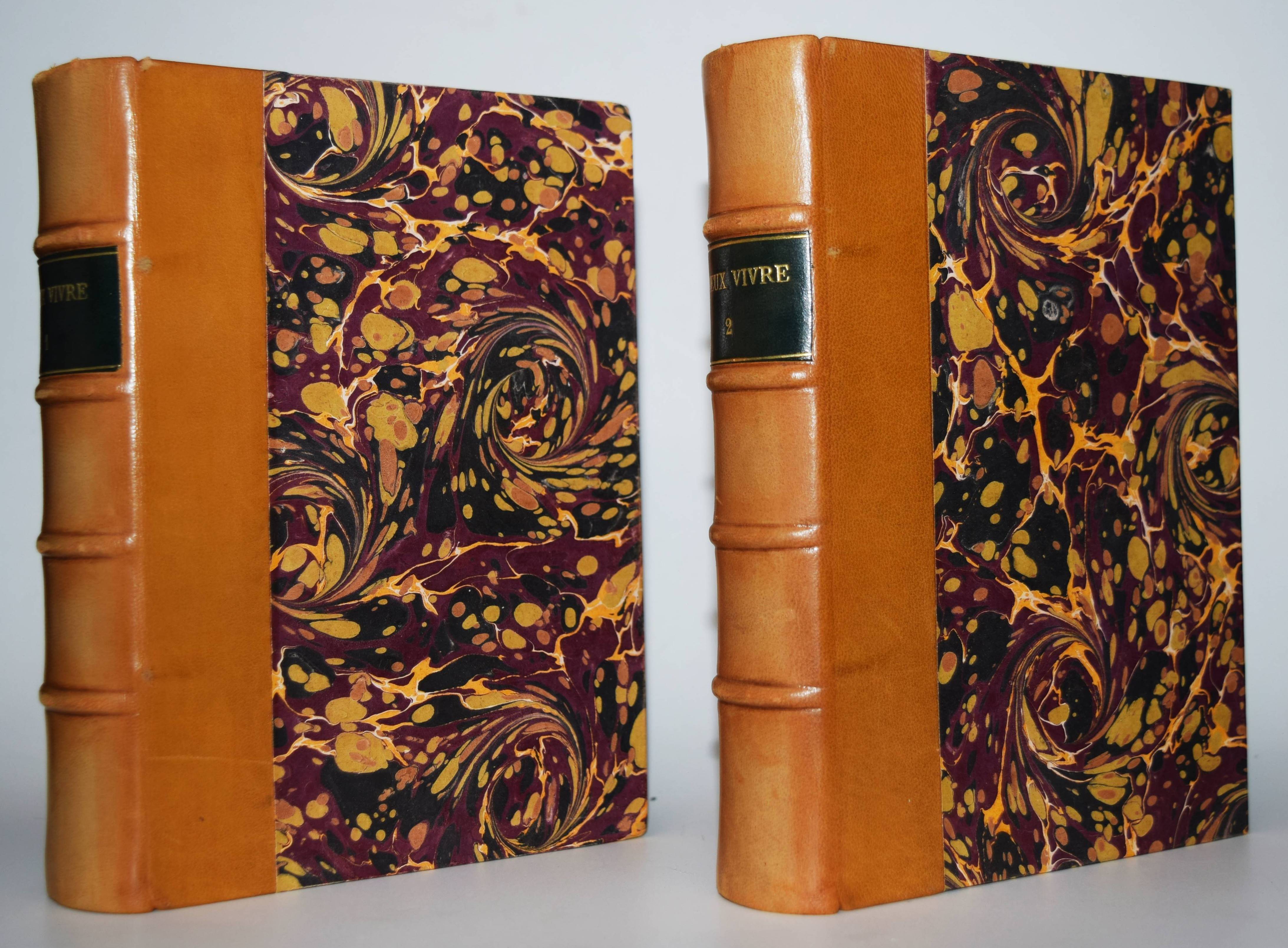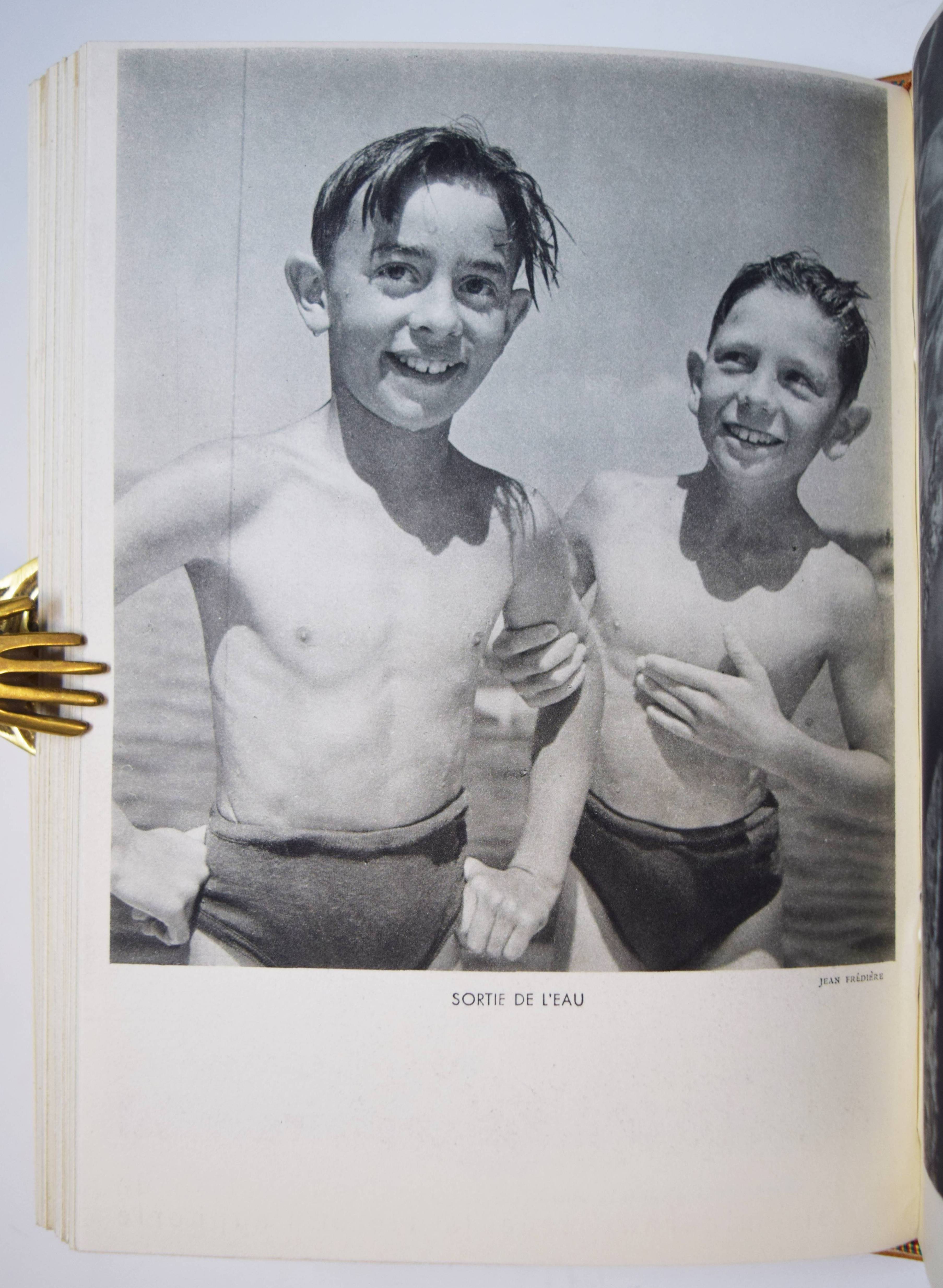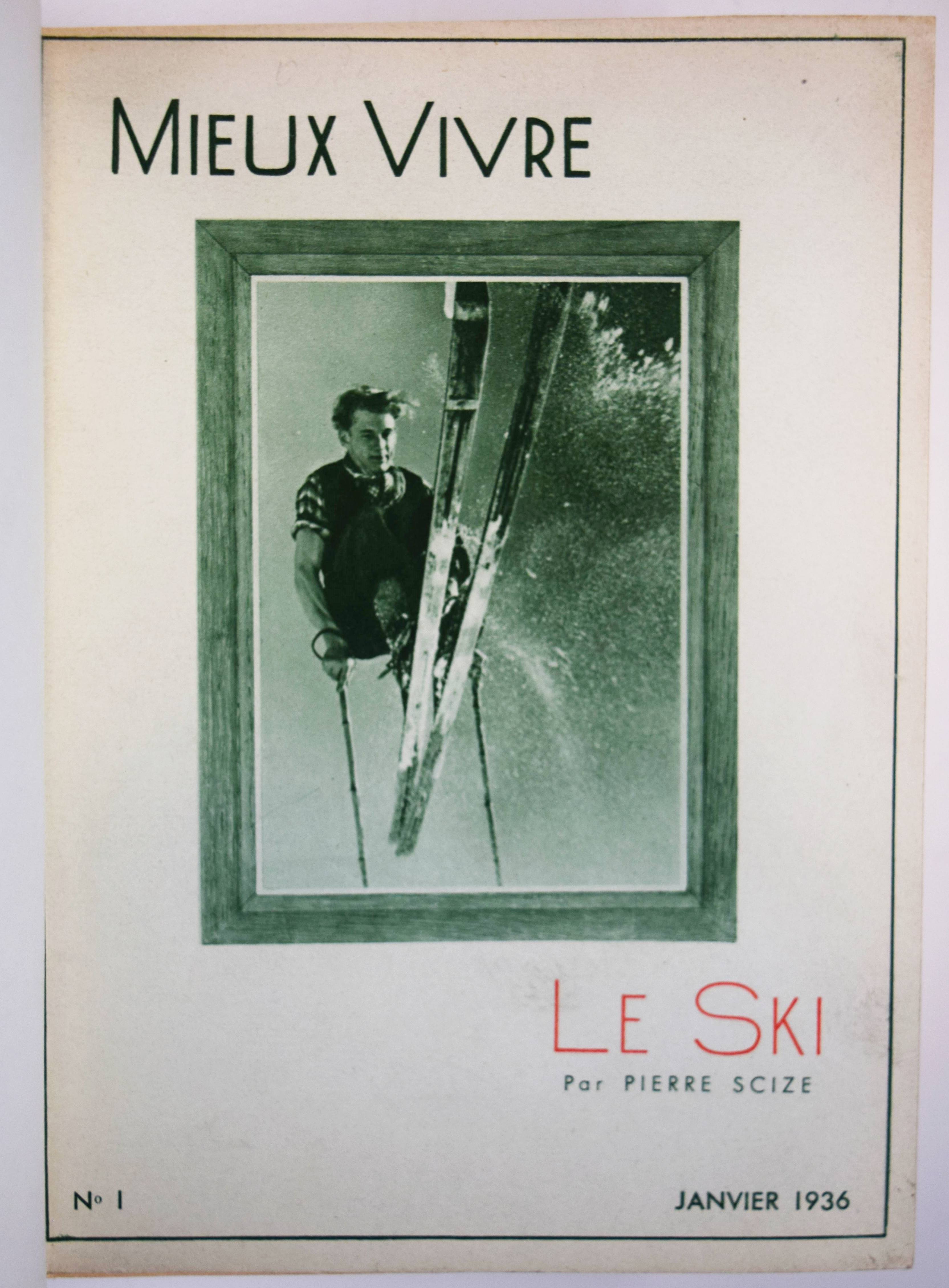 Besson, George (Direction Artistique). Mieux Vivre. Revue mensuelle. (Prémiere à quatrième année, janvier 1936 à septrembre 1939 et un numéro hors-série. 46 fascicules en 2 volumes. Villefranche (Rhône), Socièté Publirex 1936-1939. 8°. Avec de nombreuses illustrations et planches en héliogravure. Reliure en demi-cuir de l’époque avec des étiquettes dorées sur le dos. Série complète de la revue joliment décorée. – Avec des contributions de Marcel Aymé, Tristan Bernard, Jean-Richard Bloch, Francis Carco, Colette, Georges Duhamel, Élie Faure, Louis Guilloux, Francis Jourdain, Paul Léautaud, Georges Lecomte, Charles-Ferdinand Ramuz, Tristan Rémy, Pierre Scize, Emmanuel Sougez, Kees Van Dongen, Maurice de Vlaminck, Charles Vildrac, Henri Wallon et autres. Et avec des photographies de Denise Bellon, Blanc et Demilly, Brassaï, André Kertesz, Ergy Landau, Roger Schall, Emmanuel Sougez, Maurice Tabard, René Zuber et autres. – Chaque cahier traite d’un thème, par exemple: Le Ski, Manger, Boire, Dancer, La Music, Le Football, Les Fleurs, Lire, La Photographie (par Emmanuel Sougez) etc. – Exemplaire très bien conservé et propre. – Complete series of the beautifully decorated magazine. – With contributions by Marcel Aymé, Tristan Bernard, Jean-Richard Bloch, Francis Carco, Colette, Georges Duhamel, Élie Faure, Louis Guilloux, Francis Jourdain, Paul Léautaud, Georges Lecomte, Charles-Ferdinand Ramuz, Tristan Rémy, Pierre Scize, Emmanuel Sougez, Kees Van Dongen, Maurice de Vlaminck, Charles Vildrac, Henri Wallon and others. And with photographs by Denis Bellon, Blanc et Demilly, Brassaï, André Kertesz, Ergy Landau, Roger Schall, Emmanuel Sougez, Maurice Tabard, René Zuber and others. – Each issue deals with a theme, for example: Skiing, Eating, Drinking, Dancing, Music, Football, Flowers, Reading, Photography (by Emmanuel Sougez) etc. – A very well preserved and clean copy.