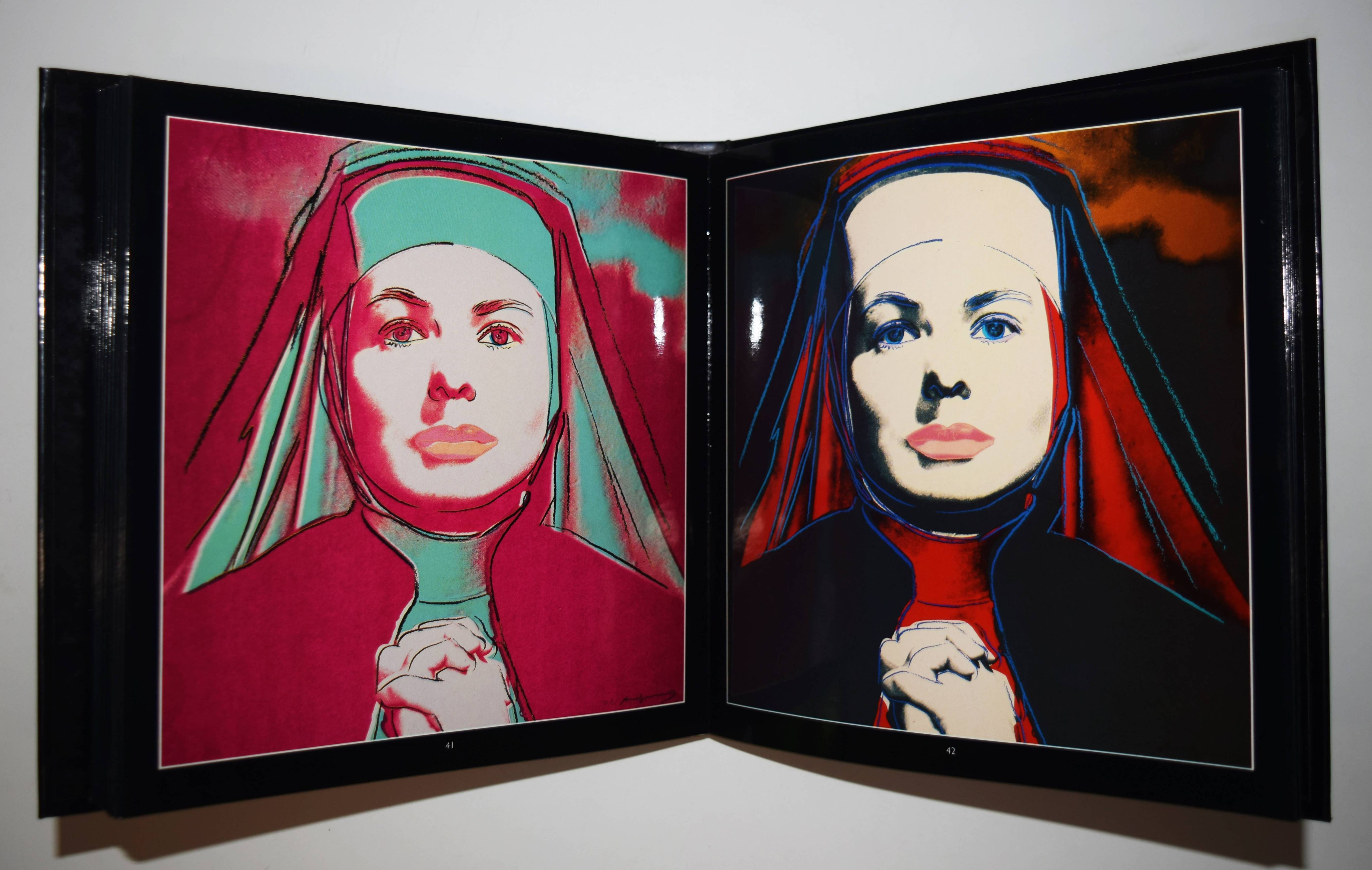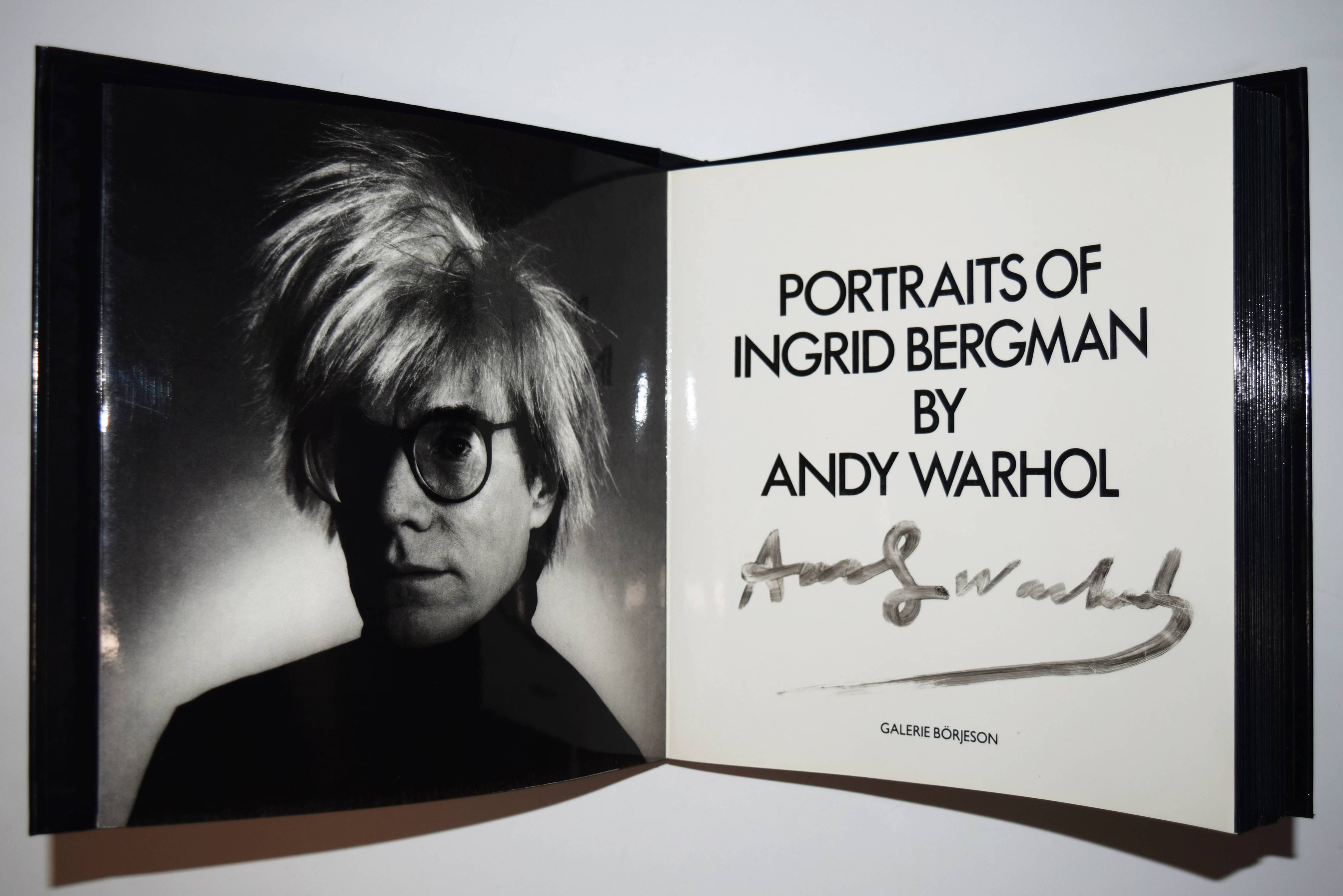 Warhol – Börjeson, Per-Olov (Ed.). Andy Warhol – Portraits of Ingrid Bergman. Malmö, Galerie Börjeson (1983). Gr.-8°. Leporello, [4] Bl. und 48 Farbtafeln. Farbig illustr. Orig.-Pappband. Von A. Warhol auf dem Titelblatt signiert. – Mit einem Vorwort von Per-Olov Börjeson und bekannten Leitsätzen Warhols in Englisch und Schwedisch. – Wie meist ohne den Schuber, sehr gutes Exemplar. – Signed by A. Warhol on the title page. – With a foreword by Per-Olov Börjeson and Warhol’s well-known mottoes in English and Swedish. – As usual without the slipcase, a very good copy.