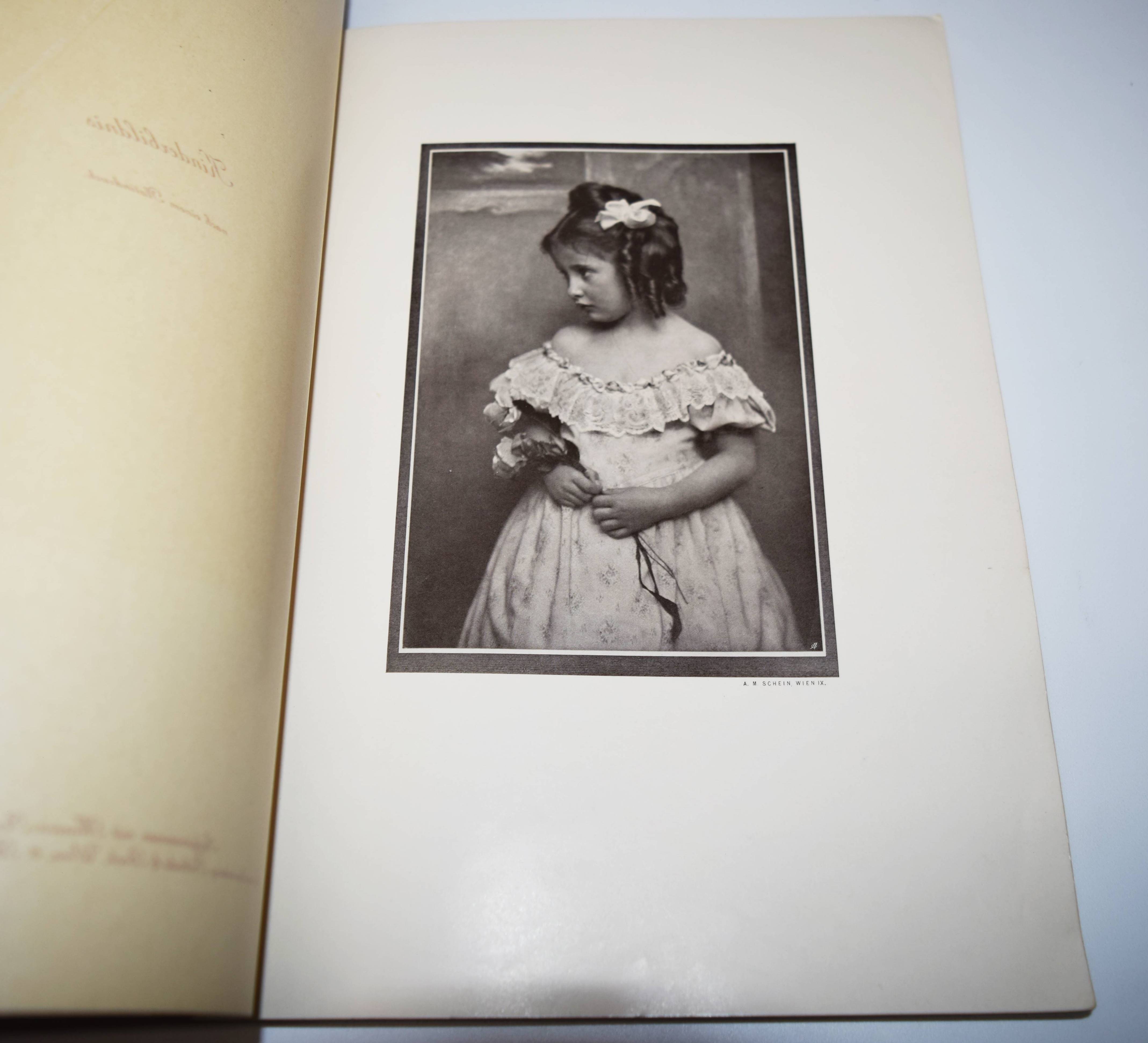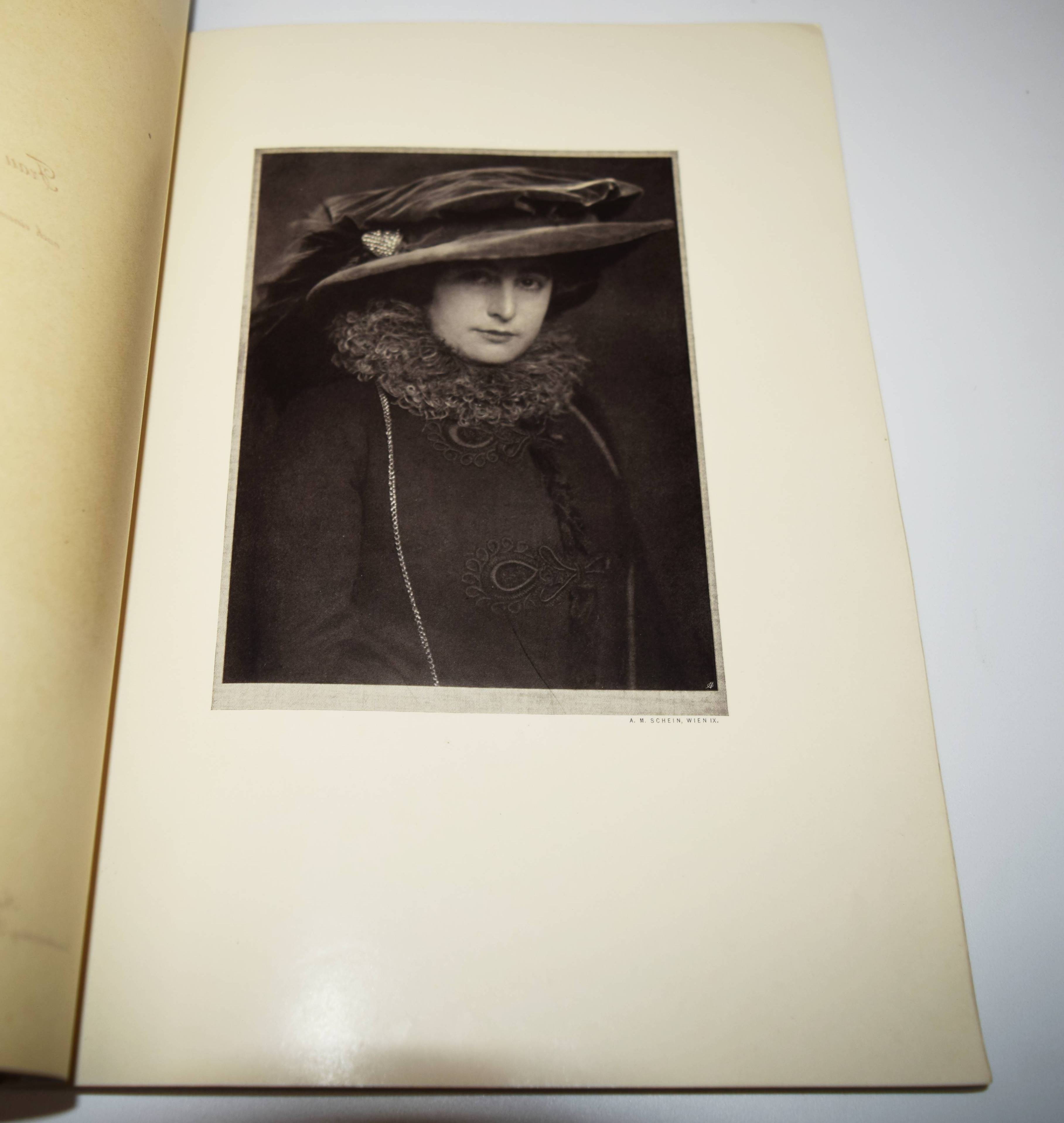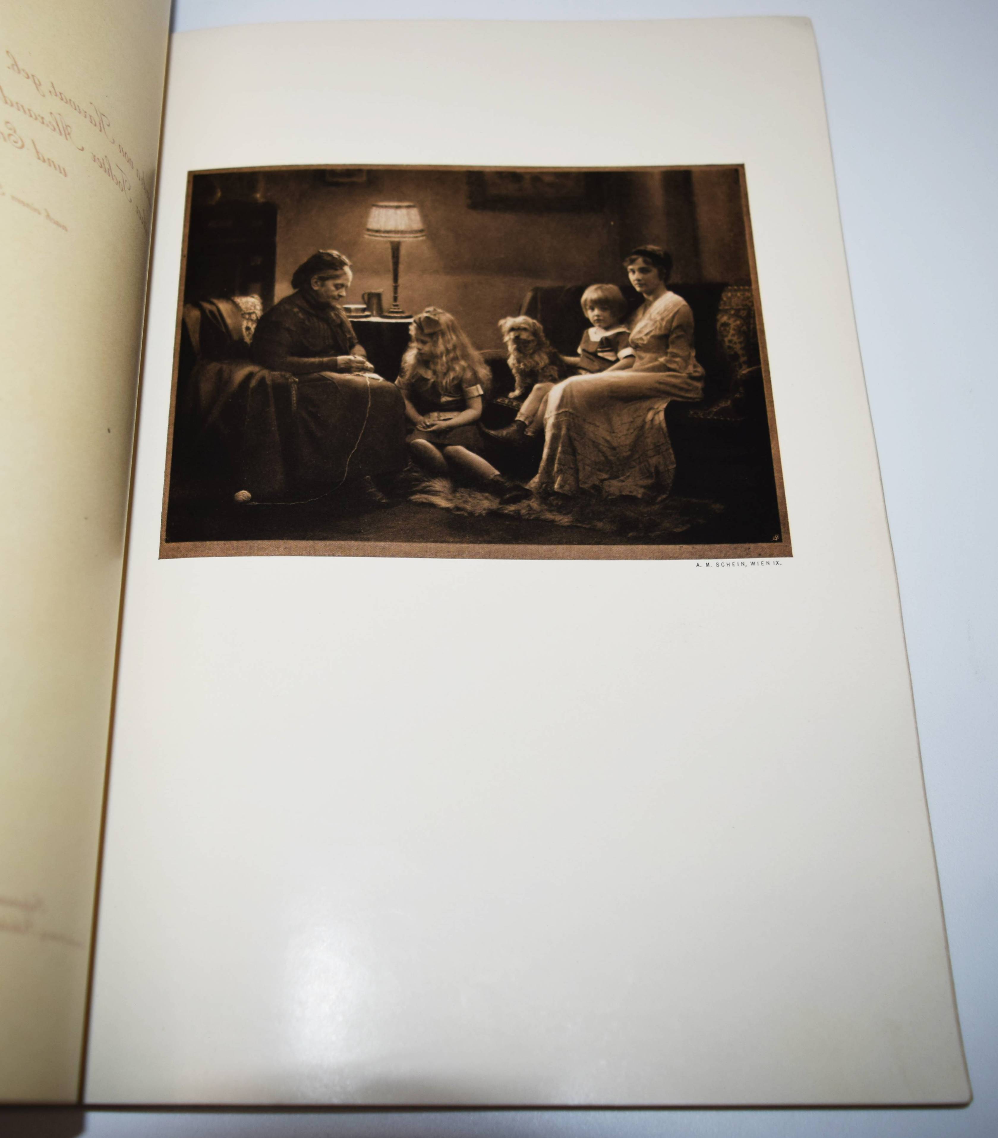 Schein, A(braham) M(yron auch Meyer). Album. 64 verkleinerte Reproduktionen nach Original-Photographien. Mit einem Vorwort von A. Jencic. Wien, Selbstverlag (1915). [66] Bl. mit 64 Lichtdruck-Tafeln. Orig.-Kartonumschlag (als Blockbuch gebunden mit Kordelheftung). Heidtmann 10739. Hochreiter, Geschichte der Fotografie in Österreich II, 174 f. – Einzige Ausgabe, selten. – Mit Portraits aus dem Wiener Adel, der Violinvirturosin Daisy Kennedy, Prof. Ot. Sevcik mit seinem Schüler Wladimir Resnikov, des Pianisten Edwin Hughes, des Violinvirtuosen Charles Hyll, Kinder-Portraits und Portrait-Studien. Die letzten vier Tafeln mit homoerotischen Akt-Aufnahmen. – Der in Dnjepropetrowsk (Russland) geborene Fotograf A. M. Schein (1871-1970) „gründete in Wien, nachdem er vermutlich kurz nach der Jahrhundertwende hierher gekommen war, ein Fotoatelier, musste jedoch 1939 nach Argentinien emigrieren. Seine großformatigen Bromölumdrucke (er erfand auch einen elektronischen Bromölpinsel) machten ihn zu einem der renommiertesten Wiener Porträtisten der beiden ersten Jahrzehnte des 20. Jahrhunderts; er wurde auch durch Aktstudien bekannt“ (Felix Czeike, Historisches Lexikon Wien). – Rücken mit restaurierten Fehlstellen, Deckel etwas berieben und angestaubt, sonst gut erhalten.