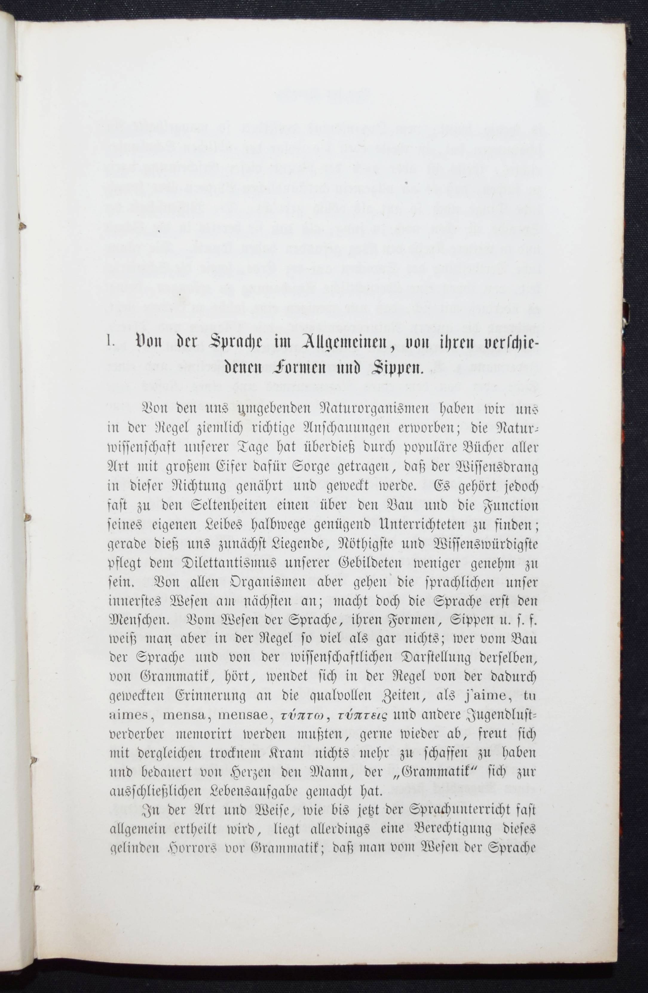 Schleicher, August. Die deutsche Sprache. Stuttgart, J. G. Cotta 1860. 8°. VI, 340 S. Halbleinenband der Zeit. NDB XXIII, 50. – Erste Ausgabe. – Der Sprachwissenschaftler A. Schleicher (1821-1868), seit 1853 ordentlicher Professor der deutschen und vergleichenden Sprachwissenschaft und des Sanskrit in Prag, „leistete Hervorragendes sowohl auf theoretischem als auch praktisch-philologischem Gebiet, so in seinem „Compendium der vergleichenden Grammatik der indogerman. Sprachen“ (2 Bde., 1861/62, 41876, Nachdr. 1974). Von Hegelianischen Ideen beeinflußt, bevorzugte er hinsichtlich der geschichtlichen Beziehungen von Sprachen zueinander bzw. von Sprachgruppierungen eine dialektische Sehweise“ (G. Bense in NDB). – Titelblatt mehrfach gestempelt, gutes Exemplar.