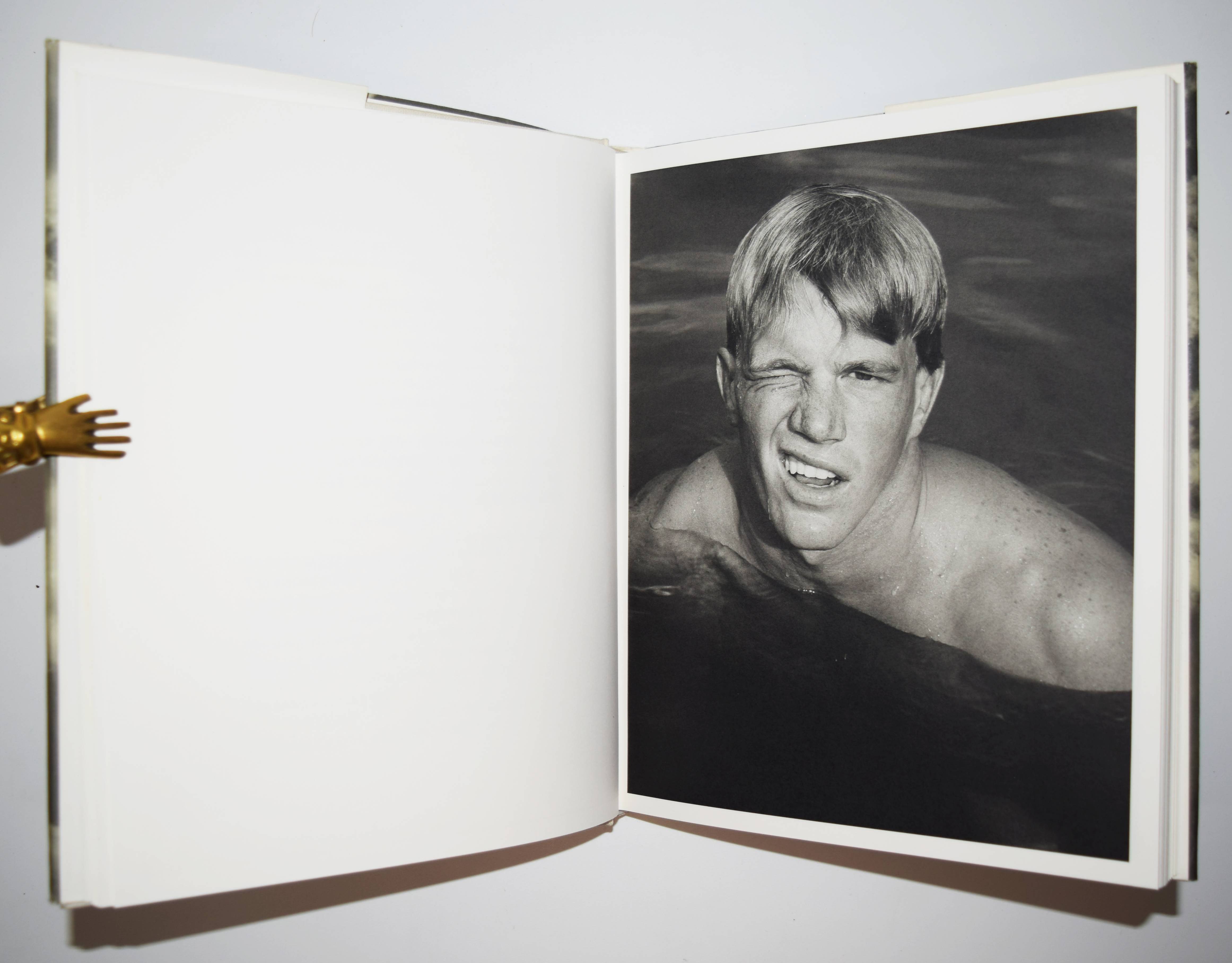 Weber, Bruce. Bear Pond. (Essay „Gold Day“ by Reynolds Price. Design by John Cheim). New York, Bulfinch Press, Little, Brown and Company (1990). 4° (26 x 21 cm.). [7] Bl., 100 Duotone-Tafeln, [5] Bl. Orig.-Leinenband mit illustr. Schutzumschlag. Auer 685. Bertolotti 265. Koetzle, Fotografen A-Z 422. Roth, The Open Book 346 f. – Erste Ausgabe. – Eines der wichtigsten Akt-Fotobücher des „Kultfotograf der 80er und 90er Jahre“ (H.-M. Koetzle). – „In Bear Pond (1990) – as in several of his many photography books-the portraitist and photographer Bruce Weber (born 1946) dwelt on the plastic beauty of the athletic male body. His sculptural nudes are often very natural and relaxed, and are reminiscent of those by the German naturist photographers of the inter-war years; the fascination they exude is of an umistakably homoerotic nature“ (A. Bertolotti). – Sehr gutes sauberes Exemplar.
