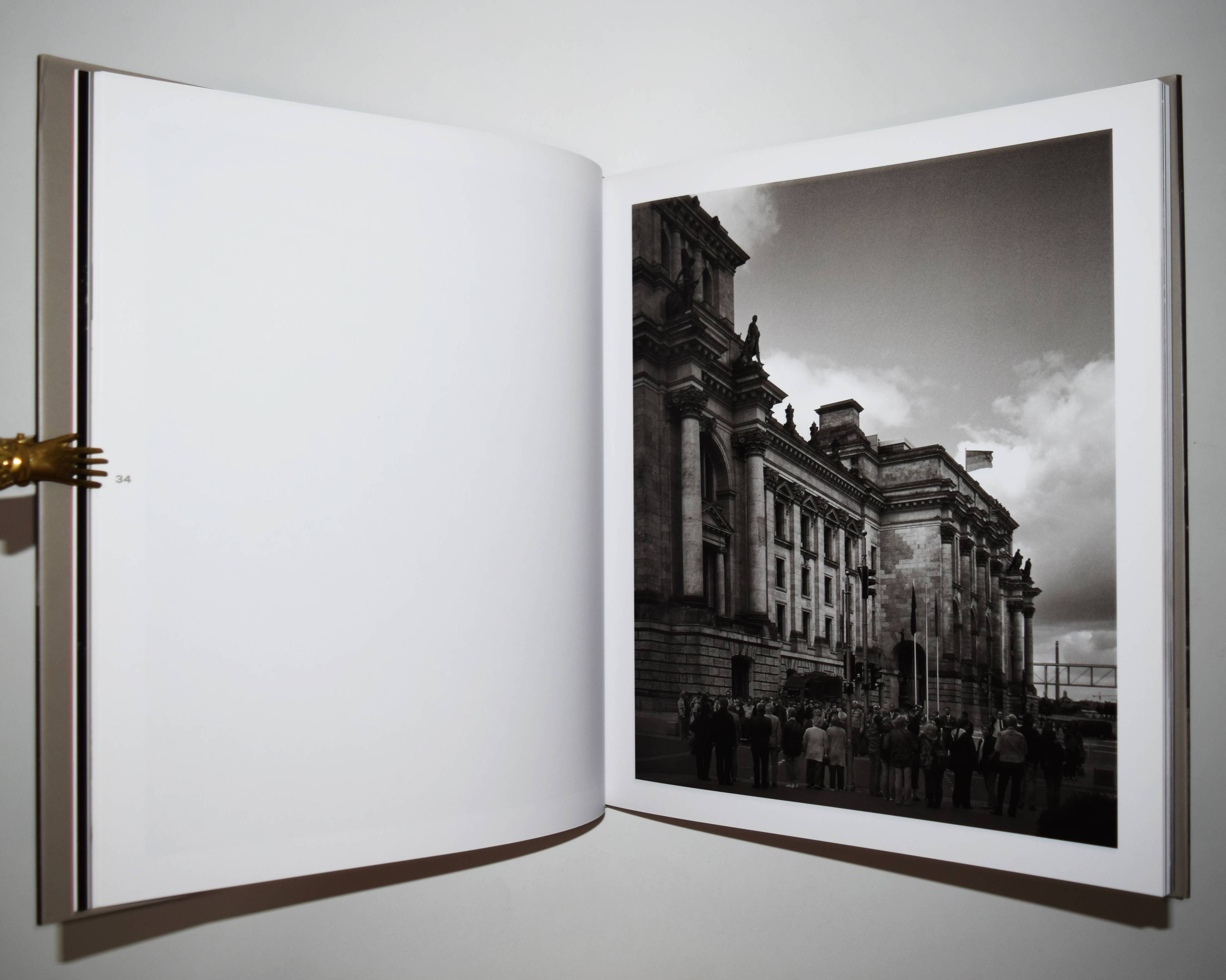 Langer, Jason. Berlin. (Text Bill Kouwenhoven, Shelly Kupferberg, Jason Langer. Translation Steve Anderson (Shelly Kupferberg essay). Design Matthew Papa). Bielefeld, Berlin, Kerber Verlag (2022). Gr.-4° (33 x 28 cm.). 176 S. mit 140 Duotone-Tafeln. Illustr. Orig.-Pappband mit illustr. Schutzumschlag. (Kerber photo). Erste Ausgabe. – Von J. Langer auf dem Widmungsblatt signiert. – „Jason Langer (*1967) lived on a kibbutz in Israel from the age of six to eleven, formative years which have shaped him to this day, so when he was invited to Berlin in 2008 to photograph the city, he met the suggestion with trepidation. Associating the German capital with its 20th century atrocities, he saw it as a cold, unfriendly place. Even so he accepted, and from 2009-2013 he explored the city mostly on foot, with two film cameras and black and white film. He photographed Berlin with an eye towards places where Jewish people were deported or killed but also took it as an opportunity to confront and update his preconceived notions and find a new narrative of contemporary Germany and the German people. Photographing the streets, people he met on the way, and acquaintances who grew to be friends, he tracked traces of the Holocaust, the Cold War, and imagined the freedom and creative expression of the roaring ’20s. An individual portrait of Berlin, the past and the present, captured in stunning black and white photography 140 b/w illustrations An individual portrait in black and white of Berlin, past and present, by photographer Jason Langer“ (Kerber Verlag). – Sehr gutes Exemplar.