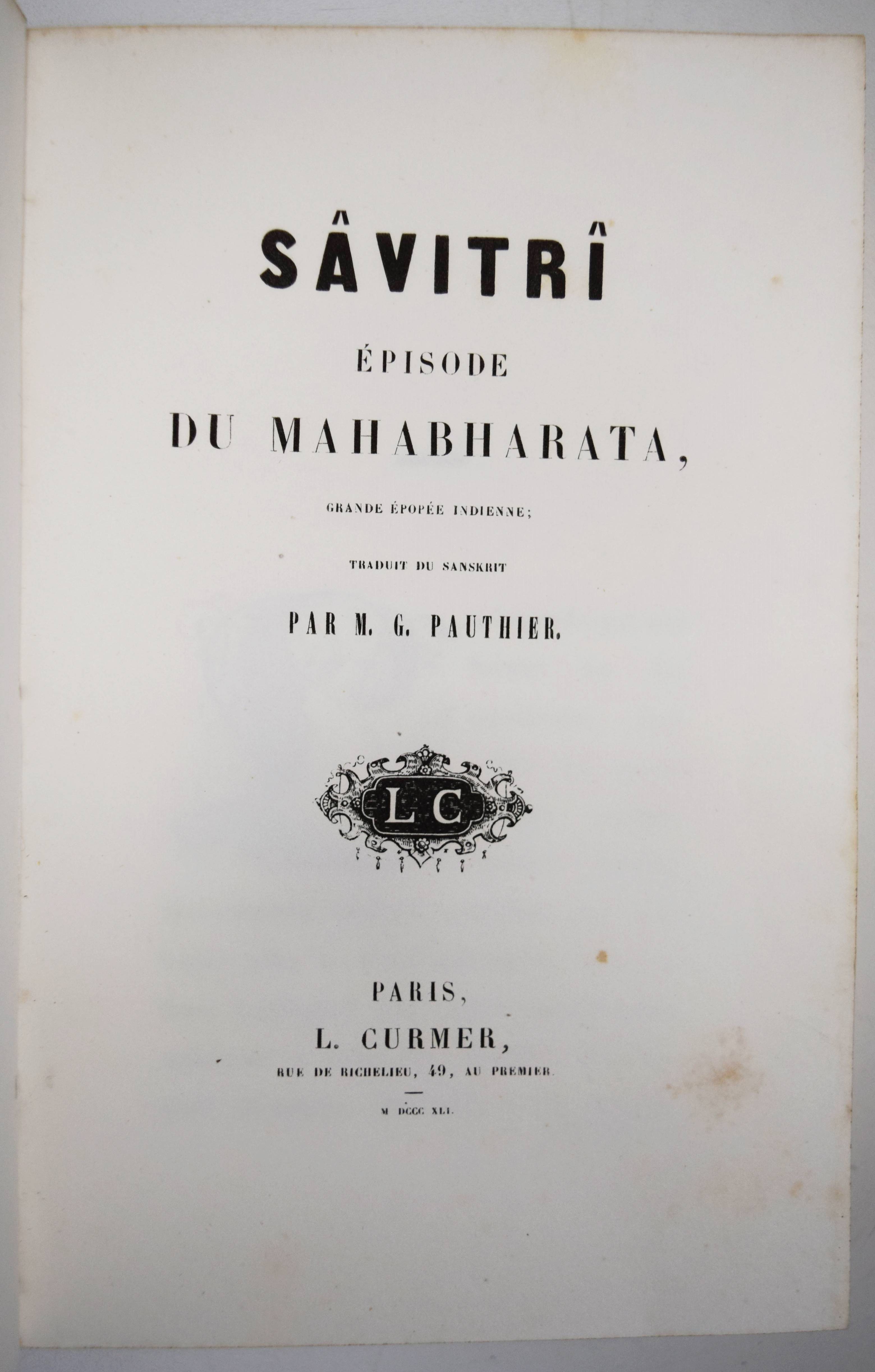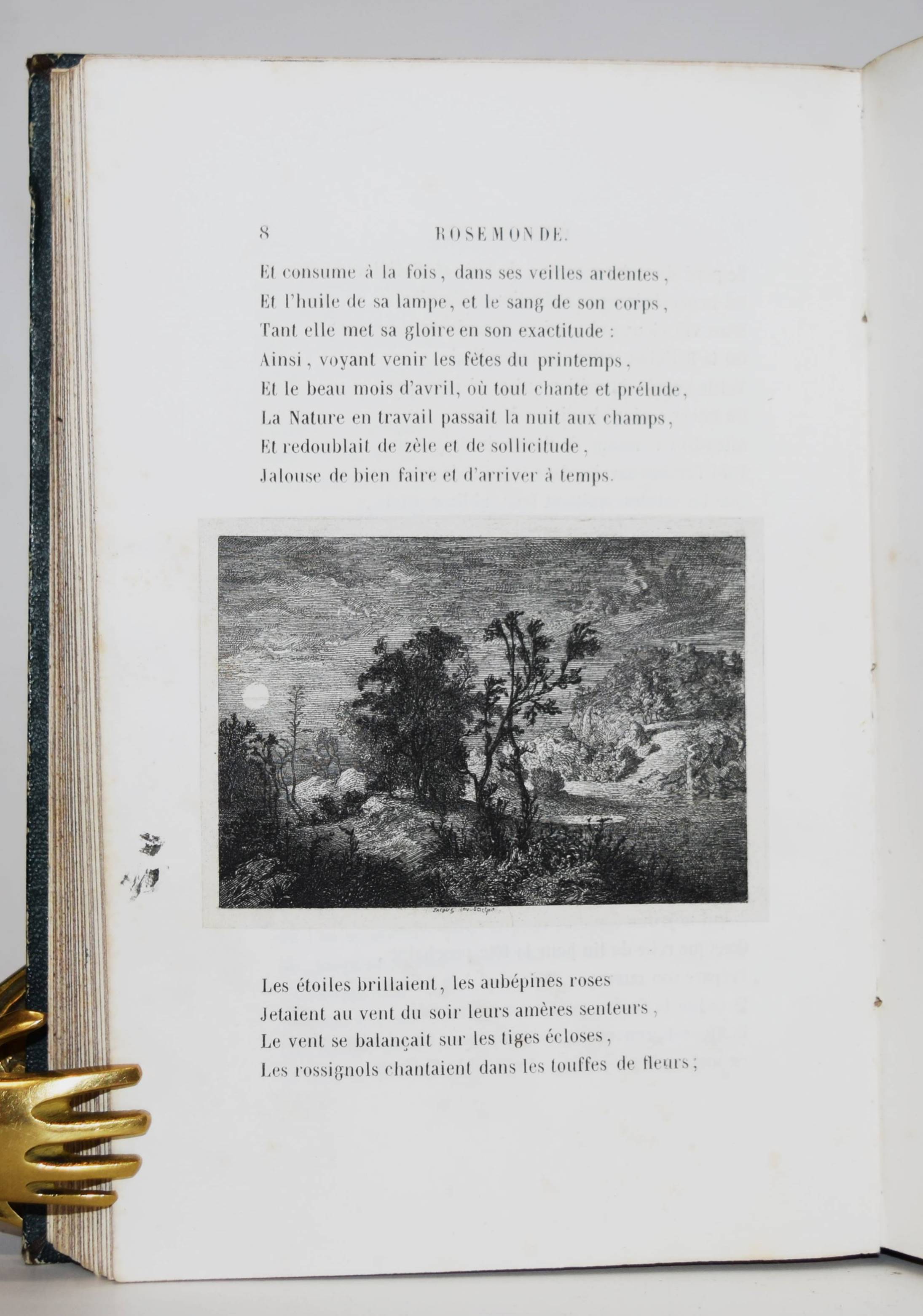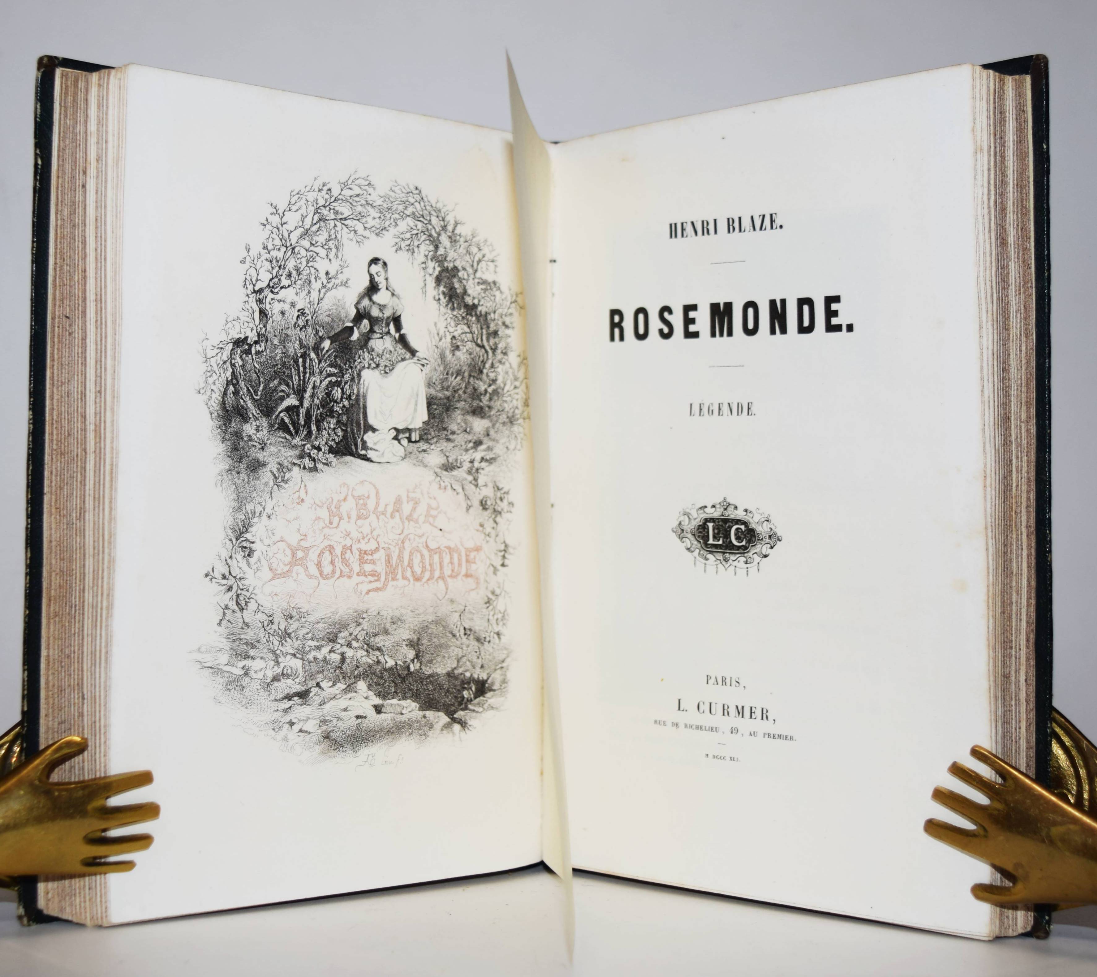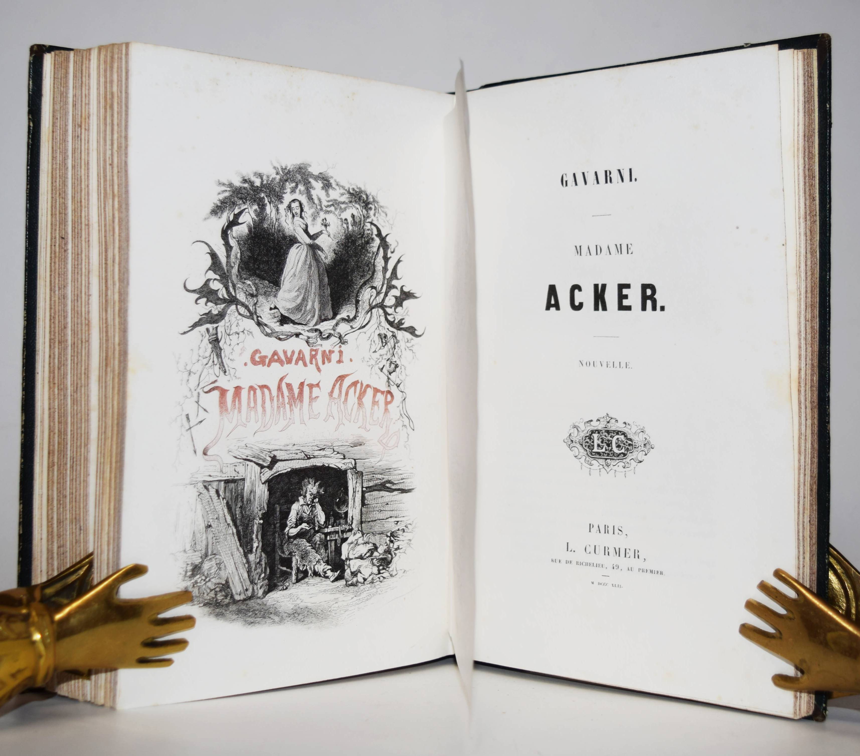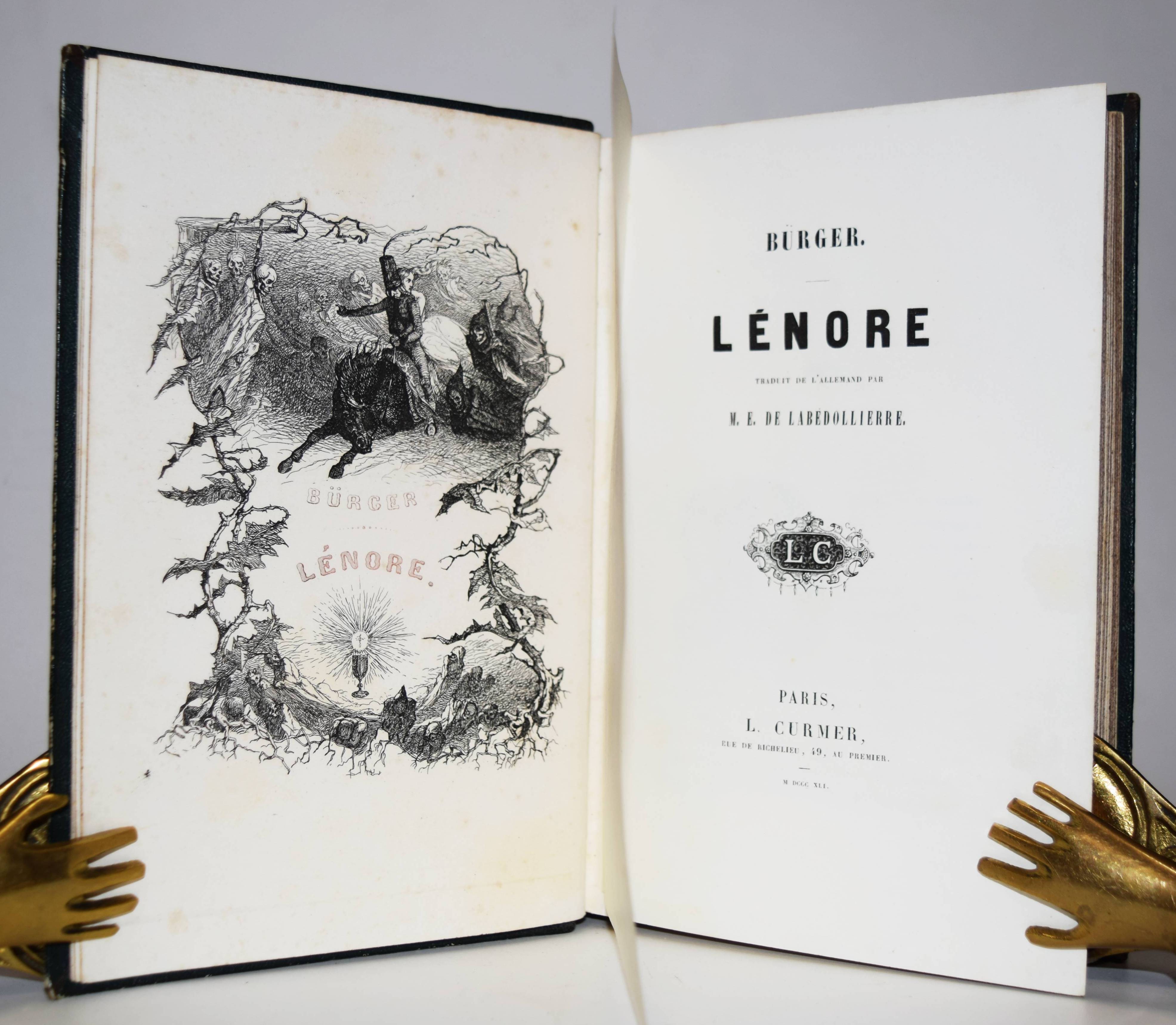 La Pléiade. Ballades, Fabliaux, Nouvelles et Légendes. Homère, Veda-Vyasa, Marie de France, Burger, Hoffmann, Ludwig Tieck, Ch. Dickens, Gavarni, H. Blaze. (Traduction de E. de la Bédollière). 10 Teile in 1 Band. Paris, L. Curmer 1842. 8°. Mit 11 Holzstich-Frontsp. (darunter ein allgemeines Frontsp.), 10 Radierungen im Text auf China und 56 Holzschnitt-Vignetten von Daumier, Garvani, Johannot, Lami u.v.a. nach Penguilly, Jacque, Jeanron, Trimolet, Féart, Daubigny u. Pauquet. Halblederband der Zeit mit goldgepr. Rückentitel und dezenter Rückenverg. Brivois 335 (″très recherché aujourd’hui et rare en bonne condition“). Carteret III, 499 ff. Sander 579. Vicaire VI, 704. – Erste Ausgabe der, wegen der schönen Ausstattung gesuchten Anthologie der Romantik in Frankreich. – „Cette publication est la plus importante des éditions Curmer, une pléiade littérateurs a collaboré, dont Balzac, Janin, Karr ainsi que les dessinateurs les plus estimés de l’époque: Gavarni, Daumier, Lami, Johannot“ (Carteret). – Das Werk erschien 1841 bis 1842 in Lieferungen. – Sehr gutes sauberes Exemplar.