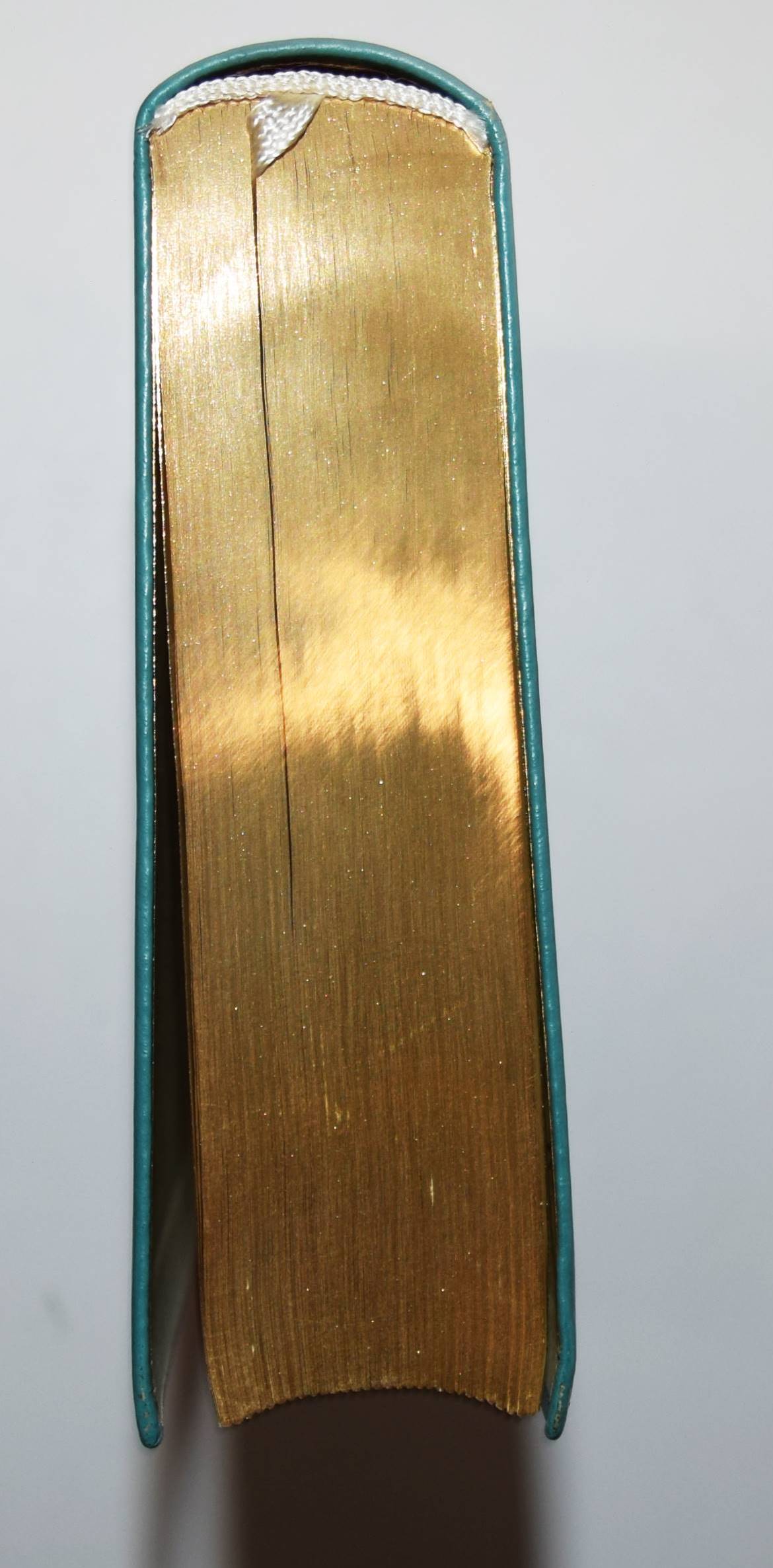 Manzoni, Alessandro. Die Verlobten. Eine Mailandische Geschichte aus dem siebzehnten Jahrhundert entdeckt und neu gestaltet. (Vollständige Ausgabe, aus dem Italienischen übertragen von Ernst Wiegand Junker. Mit einem Nachwort des Übersetzers… und den Illustrationen der Ausgabe von 1840. Mit einem Essay von Umberto Eco, übersetzt von Burkhart Kroeber). 3. Auflage. München, Winkler Verlag (1988) 8°. 953, (1) S. Türkisfarb. Orig.-Lederband mit goldgepr. Rückentitel, Linienvergoldung, Deckelsignatur und Kopfgoldschnitt in Pappschuber. (Winkler Weltliteratur, Dünndruck-Ausgabe). Sehr gutes Exemplar der schönen Ganzlederausgabe.