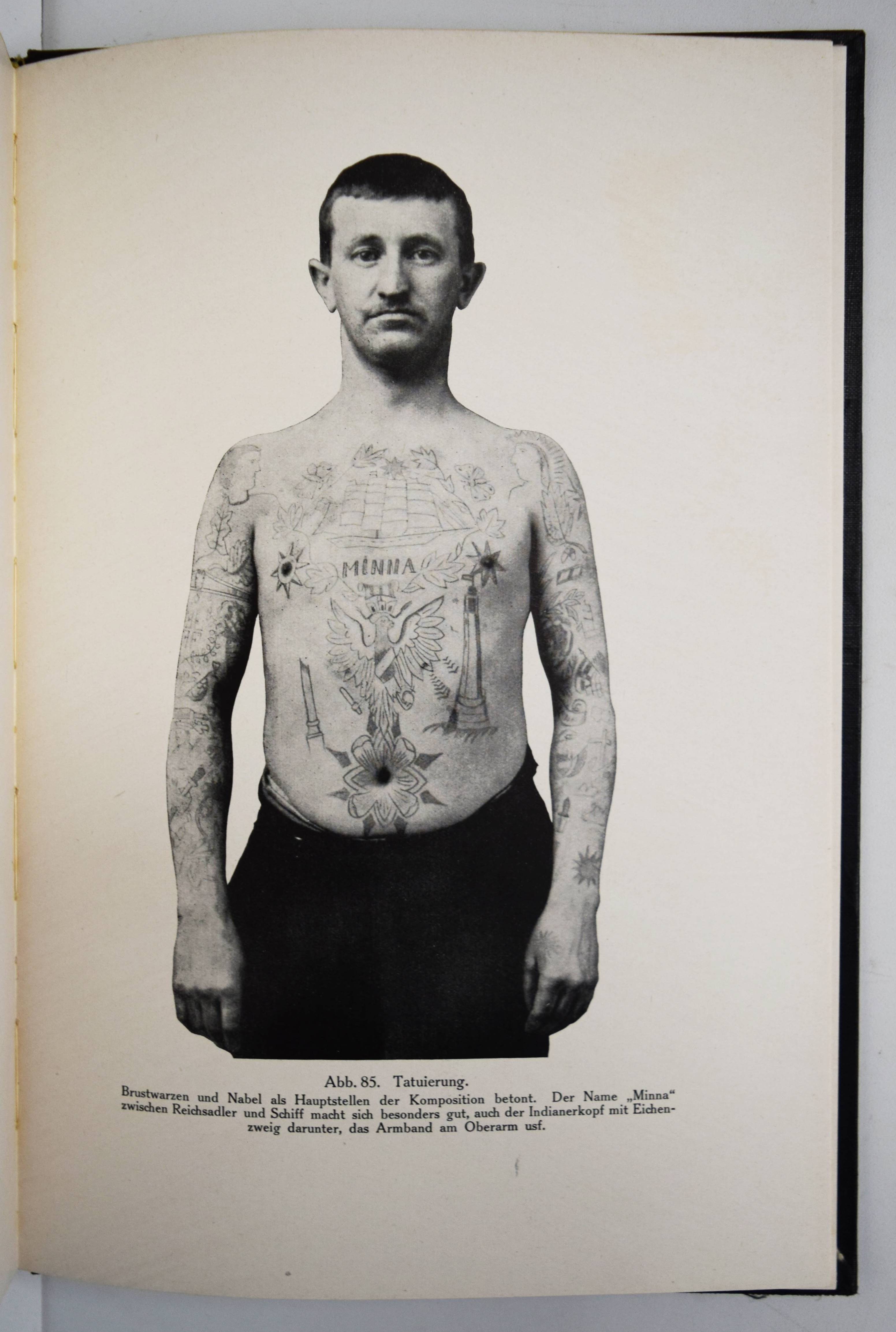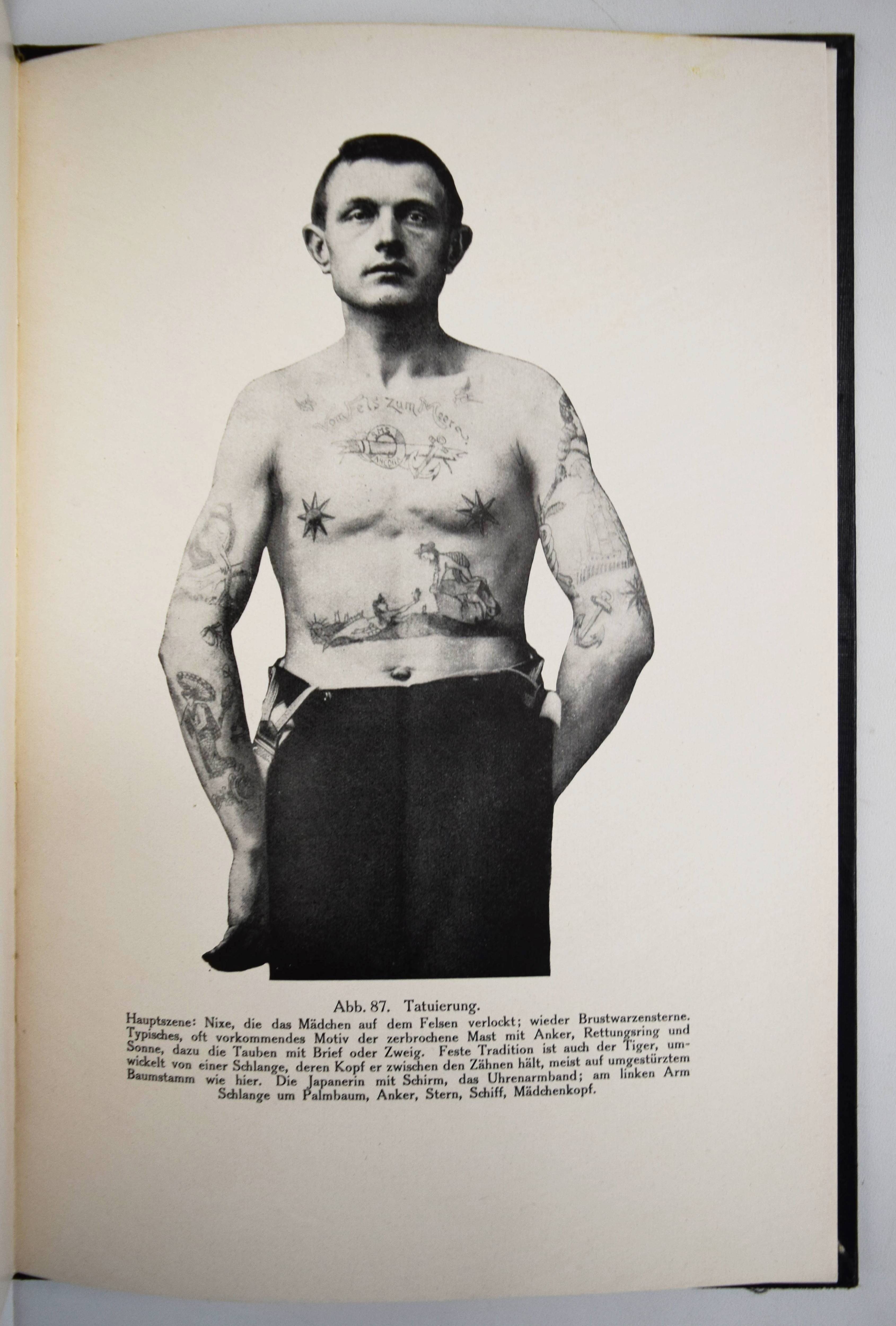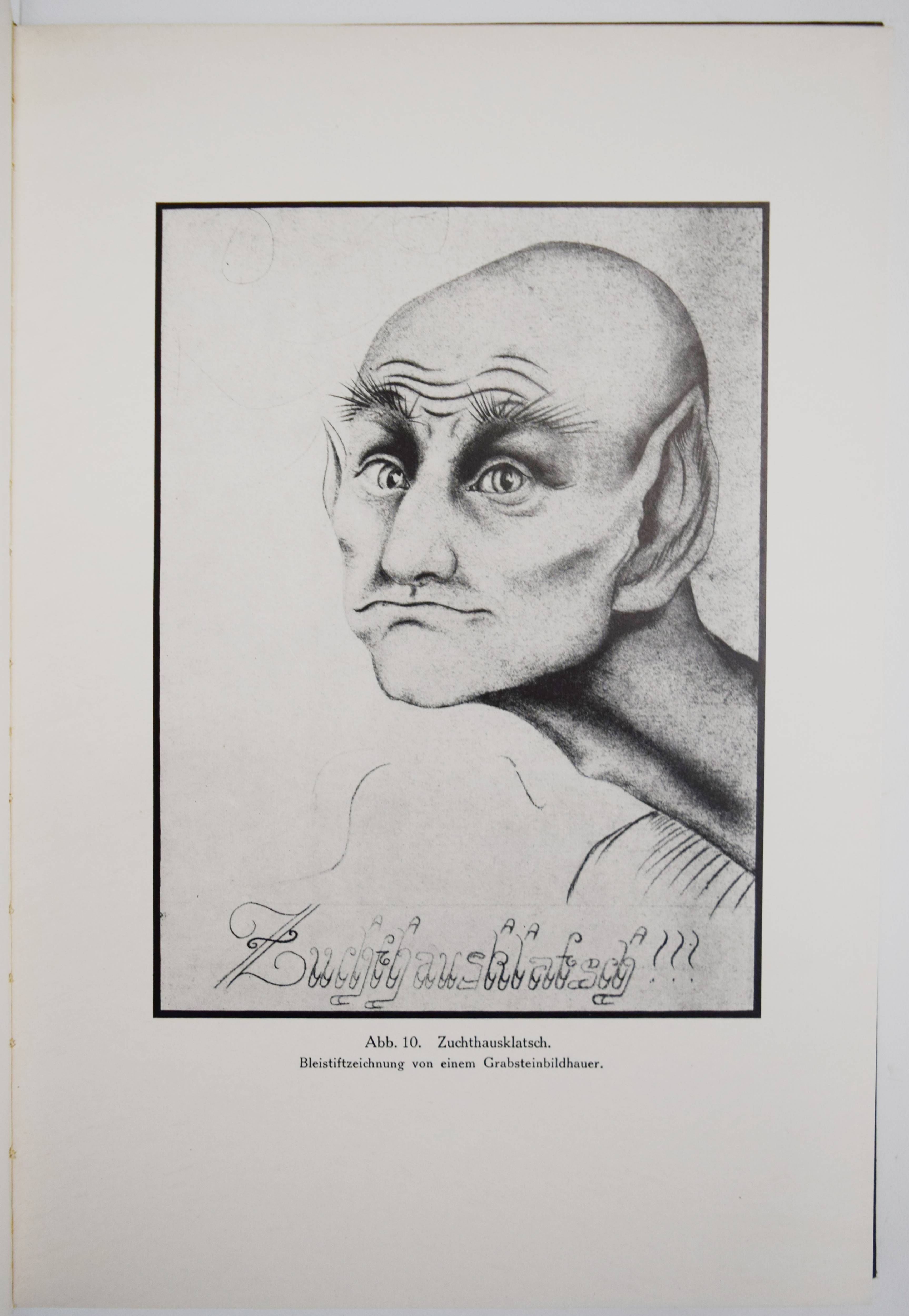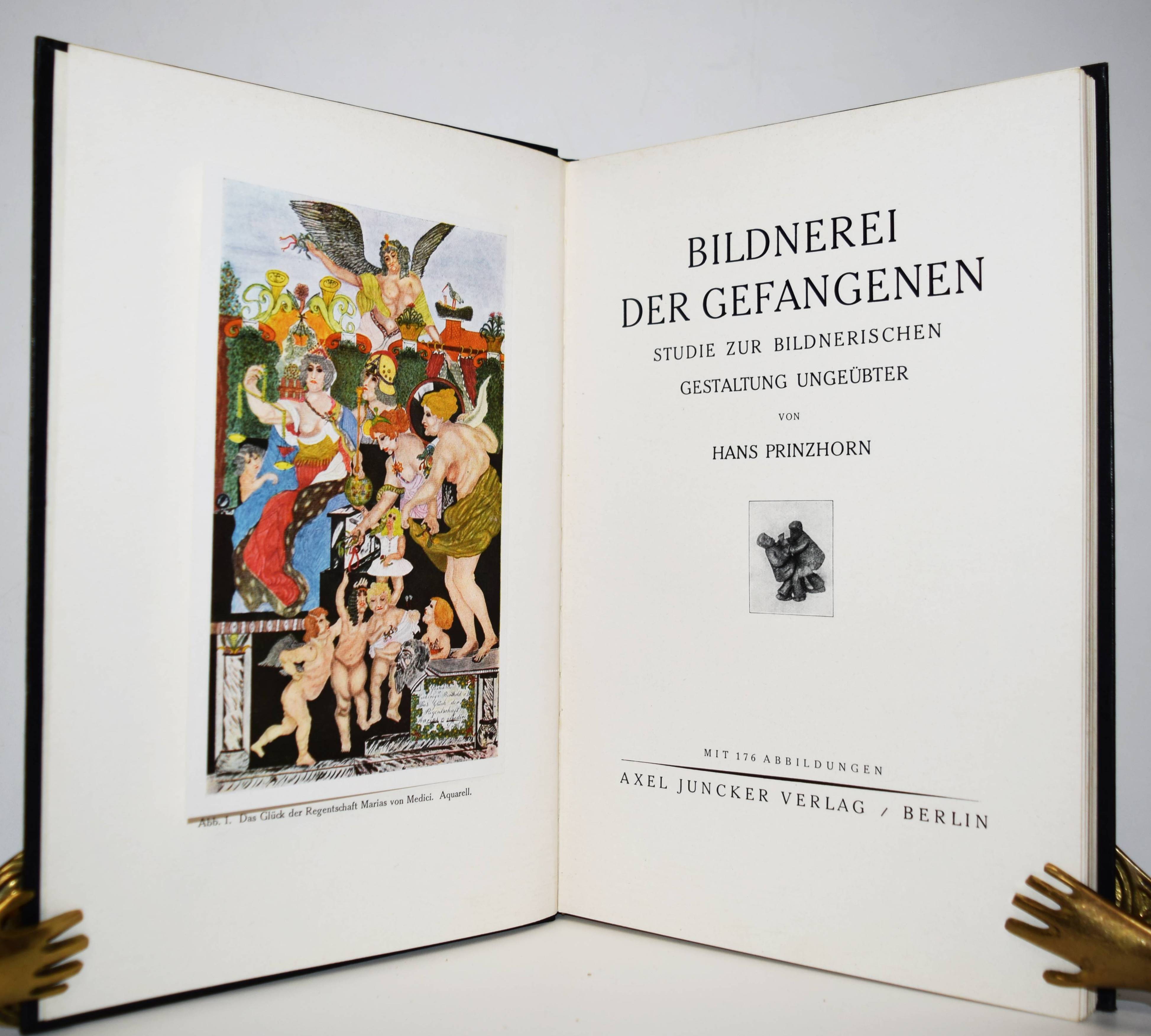 Prinzhorn, Hans. Bildnerei der Gefangenen. Studie zur bildnerischen Gestaltung Ungeübter. Berlin, Axel Juncker (1926). 4°. 60 S., [6] Bl. und 176 teils farbigen und mont. Abbildungen im Text und auf 73 vTafeln. Orig.-Leinenband mit goldgepr. Rücken- und Deckeltitel. Erste Ausgabe der als Ergänzungswerk zur „Bildnerei der Geisteskranken“ geltenden Monographie. – Rücken etwas aufgehellt, sehr gutes sauberes Exemplar.