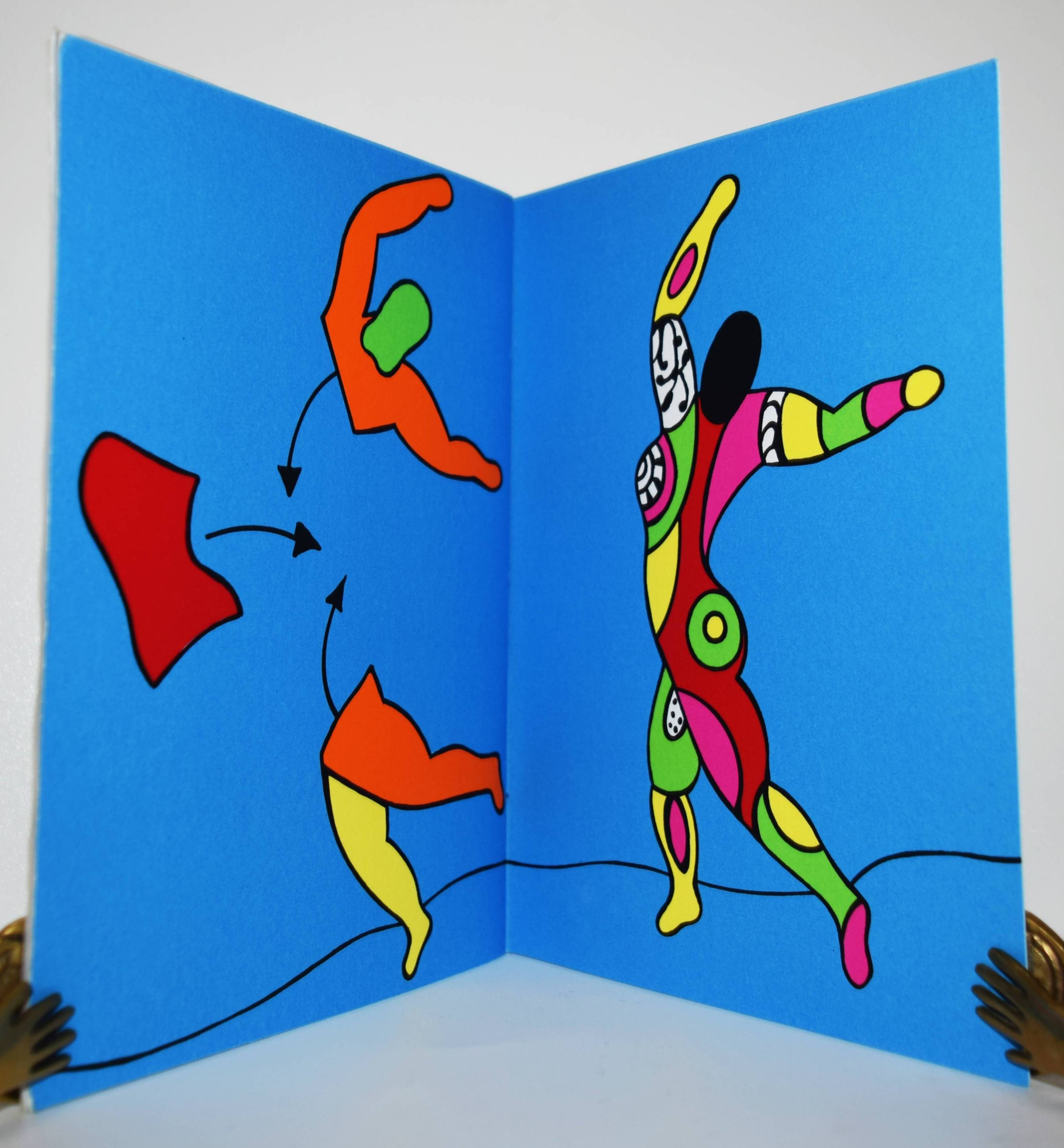 Saint Phalle, Niki de (d. i. Catherine Marie-Agnès Fal de Saint Phalle). Invitation a la danse. (ARC-Musee d’art moderne de la Ville de Paris 24 juin-12 septembre 1993). Paris, Editions ARC-Musee d’art moderne de la Ville de Paris (1993). Gr.-8° (20,5 x 16 cm.). 9 (1 doppelblattgr.) farbige Orig.-Serigraphien auf dünnem Karton und 1 doppelblattgr. Tafel auf Japanpapier. Farbig illustr. Orig.-Kartonumschlag. „Sérigraphies originales de Niki de Saint Phale, imprimé sur Velin Cuves BFK Rives par Atelier d’Àrt Michel Caza. Tirage limité à 1500 exemplaires.“ – Tadellos.