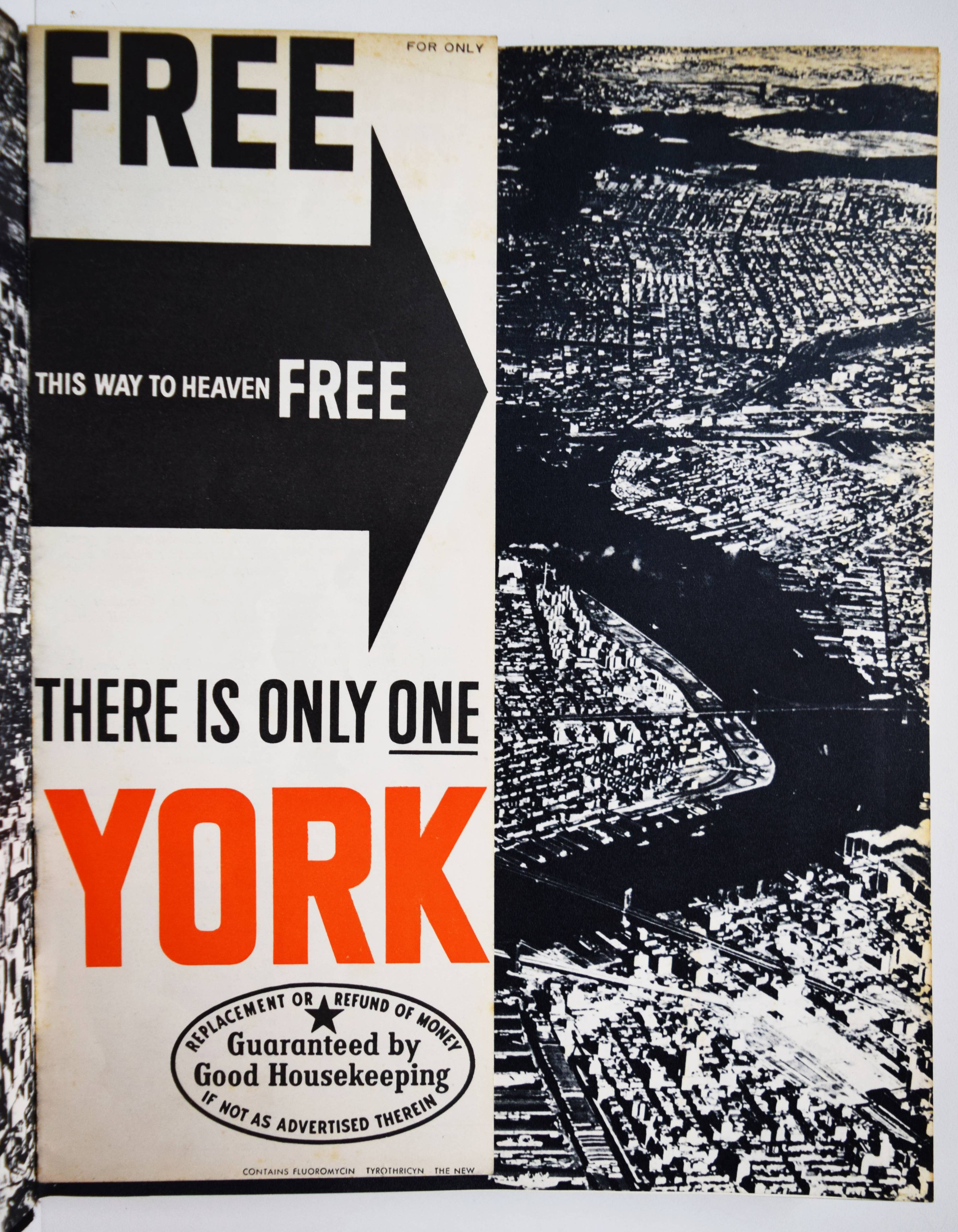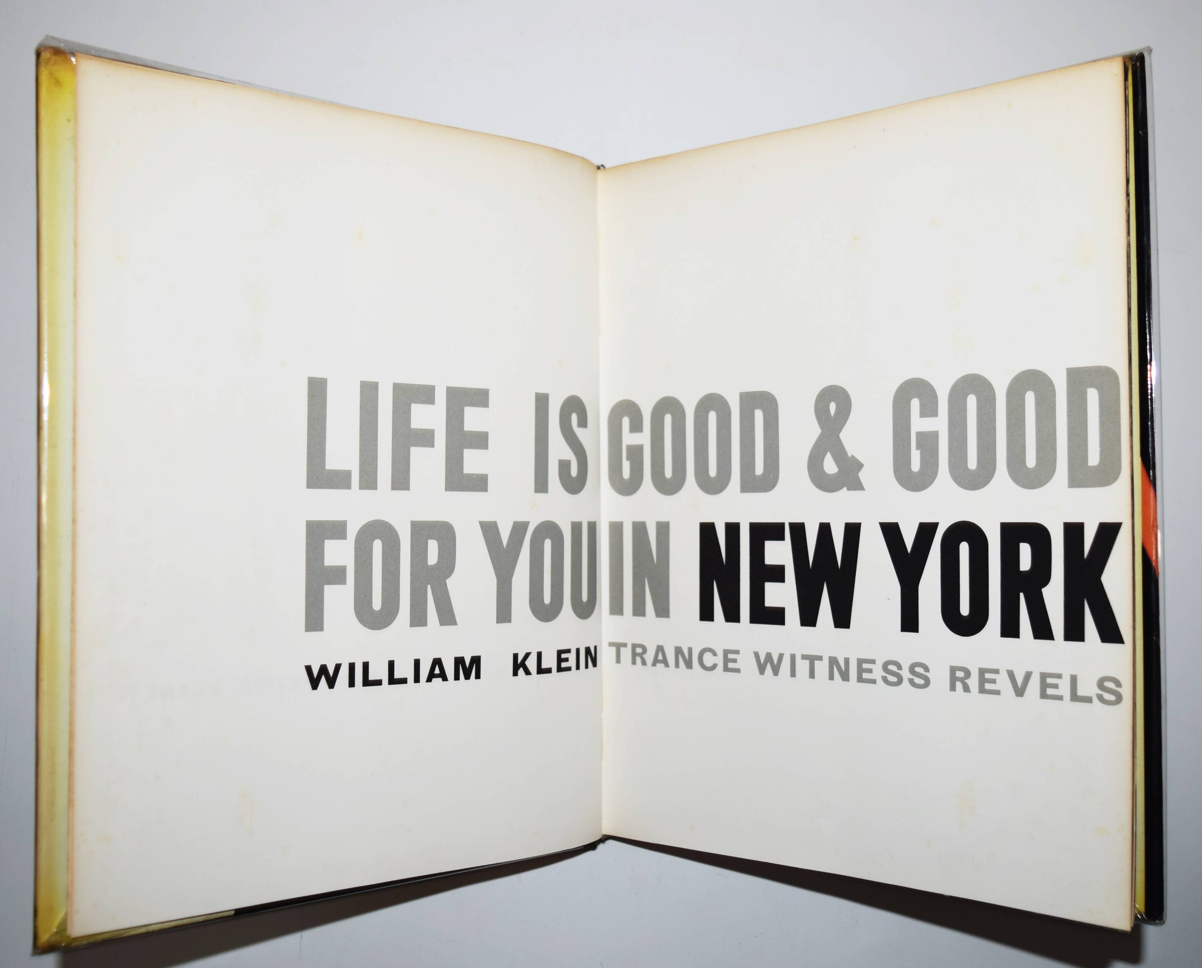 Klein, William New York. Life is good for you and good in New York Trance witness Reveals: Trance Witness Revels. Paris, Éditions du Seuil (1956). 4°. 192 p. with 188 Pictures on plates and Booklet (16 p., „Delay may be serious now free…“). Original cloth binding with color illustrated dust jacket. (Album Petite Planète, Vol. 1). Auer 365. The Open Book 165 f. Parr/Badger I, 243. Roth, The Book of 801 Books 140 ff. – First printing of the first edition. – „By virtue of its preface, written by Jack Kerouac, Robert Frank’s The Americans is usually regarded as the epitome of the Beat photobook. But William Klein’s magnum opus, Life is good for you and good in New York Trance witness Reveals: Trance Witness Revels, a book with Beat mantra for a title, surely has the edge in this regard. This is partly because it was the earlier model, partly because it is less political and more exuberant, and impotantly, because its conception is so complete – photographs, layout, design, topography, ‚found‘ ephemera coalescing into what is in effect one of the first great ‚Pop‘ books. … Klein’s masterpiece reminds us that much great, serious art is often about play, archieved simply by experimenting with the possibilities of the material. Forget trance and witness – the revels are the thing“ (Parr/Badger). – „With no interest from American publishers, Klein went back to Paris and set to work on a graphic design that was as aggressive and idiosyncratic as its photos. „I saw the book as a tabloid gone berserk, gross, over-inked, brutal layout, bull-horn headlines,“ he wrote in its radically revised 1995 edition. „This is what New York deserved and would get.“ Published in France, Italy, and England, but not in America, Life is good for you and good in New York was a sensation“ (A. Roth). – Dust jacket with inconspicuous restored loss at the spine, very good copy.