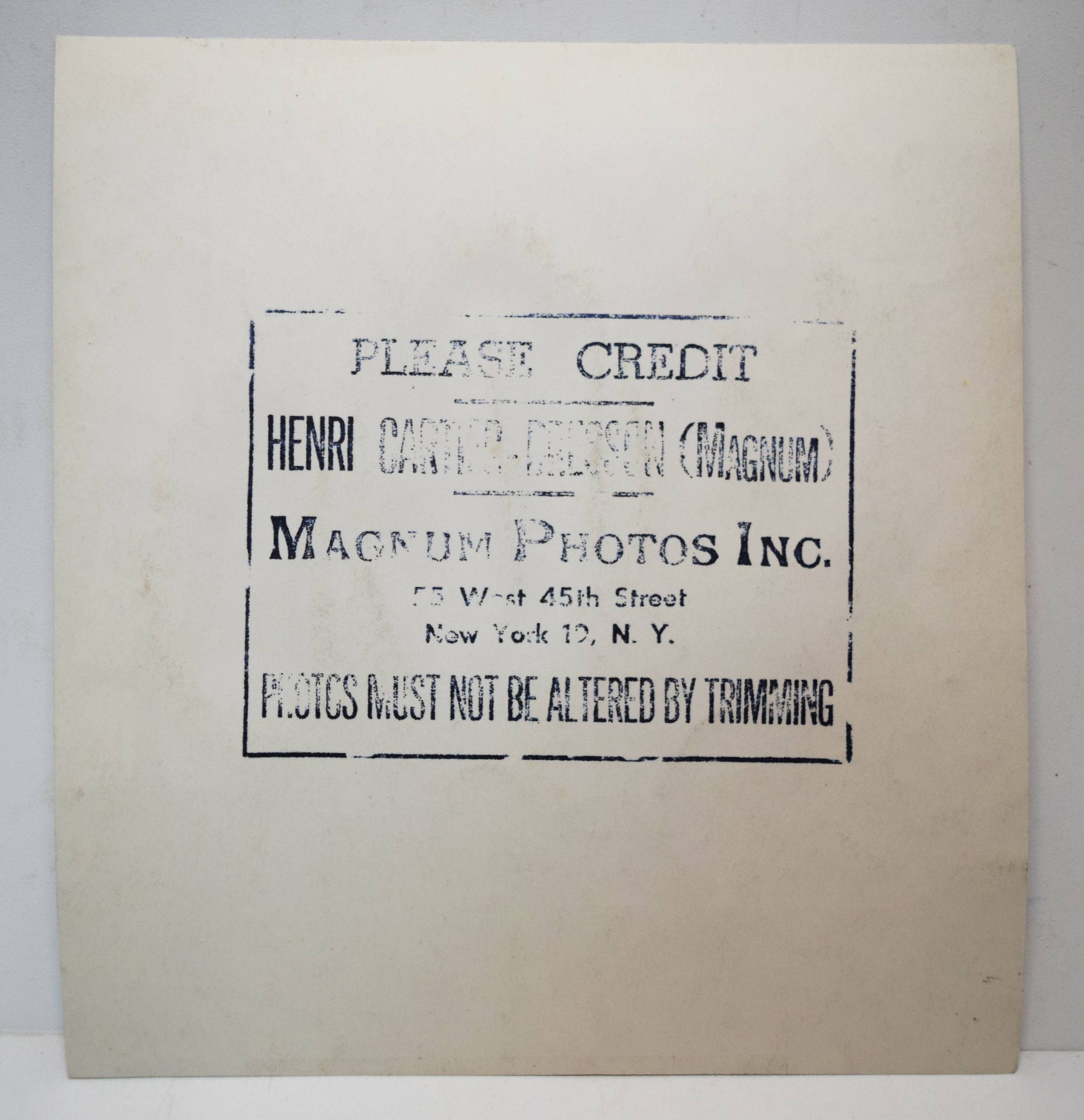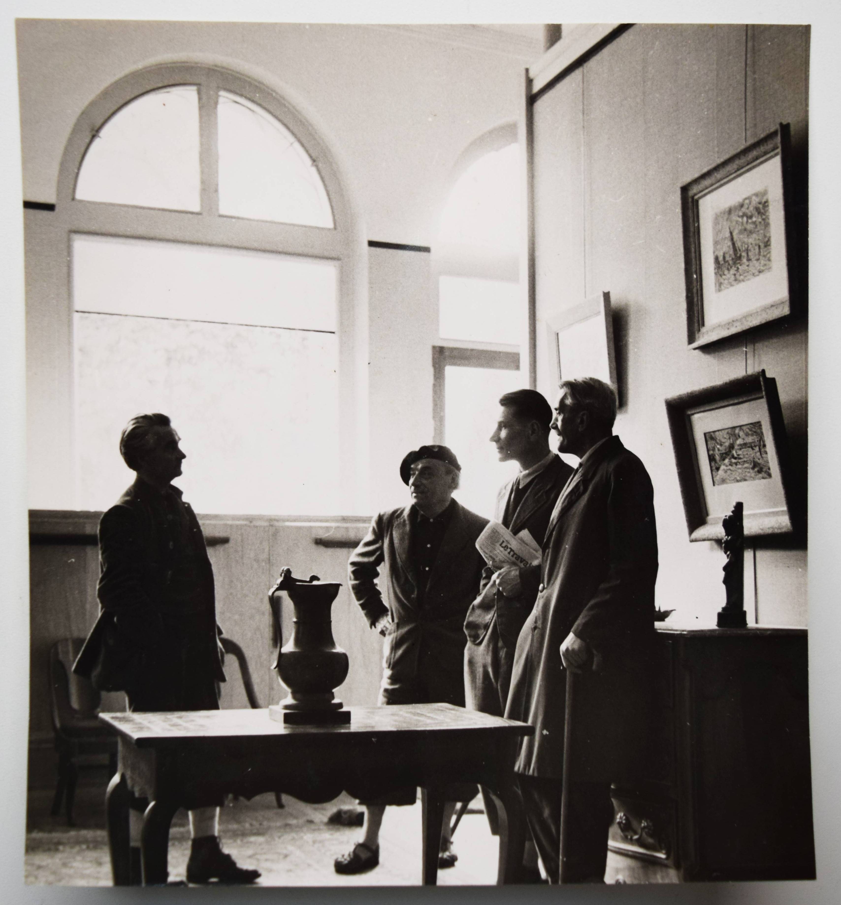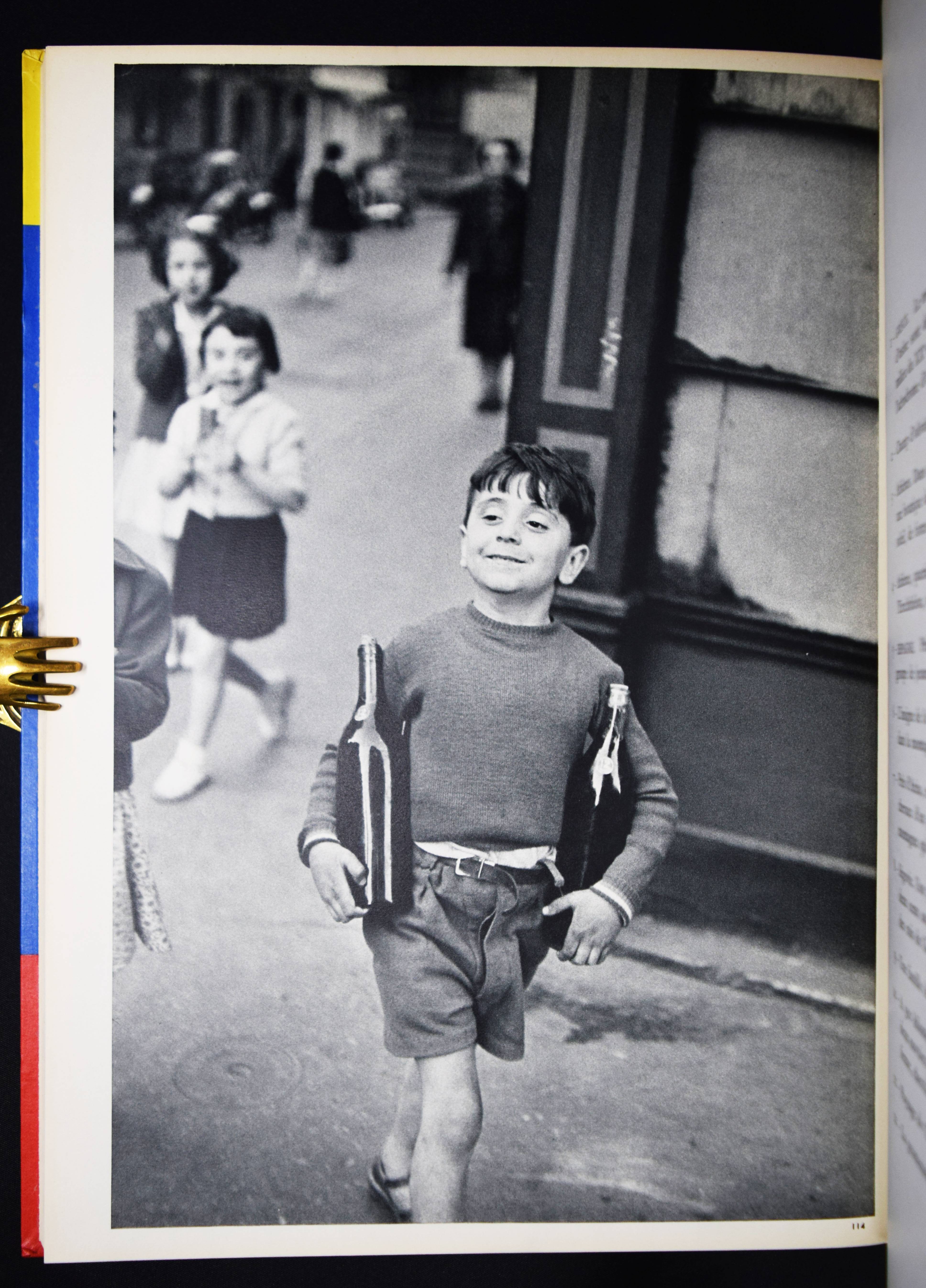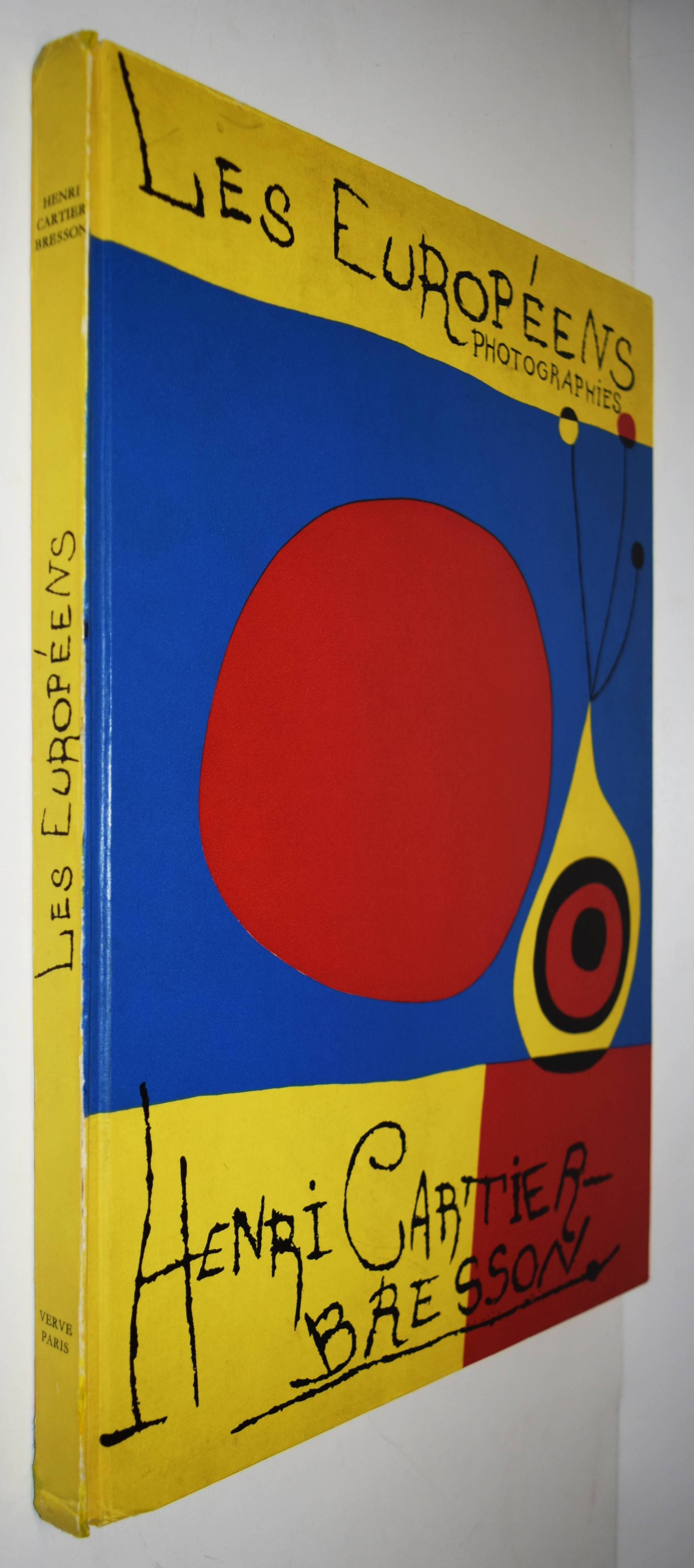 Cartier-Bresson, Henri. Les Européens. Photographies. (Publiée par Tériade (d. i. Stratis Eleftheriadis) et Marguerite Lang). Paris, Éditions Verve (1955). Folio (37 x 28 cm.). 6 S. und 114 teils doppelblattgr. Duotone-Tafeln in Heliogravure. Farbig illustr. Orig.-Pappband (von Joan Miró). Auer 356. Koetzle, Fotografen A-Z 86 f. Parr/Badger I, 209. Roth, The book of 101 books 134. Sinibaldi-Couturier 107. – Erste Ausgabe. – Dazu: Orig.-Photographie (Sibergelatine, 17,5 x 16 cm.) 4 Männer im Gespräch in einem Museum oder Atelier, rückseitig mit Stempel des Fotografen „Henri Cartier-Bresson, Magnum Photos Inc., New York“. – Henri Cartier-Bresson (1908–2004) gilt als der Wegbereiter des modernen Fotojournalismus. Gemeinsam mit Robert Capa und David „Chim“ Seymour gründete er 1947 die Fotografenkooperative und -Agentur „Magnum“. Sein Blick für das Skurrile im Alltag war legendär. Er fotografierte unter anderem in Spanien, Kamerun, Italien, Indien, Pakistan, China, Mexiko und den USA. – „Kein Fotograf hat über die Ästhetik der Fotografie intensiver reflektiert als Cartier-Bresson, keiner Theorie und Praxis in einer Weise zur Einheit verschmolzen, dass jedes seiner fotografischen Bilder Ausdruck eines entschlossenen ästhetischen Selbstverständnisses ist, ohne freilich an unvermittelter Überzeugungskraft einzubüßen, keiner auch hat eine solche Meisterschaft im Erfassen des ‚entscheidenden Augenblicks‘ offenbart, des Augenblicks, an dem sich für eine denkbar kurze Zeitspanne alle bewegter Elemente des Motivs im Gleichgewicht befinden“ (Klaus Honnef in Koetzle). – „The Decisive Moment (Images à la sauvette) is one of the greatest of all photobooks, and Cartier-Bresson repeated its artistic success three years later with The Europeans (Les Européens). The format of the book is the same, this time with a cover designed by Joan Miró. What gives The Decisive Moment a slight edge is the fact that it contains images chosen from the whole of his career prior to the 1950s, while those in The Europeans were made from 1950–55. As its title suggests, The Europeans has a more specific theme – postwar life in Europe – and although for most photographers this would tend to be a strengthening factor, in this case it might be felt to be a marginal weakness; Cartier-Bresson is at his best when at his most universal“ (Martin Parr). – Sehr gutes sauberes Exemplar.