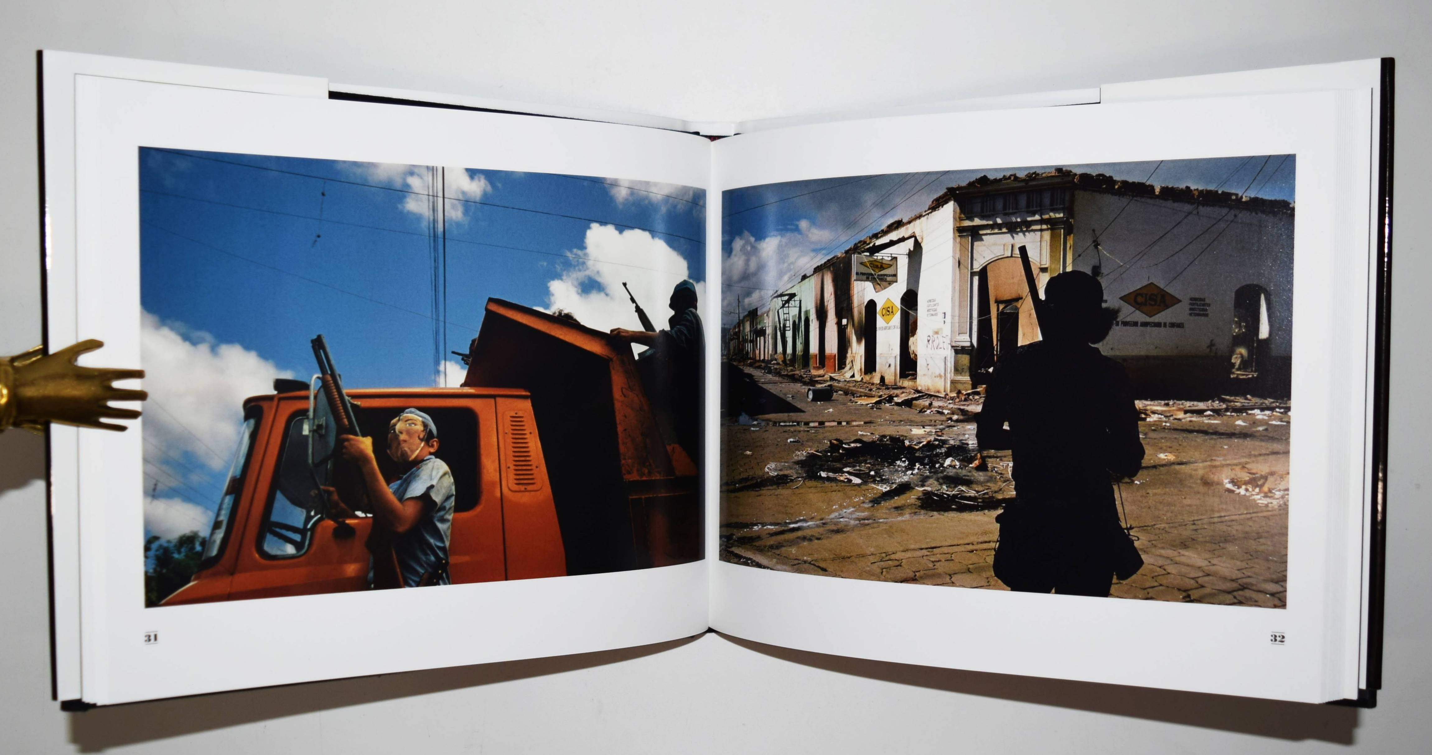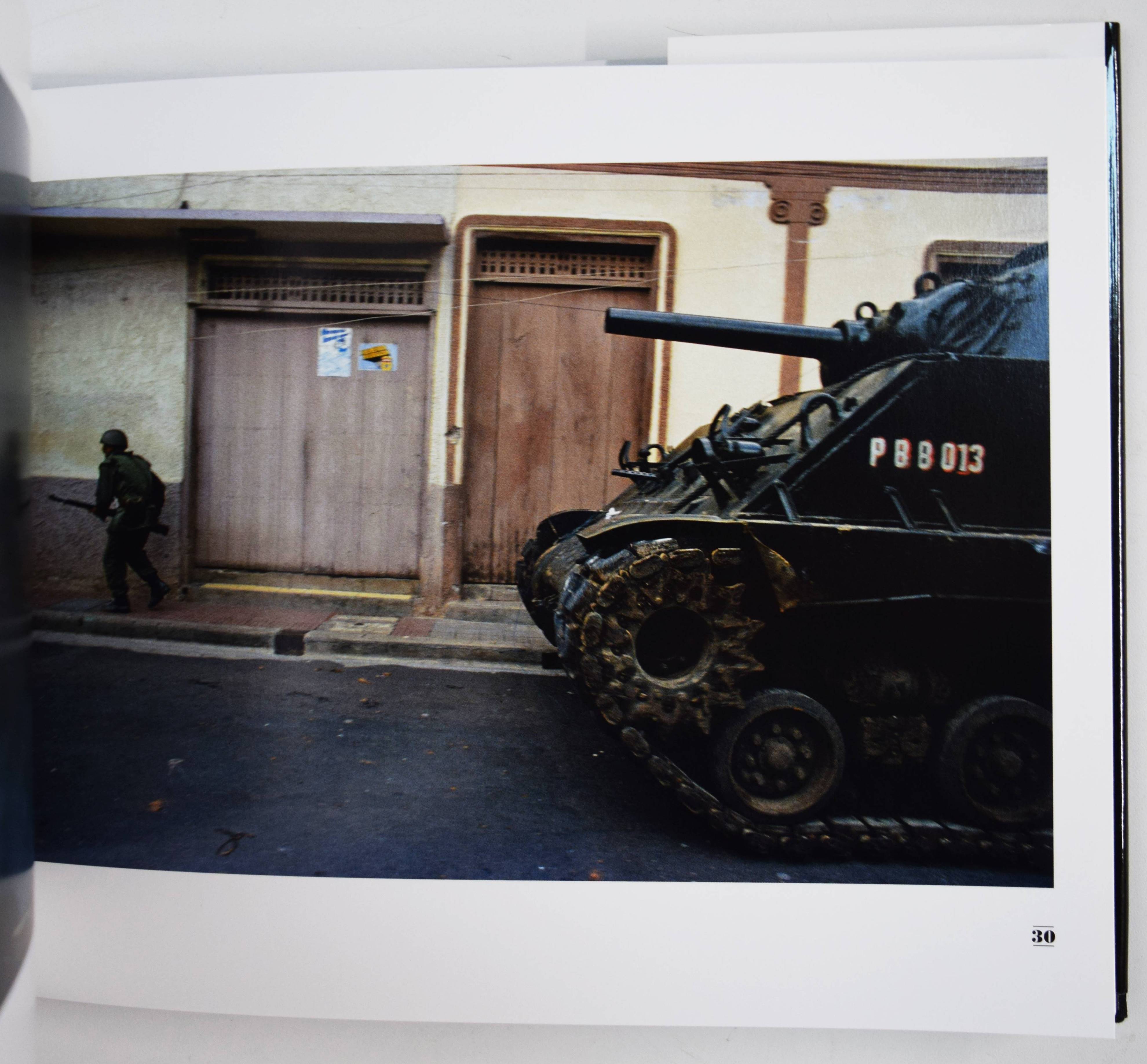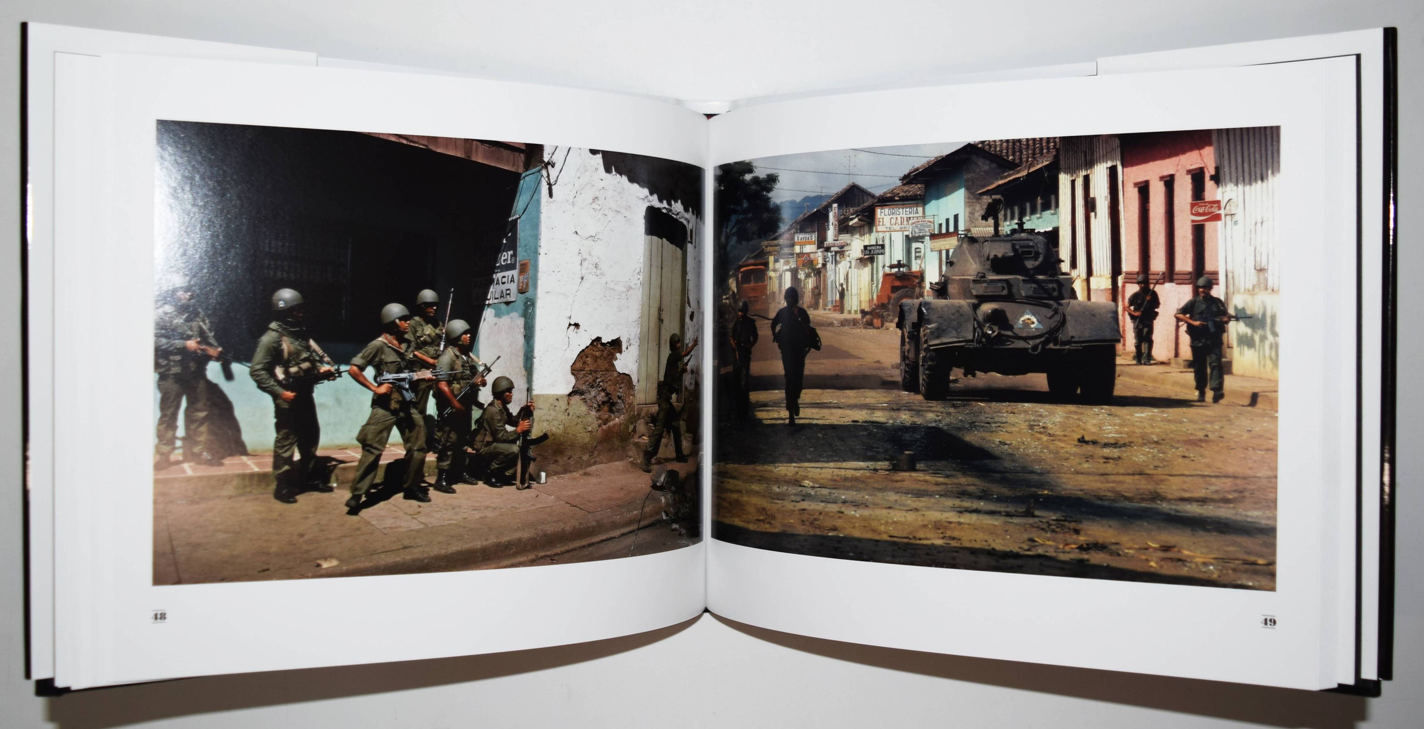 Meiselas, Susan. Nicaragua. June 1978 – July 1979. Edited with Claire Rosenberg. (Conversation with Kristen Lubben). Second Aperture edition. New York, Aperture (2016). Quer-Gr.-8° (22 x 27,5 cm.). [3] Bl., 71 Farbtafeln, [19] Bl. mit 1 Karte. Orig.-Leinenband mit farbig illustr. Schutzumschlag. Auer 626. Parr/Badger II, 252. – Neuausgabe des wichtigsten Werks der Magnum Fotografin. – Von S. Meiselas signiert. – „Some of the most vicious wars of the 1970s were fought in Latin America, where Marxist or simply people’s revolts sought to overthrow military dictatorships and the bleeding of a country’s resources by small oligarchies. One such country was Nicaragua, where the generally hated regime of President Anastasio ‚Tachito‘ Somoza, after a long and bitter struggle, was defeated by the broadly left-wing but popular FSLN (Sandinista National Liberation Front). The Magnum photographer Susan Meiselas, by her own admission more or less stumbled into photographing the conflict by accident, but then stayed in Nicaragua on and off until Somoza was eventually ousted. From Meiselas’s involvement stemmed one of the best war photobooks since those produced during the conflict in Vietnam. Meiselas’s book is notable firstly because she shot it in colour, at a time when black and white was stil regarded as de rigueur for combat photography, although attitudes were changing around that time. Colour was regarded as too distracting and not gritty enough for photographing the harsh realities of war, despite thefact that blood is a bright, unrealred. But in Nicaragua, she proved that colour has virtues of its own, potentially adding irony and counteracting sentimentality. … Nevertheless, Nicaragua remains a powerful and exemplary chronicle of the kinds of conflict that proliferated in the late twentieth century“ (Martin Parr zur ersten Ausgabe, New York 1981). – Sehr gutes Exemplar.