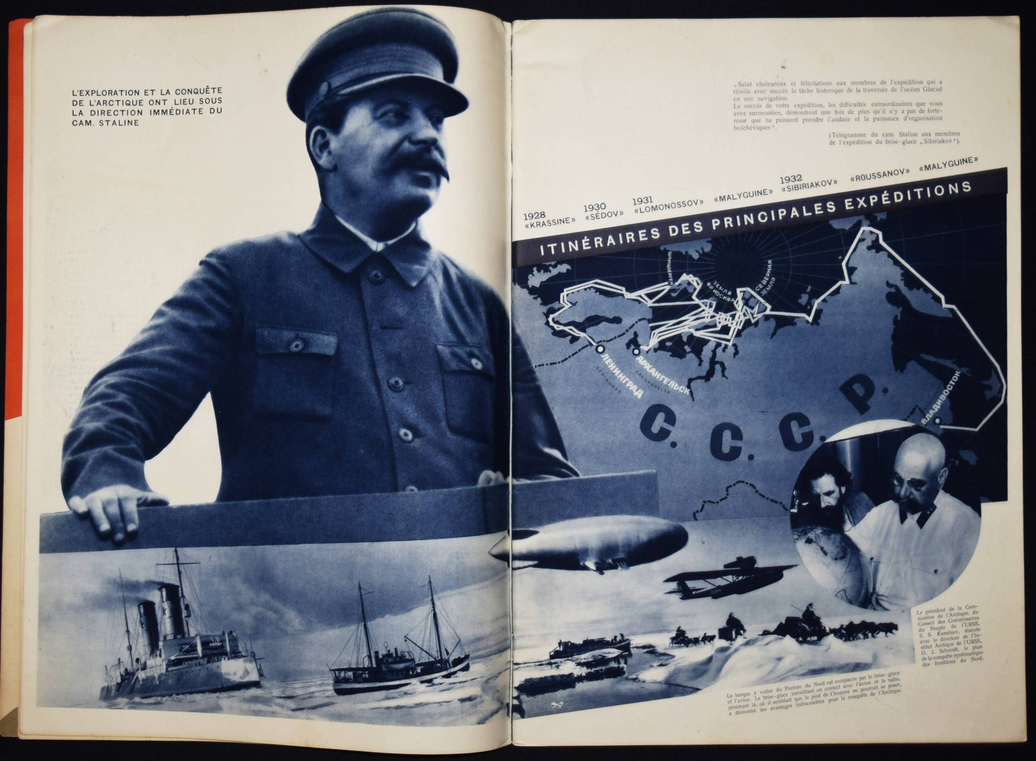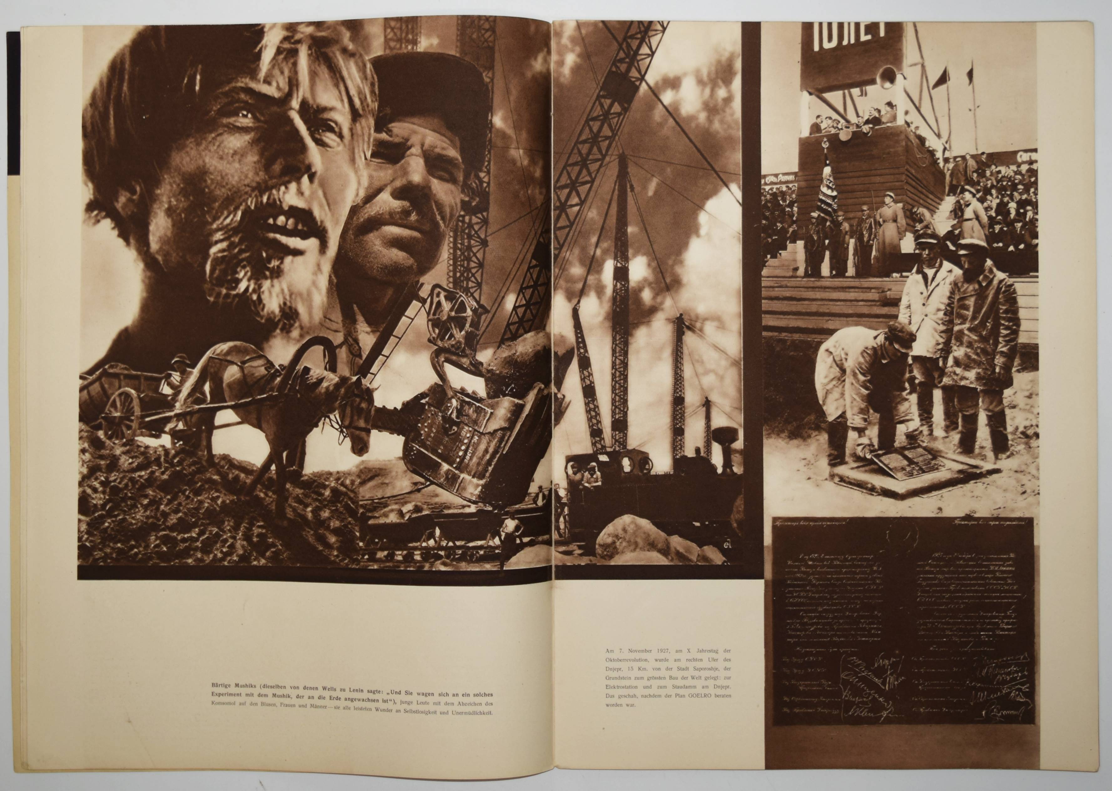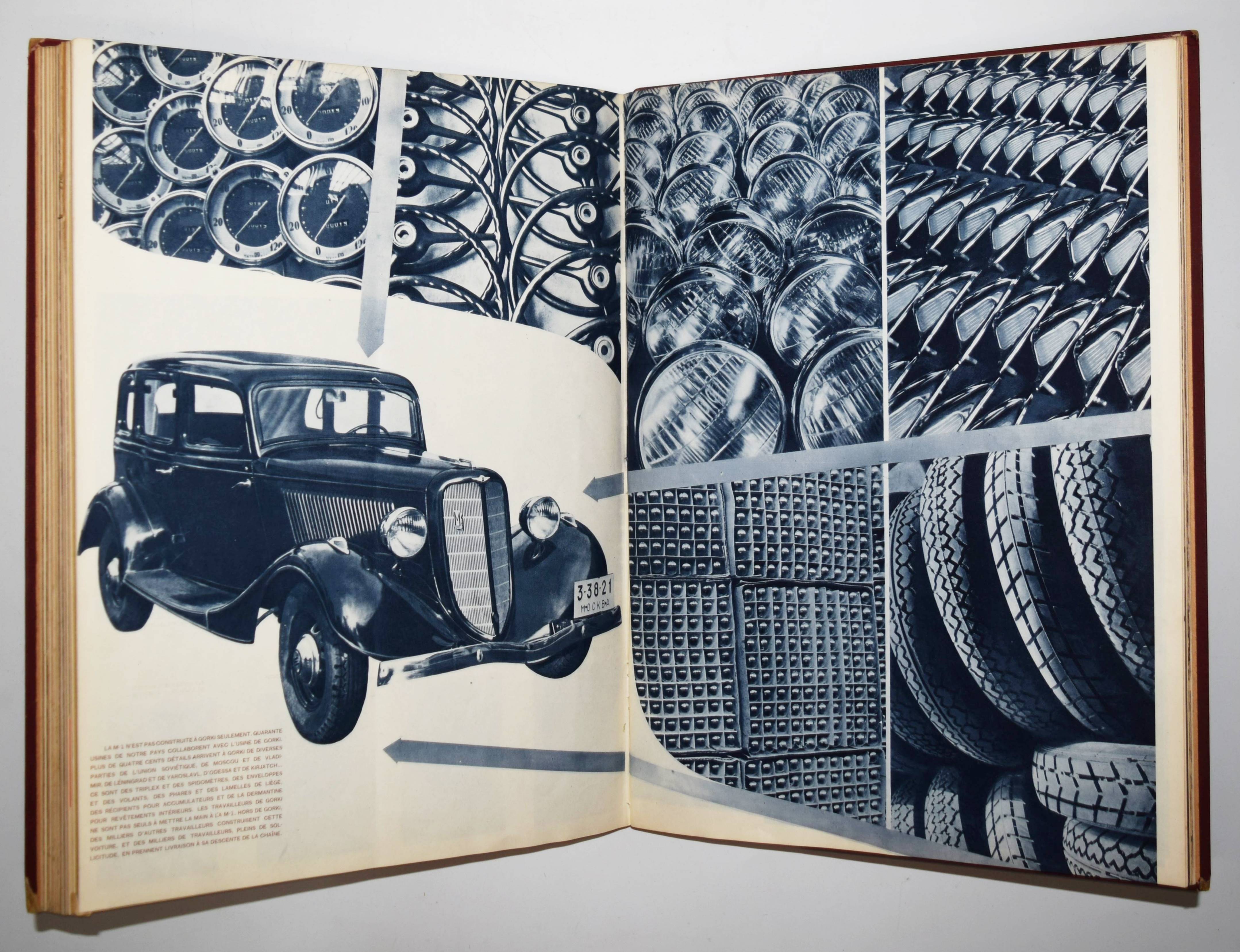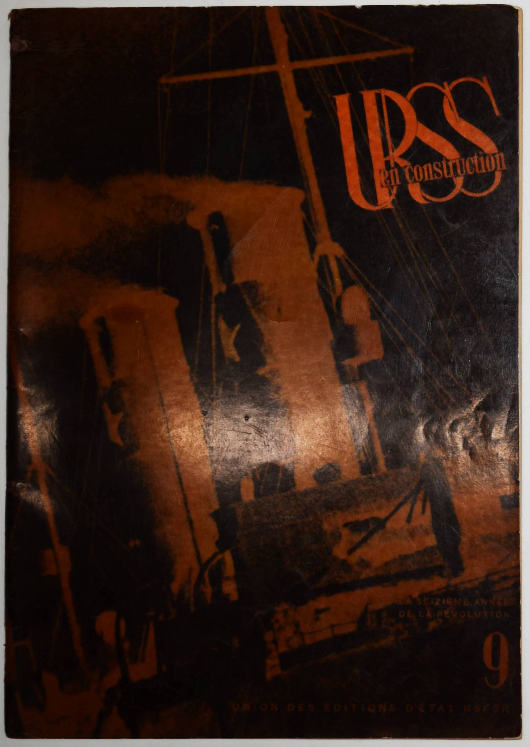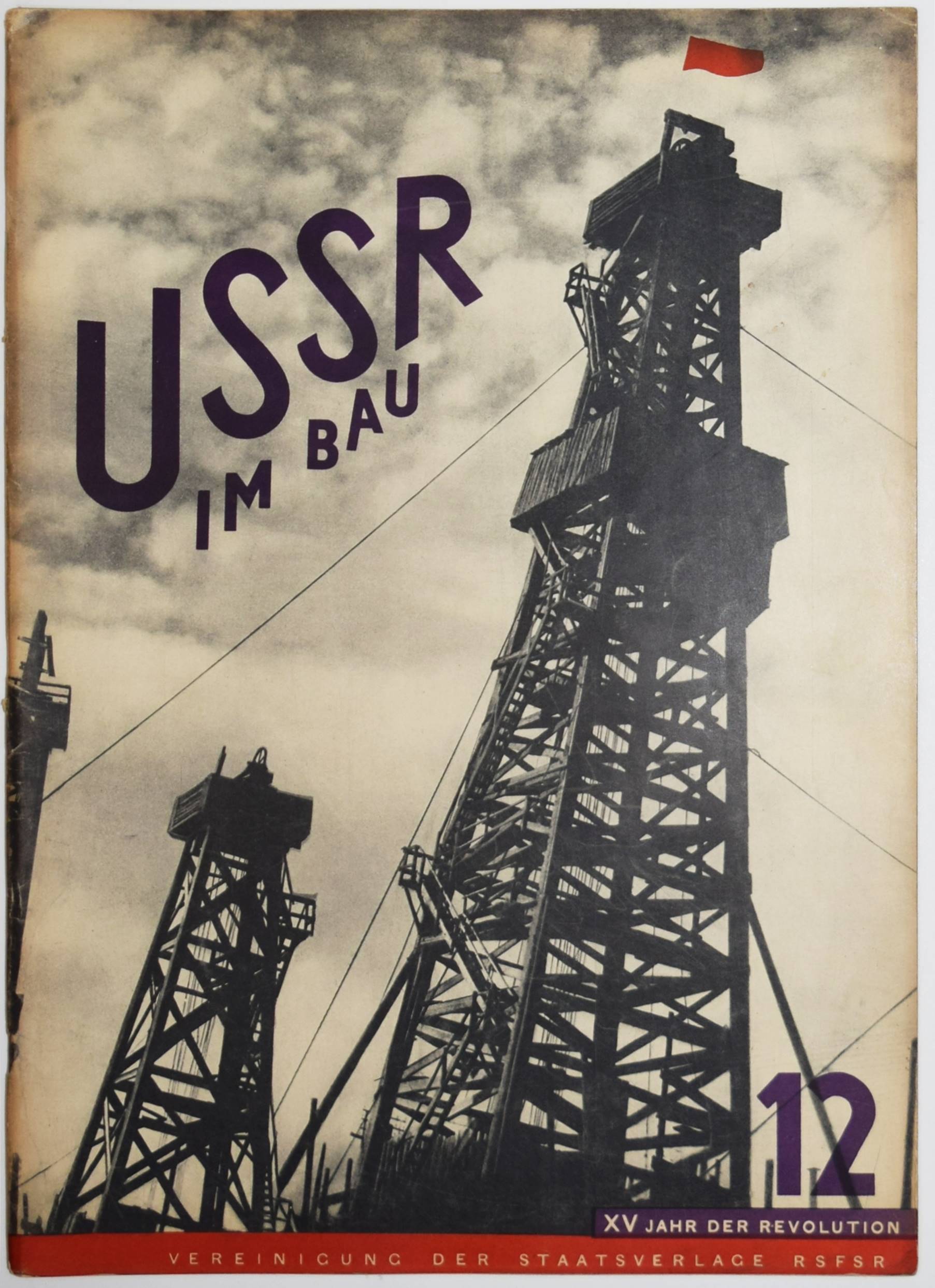 Pjatakov, G(eorgi Leonidowitsch, Editor in Chief). USSR in construction. – URSS en construction. Illustrated monthly magazine. – Revue mensuelle illustrée. – Year 1930 – 1937. – Année 1930 – 1937. 84 issues in 7 volumes and 12 issues unbound (1935). Moscow, State Publishing House of the RSFSR 1930-1937. Folio (43 x 30 cm.). With numerous illustrations and fold-out plates Contemporary linen bindings with gold-embossed spine titles (illustrated covers bound in, cover designs by El Lissitzky, Aleksandr Rodchenko and others). Hellyer 860. Karasik/Heiting 17 ff. Rowell/Wye 242 f. – The first eight volumes of the most important Soviet propaganda magazine. The volumes from 1930 to 1934 are in English and those from 1935 to 1937 are in French; the 1935 volume is available in individual issues. The magazine was published monthly from 1930 to 1949 in five languages (Russian, English, French, Spanish and German). Each issue was dedicated to a different subject, such as food and industrial production, the republic of Georgia, Soviet cinema and elections. – „In the early 1930s photo-reportage became the foundation of the magazine USSR in Construction that „was created as a publication for the popularization of large-scale construction projects by photographic means. But as the magazine grew and developed, the task of ‘popularization’ evolved into that of presenting Socialist reality with dramatic artistry.“ (L. Mezhericher, „Na putiakh k sotsialisticheskomu stiliu fotografii” [“On the way to a Socialist style of photography“], No. 2, p. 14). Well known Soviet designers and photographers worked on USSR in Construction. The industrial spirit of the magazine, expressed in compositionally sharp subjects, panoramas and dynamic shots evokes admiration even today and conveys the atmosphere of enthusiasm that carried along not just the photographers, but also the builders themselves. The creative scale of the construction engendered the photographic epic, a style of monumental artistic photography. The founders of this most successful and high-quality periodical were Gorky and Koltsov“ (Mikhail Karasik). – Binding slightly rubbed, otherwise in very good condition except for slight signs of wear and age.