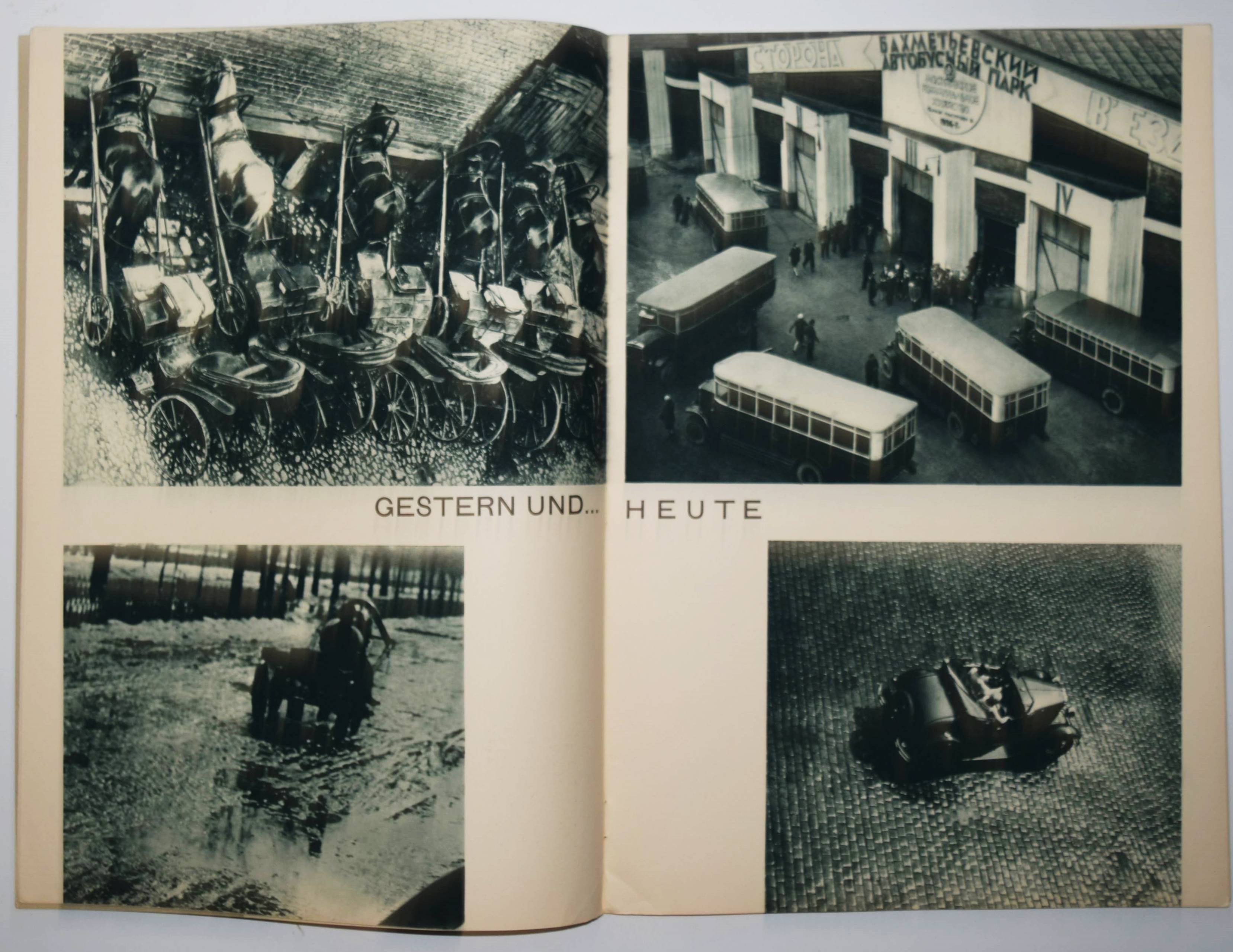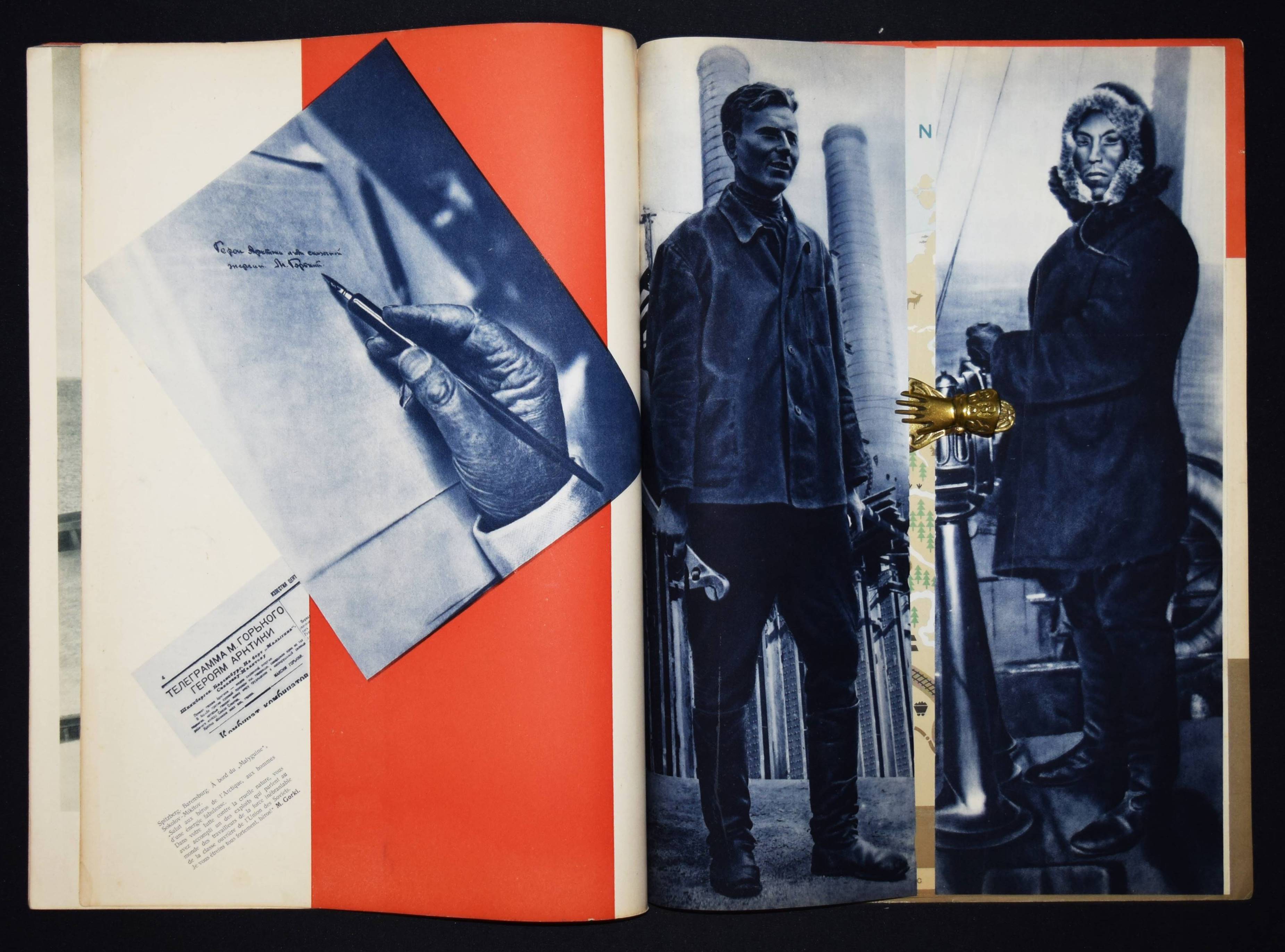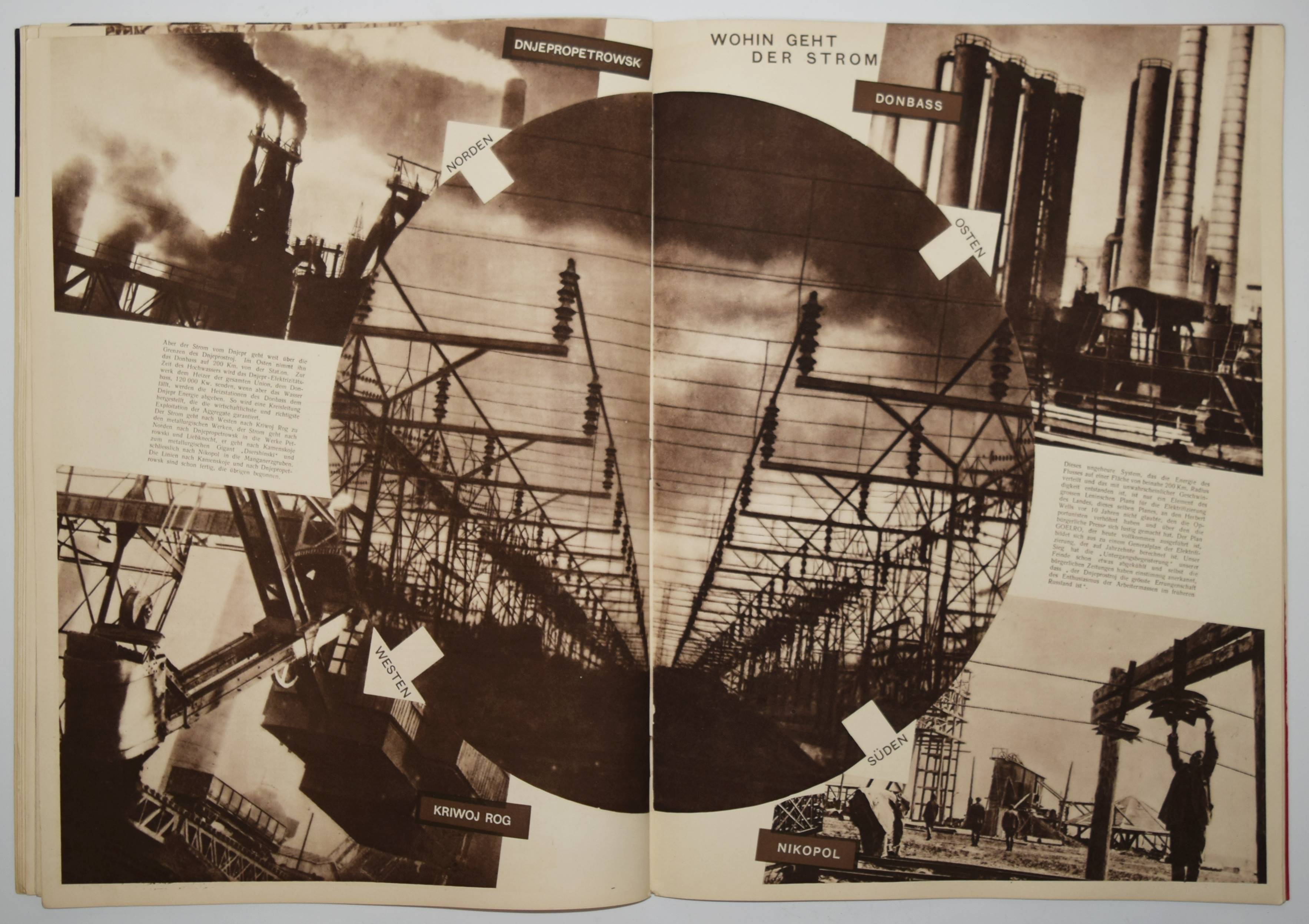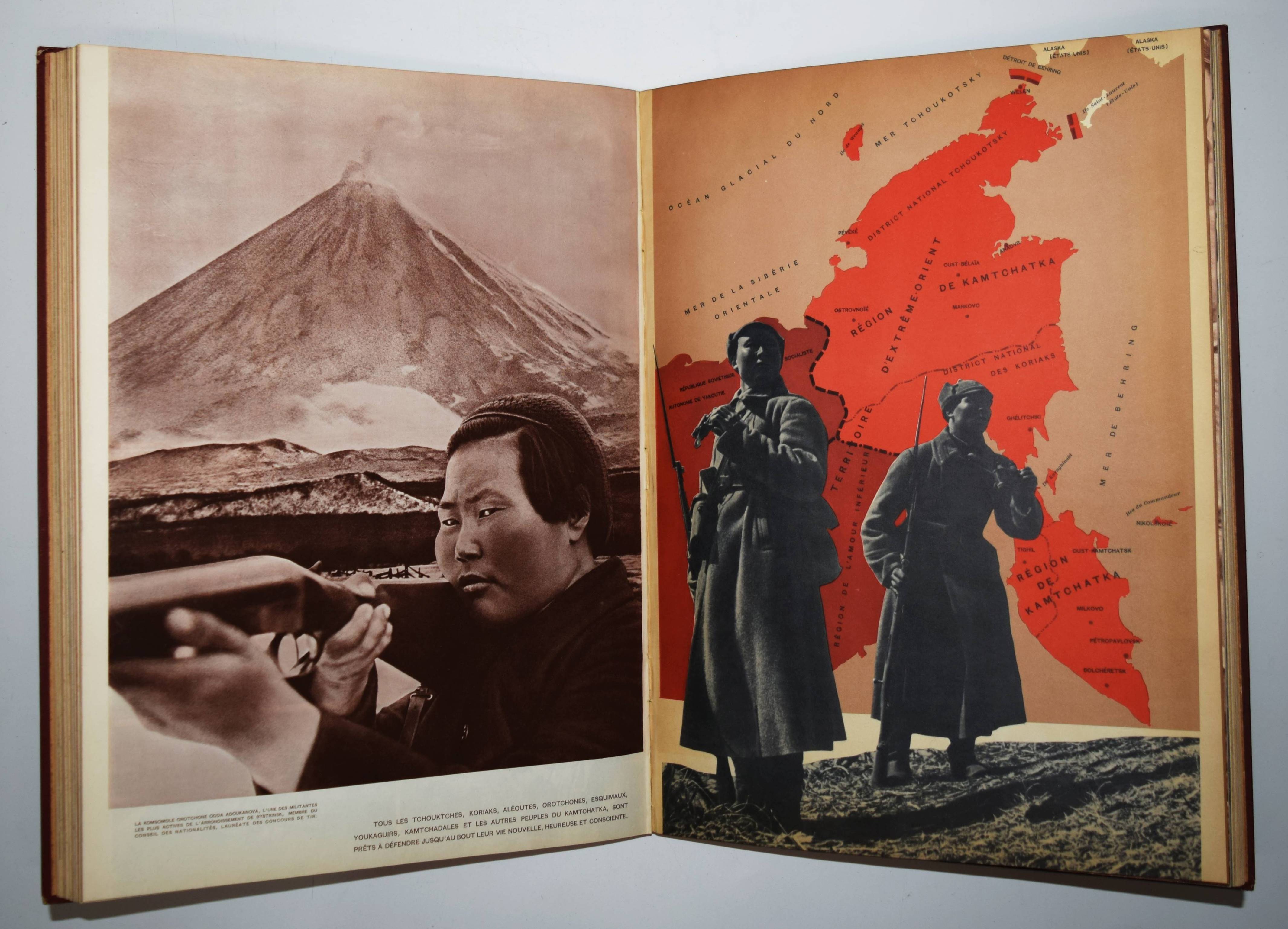 Pjatakov, G(eorgi Leonidowitsch, Editor in Chief). USSR in construction. – URSS en construction. Illustrated monthly magazine. – Revue mensuelle illustrée. – Year 1930 – 1937. – Année 1930 – 1937. 84 issues in 7 volumes and 12 issues unbound (1935). Moscow, State Publishing House of the RSFSR 1930-1937. Folio (43 x 30 cm.). With numerous illustrations and fold-out plates Contemporary linen bindings with gold-embossed spine titles (illustrated covers bound in, cover designs by El Lissitzky, Aleksandr Rodchenko and others). Hellyer 860. Karasik/Heiting 17 ff. Rowell/Wye 242 f. – The first eight volumes of the most important Soviet propaganda magazine. The volumes from 1930 to 1934 are in English and those from 1935 to 1937 are in French; the 1935 volume is available in individual issues. The magazine was published monthly from 1930 to 1949 in five languages (Russian, English, French, Spanish and German). Each issue was dedicated to a different subject, such as food and industrial production, the republic of Georgia, Soviet cinema and elections. – „In the early 1930s photo-reportage became the foundation of the magazine USSR in Construction that „was created as a publication for the popularization of large-scale construction projects by photographic means. But as the magazine grew and developed, the task of ‘popularization’ evolved into that of presenting Socialist reality with dramatic artistry.“ (L. Mezhericher, „Na putiakh k sotsialisticheskomu stiliu fotografii” [“On the way to a Socialist style of photography“], No. 2, p. 14). Well known Soviet designers and photographers worked on USSR in Construction. The industrial spirit of the magazine, expressed in compositionally sharp subjects, panoramas and dynamic shots evokes admiration even today and conveys the atmosphere of enthusiasm that carried along not just the photographers, but also the builders themselves. The creative scale of the construction engendered the photographic epic, a style of monumental artistic photography. The founders of this most successful and high-quality periodical were Gorky and Koltsov“ (Mikhail Karasik). – Binding slightly rubbed, otherwise in very good condition except for slight signs of wear and age.