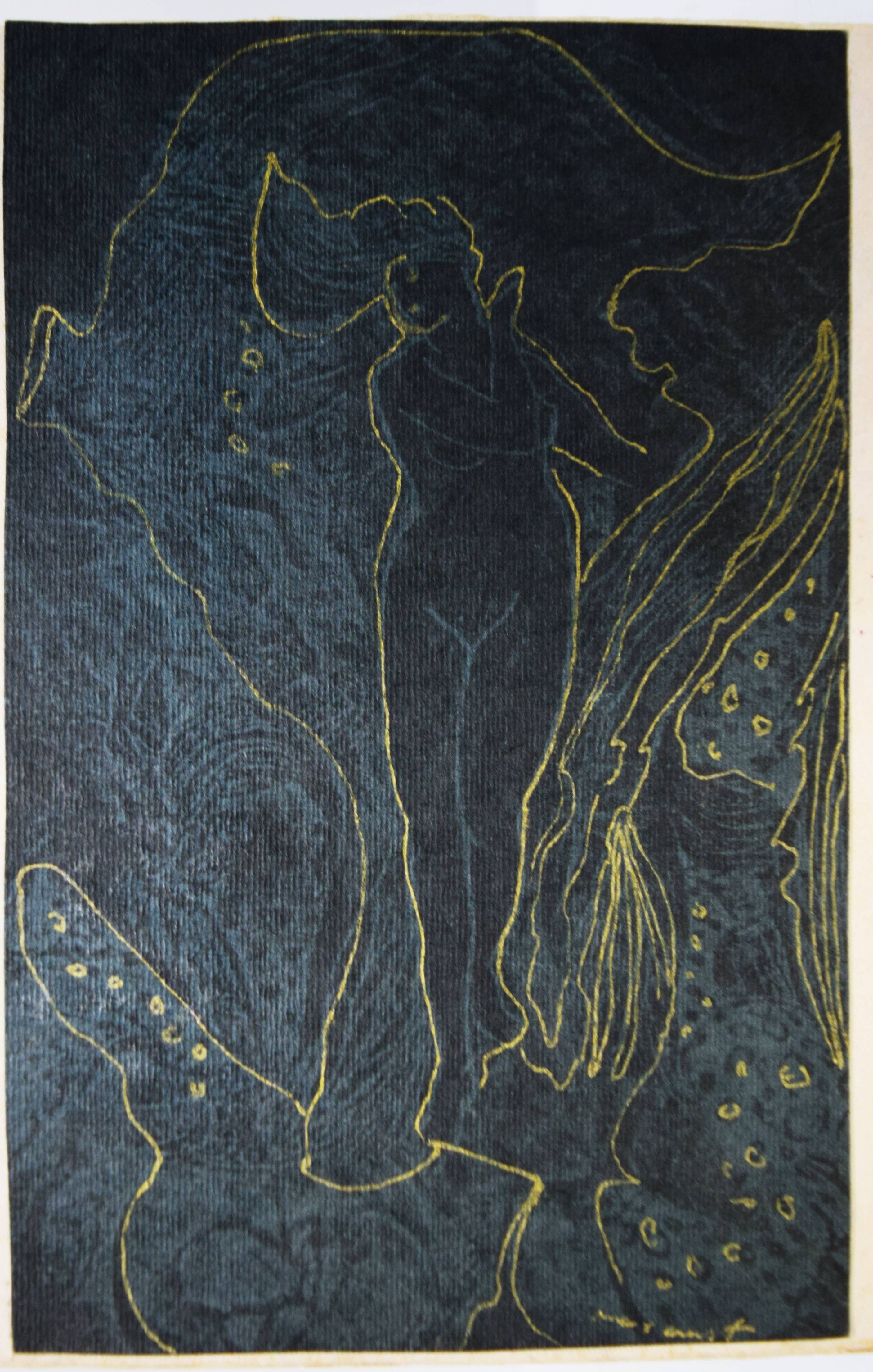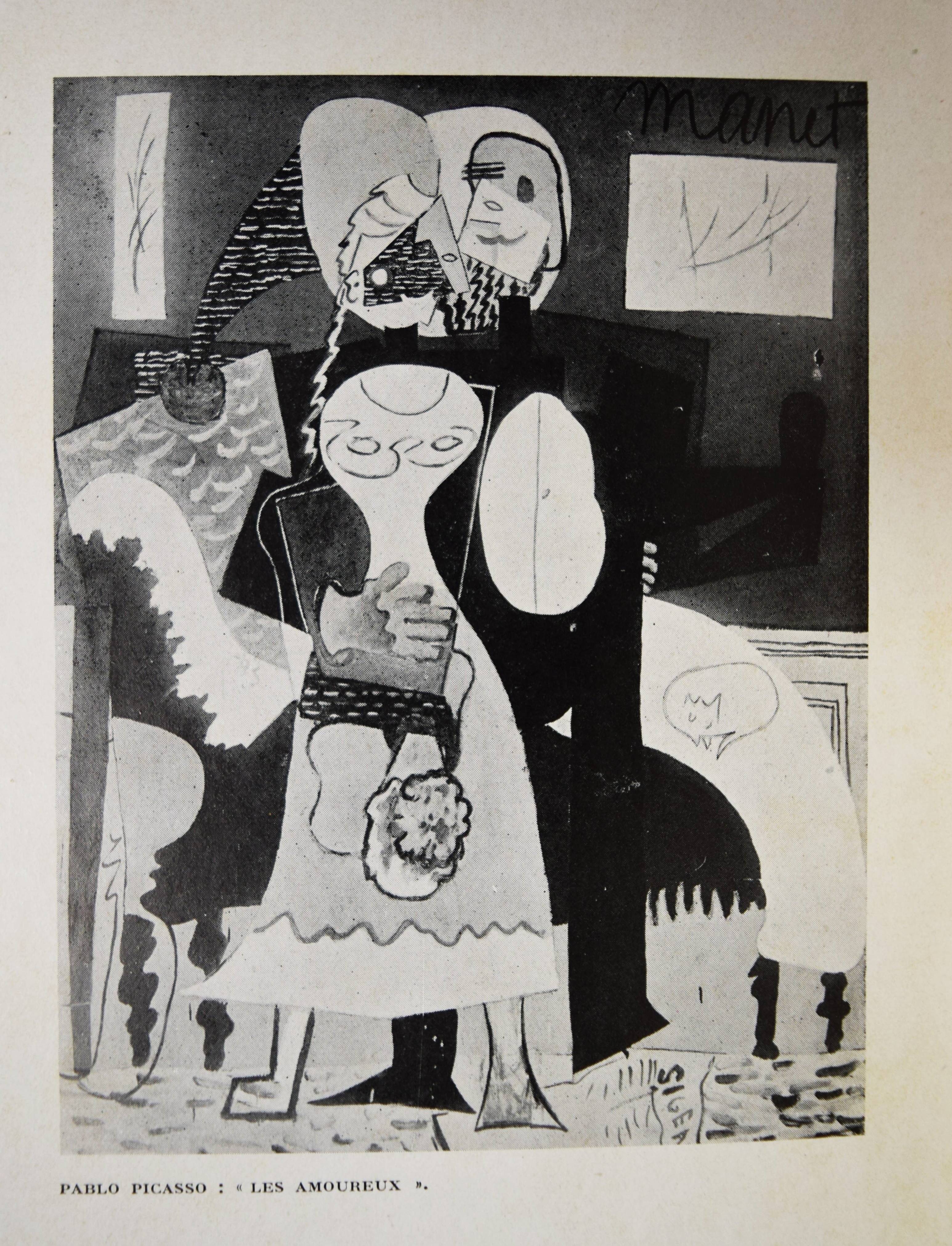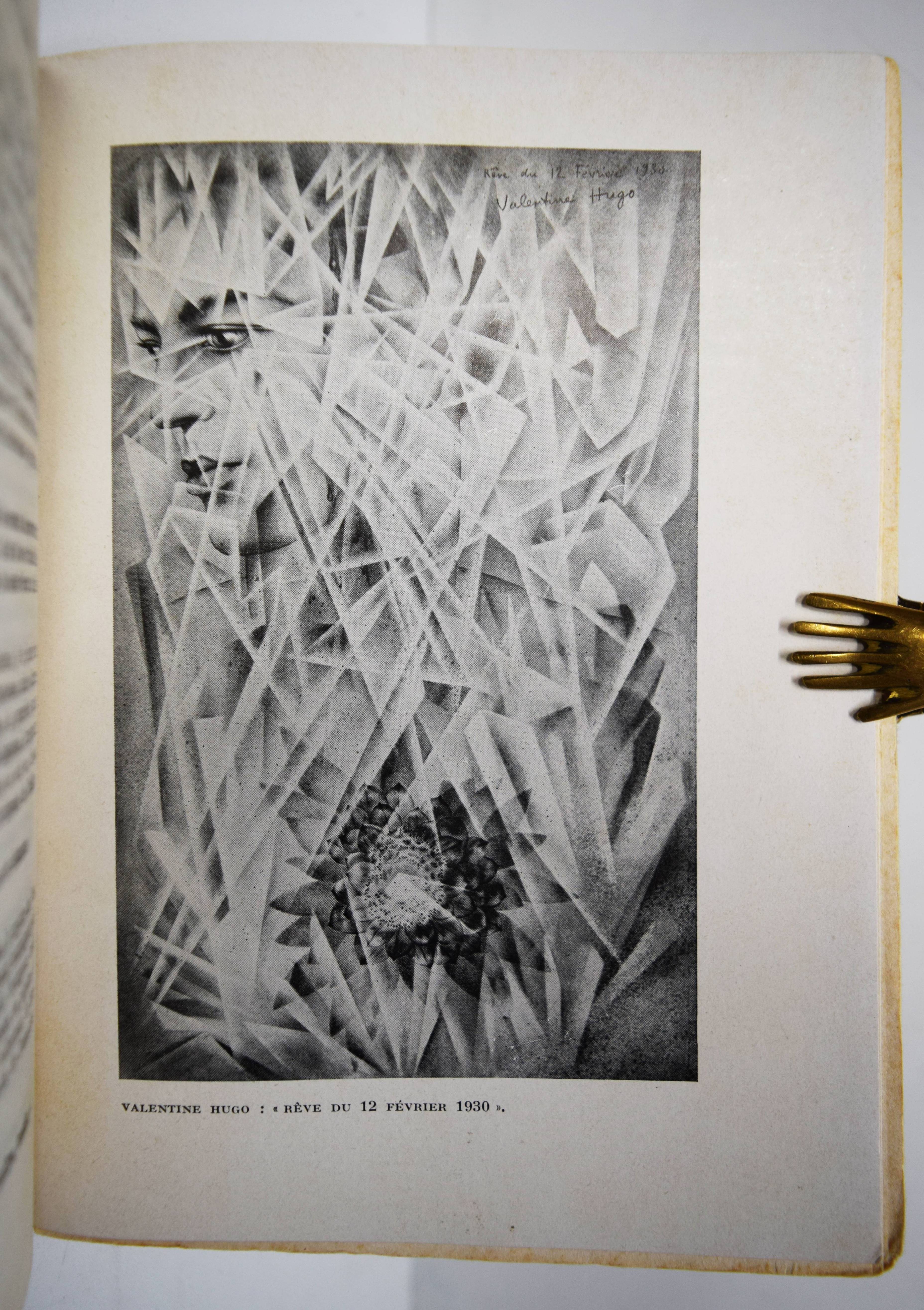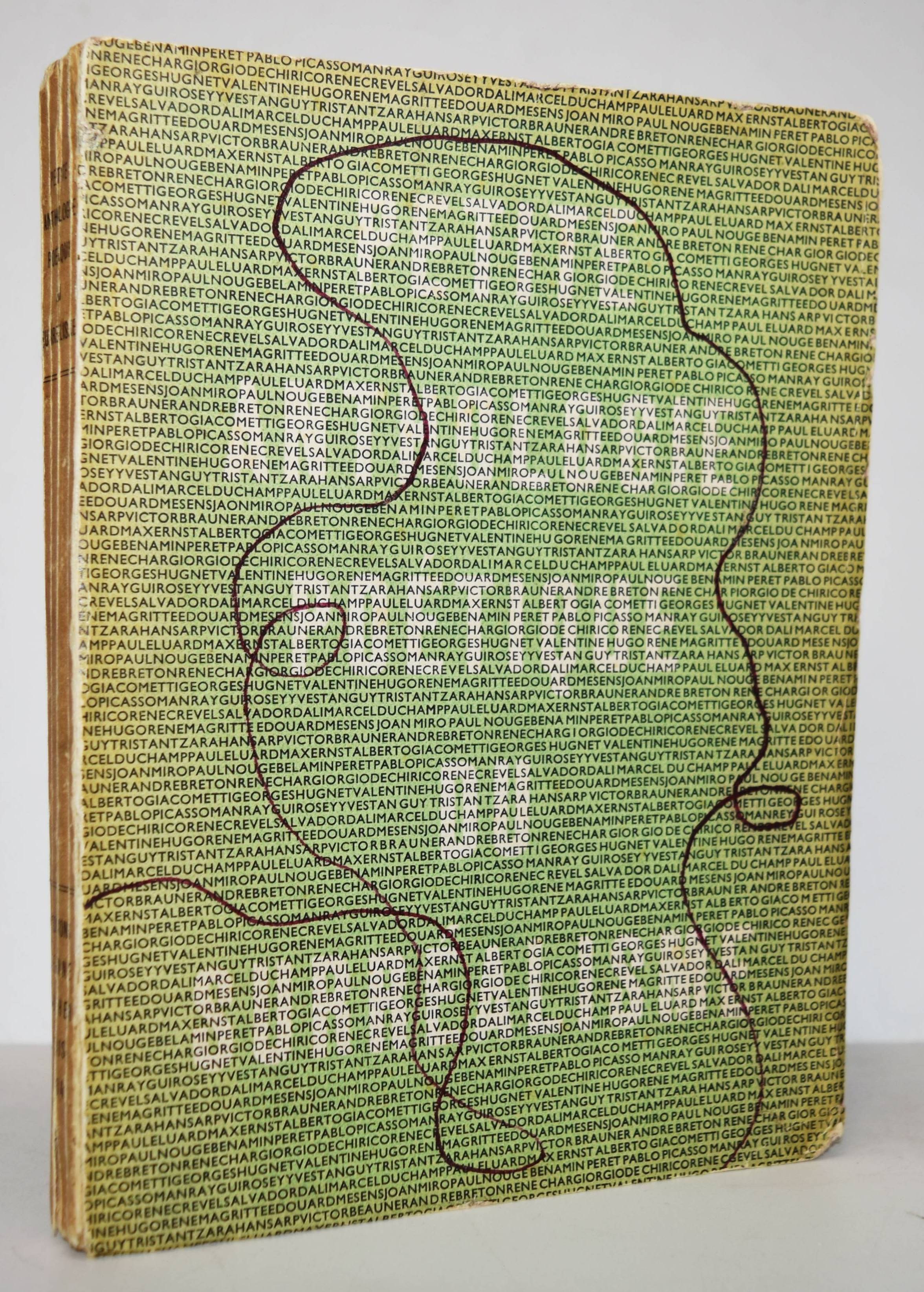 Hugnet, George (Edition). Petite anthologie poétique du surréalisme. Introduction par Georges Hugnet. Paris, Éditions Jeanne Bucher 1934. 8°. 166 p. avec 16 planches, 1 collage par G. Hugnet et 1 photogramme par Max Ernst. Broche, couverture imprimée. Première édition, l’un des 2000 exemplaires sur papier Alfa Bouffant. – Avec dédicace manuscrite et collage original de G. Hugnet pour Noël Armand, ainsi qu’un photogramme retravaillé à l’or et signé par Max Ernst. Avec ex-libris pour Noël Armand par René Magritte. – Avec des contributions (textes et illustrations) de H. Arp, A. Breton, S. Dali, M. Duchamp, Max Ernst, P. Picasso, Man Ray et autres. – Légèrement taché de brun par endroits, sinon en bon état.