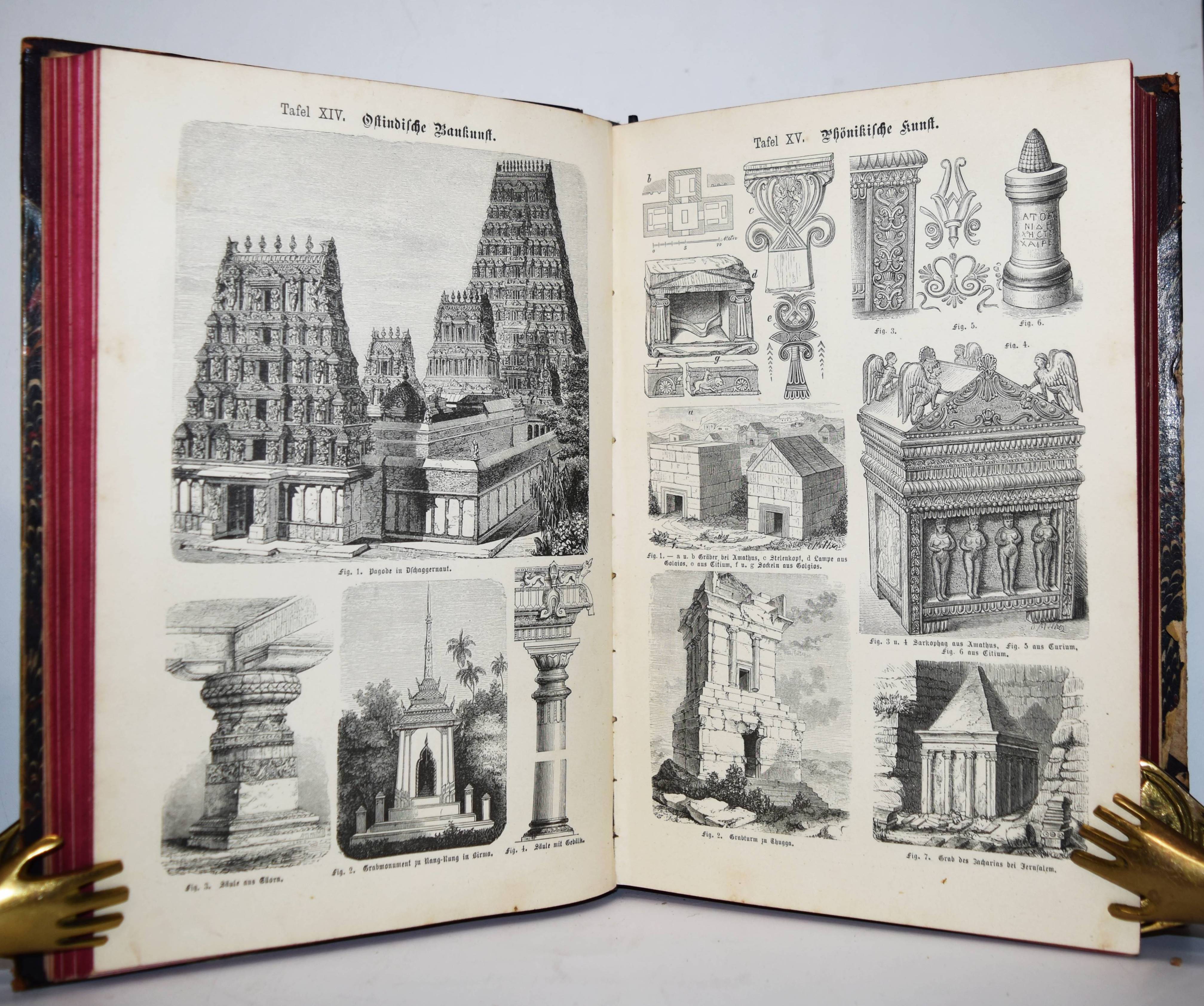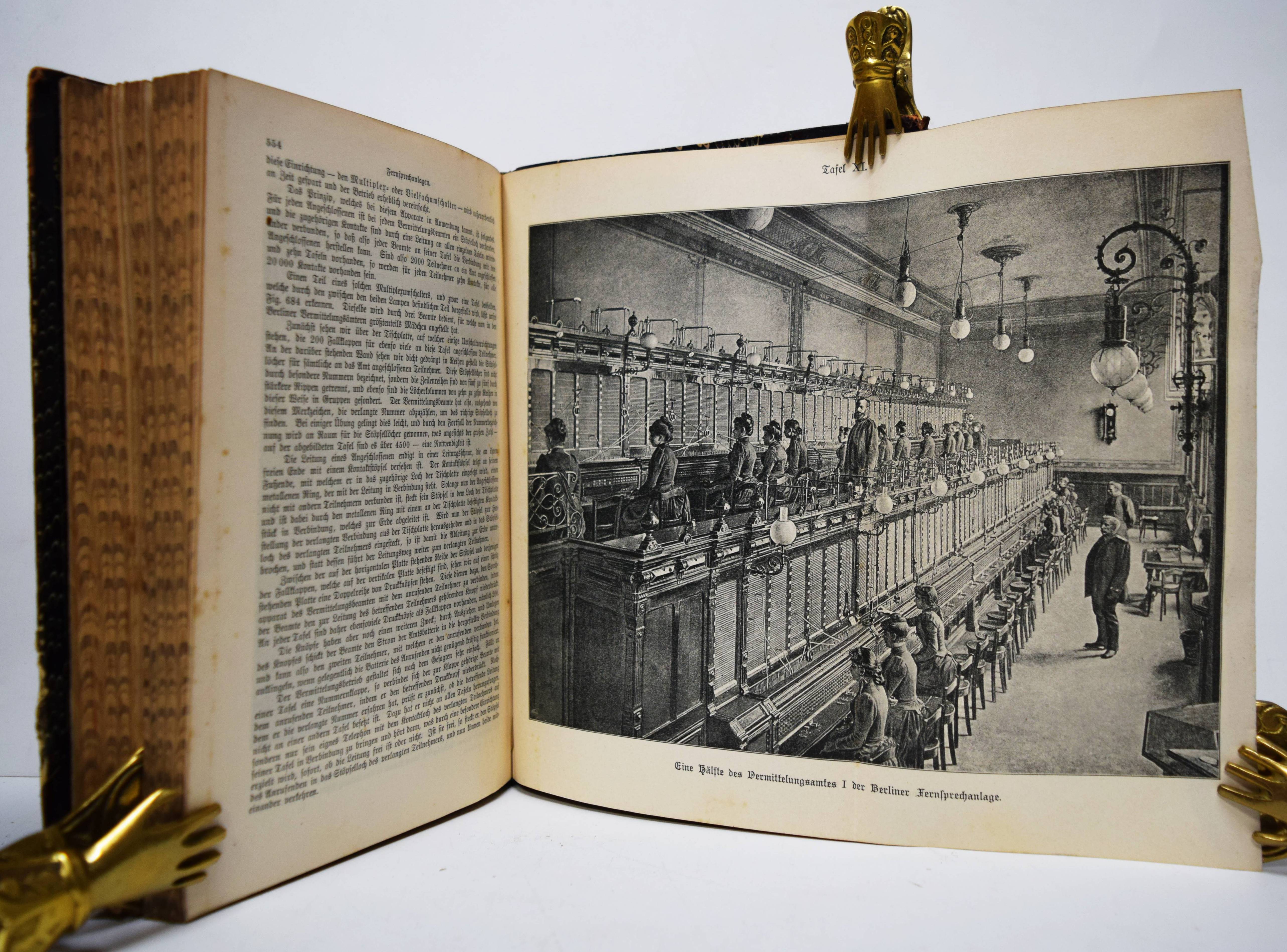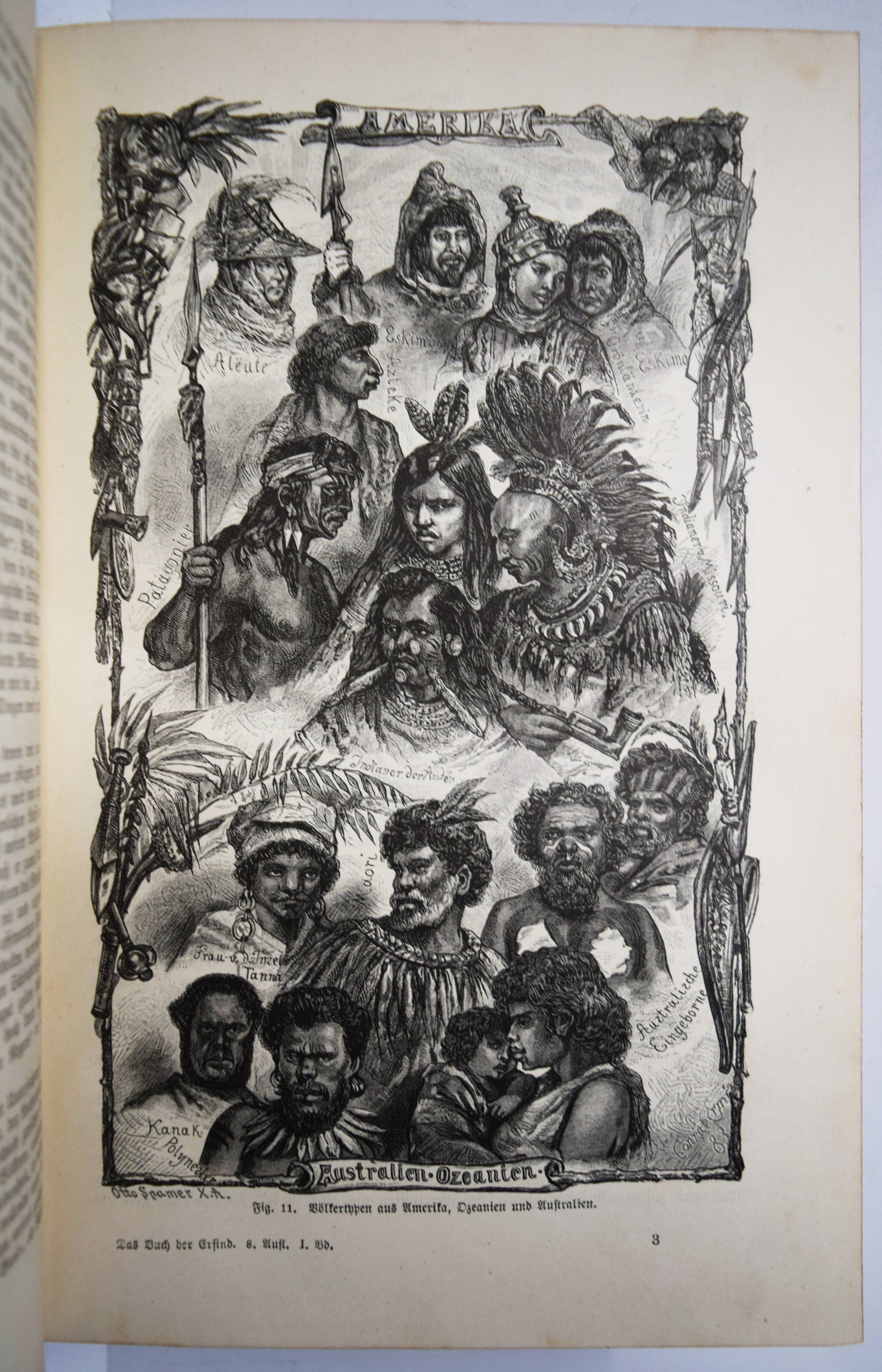 Reuleaux, F. (Hrsg.). Das Buch der Erfindungen, Gewerbe und Industrien. Rundschau auf allen Gebieten der gewerblichen Arbeit. Pracht-Ausgabe. 8. umgearbeitete und bedeutend erweiterte Auflage. 9 Bände. Leipzig und Berlin, Otto Spamer 1884-1893. Gr.-8°. Mit zahlr., teils chromolithogr. doppelblattgr. und gefalt. Tafeln sowie zahlreichen Abbildungen in Holzstich. Orig.-Halblederbände mit figürl. Rückenvergoldung. I. Einführung in die Geschichte der Erfindungen: Bildungsgang und Bildungsmittel der Menschheit. – II. Die Kräfte der Natur und ihre Bedeutung, Physikalische Technologie. – III. Die Gewinnung der Rohstoffe aus dem Innern der Erde, von der Erdoberfläche sowie aus dem Wasser. – IV. Die chemische Behandlung der Rohstoffe. Eine chemische Technologie. – V. Die Chemie des täglichen Lebens. – VI. Die mechanische Bearbeitung der Rohstoffe. – VII und VIII. Der Weltverkehr und seine Mittel. – IX. Die Elektrizität, ihre Erzeugung und ihre Anwendung in Industrie und Gewerbe. – Einbände etwas berieben, stellenweise etwas finger- und braunfleckig, sonst gutes Exemplar der deokorativ gebundenen Pracht-Ausgabe.