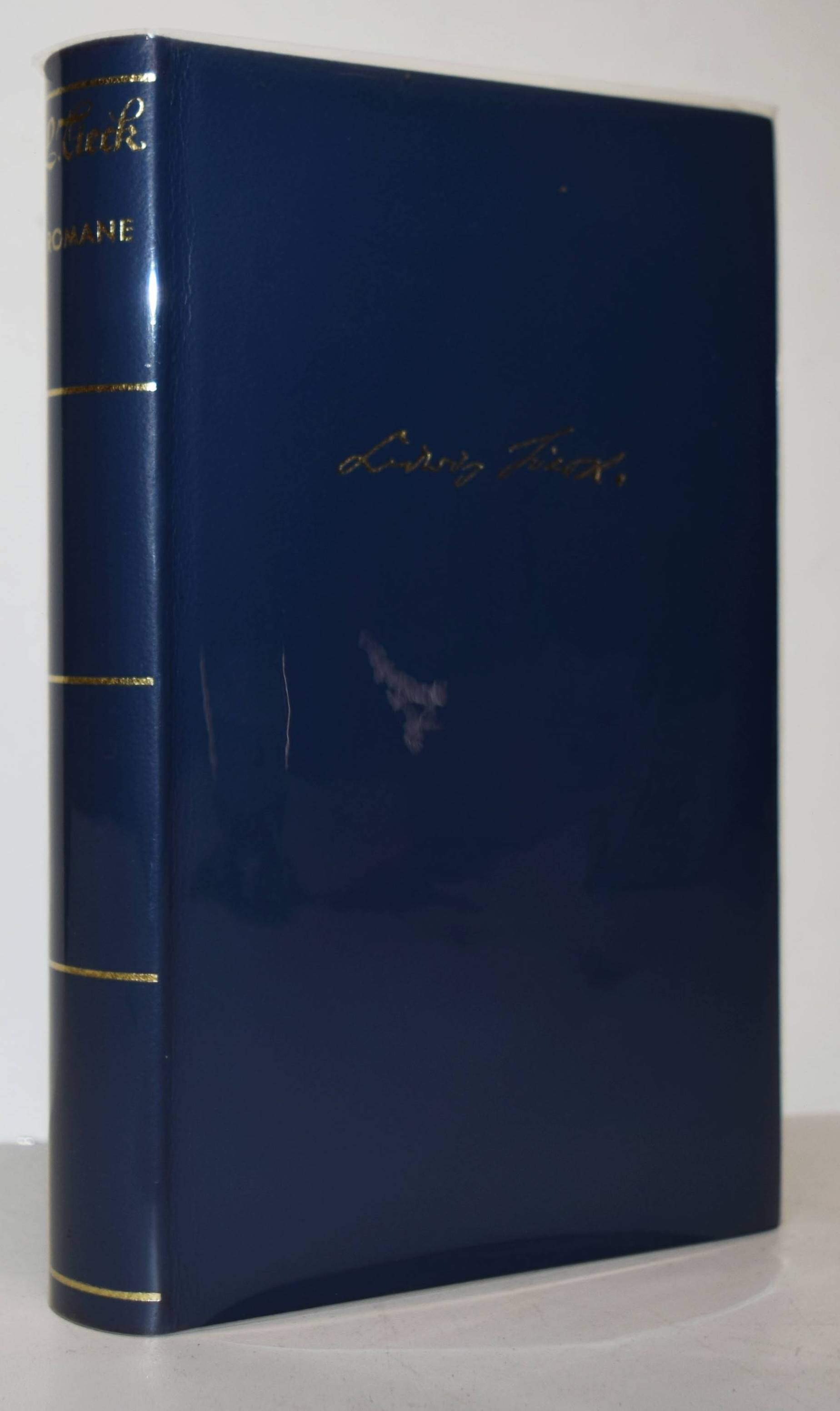 Tieck, Ludwig. Romane. (Nach dem Text der „Schriften“ von 1828-1854 … und der Ausgabe von 1841 (Vittoria Accorombona) unter Berücksichtigung der Erstdrucke herausgegeben sowie mit einem Nachwort und Anmerkungen versehen von Marianne Thalmann). München, Winkler Verlag (1988). 8°. 852 (2) S. Dunkelblauer Orig.-Lederband mit goldgepr. Rückentitel, Linienvergoldung und Deckelsignatur und Kopfgoldschnitt und Klarsicht-Schutzumschlag. (Werke, Band IV). Sehr gutes Exemplar der schönen Lederausgabe.
