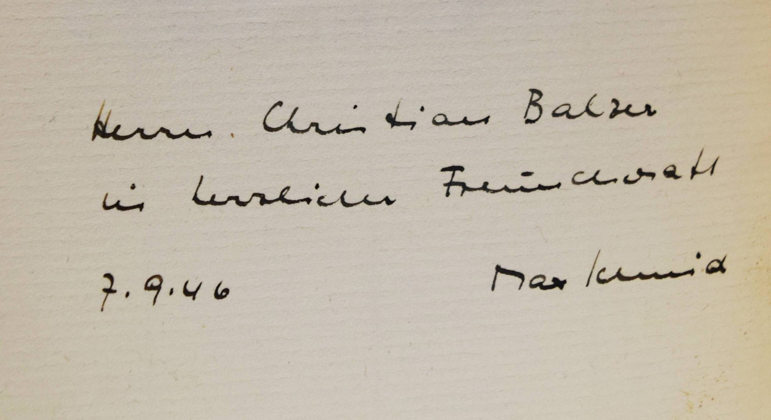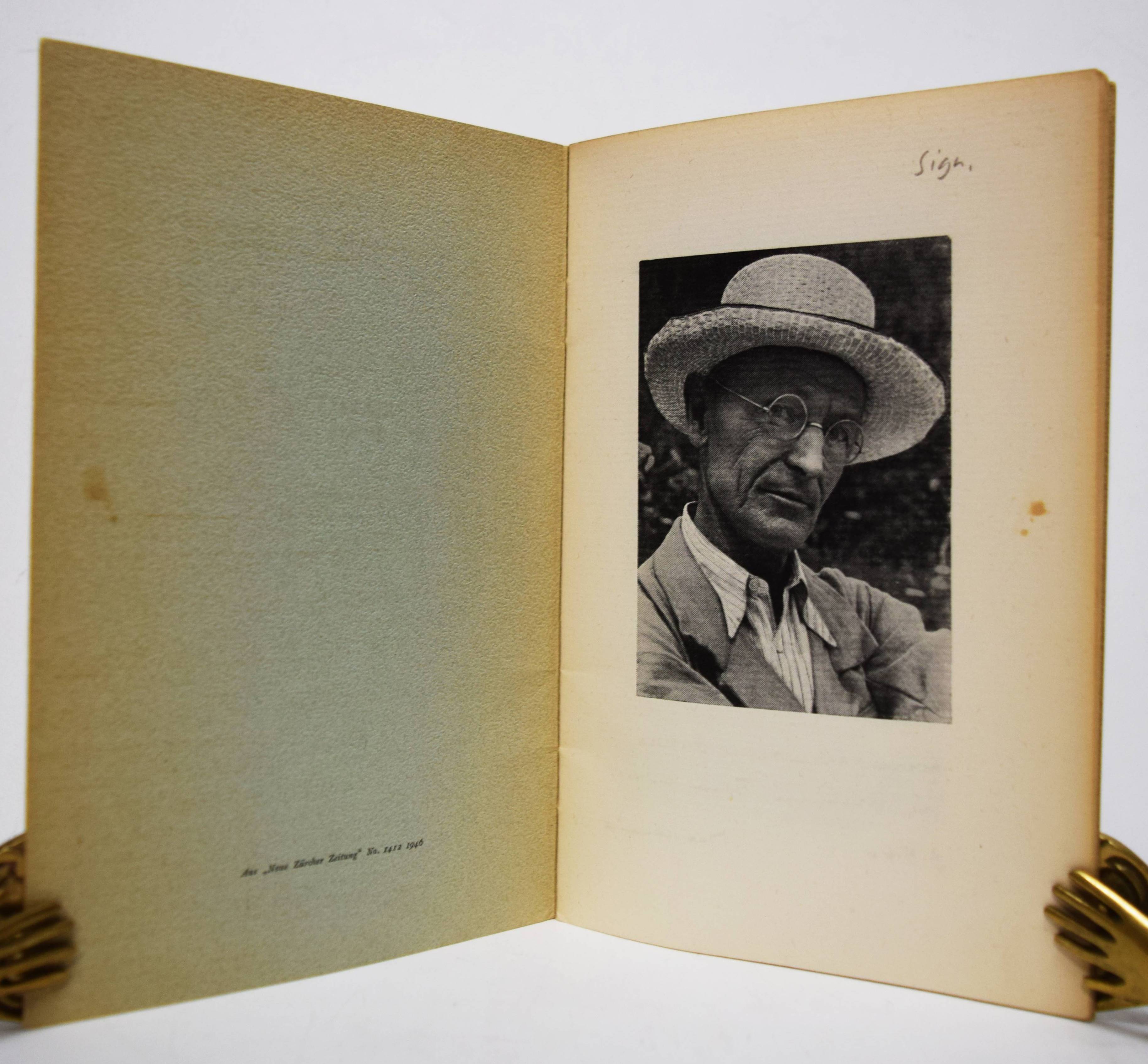 Hesse – Schmid, Max. Hermann Hesse. Das Grundproblem seiner Hauptwerke. (Zürich, Selbstverlag 1946). Kl.-8°. 15, (1) S. mit 1 Portrait. Orig.-Kartonumschlag. Mit eigenhändiger Widmung von Max Schmid. – Seltene Arbeit, die zuerst in der Neuen Züricher Zeitung (Nr. 1412) erschienen ist. – Altersbedingt etwas gebräunt.