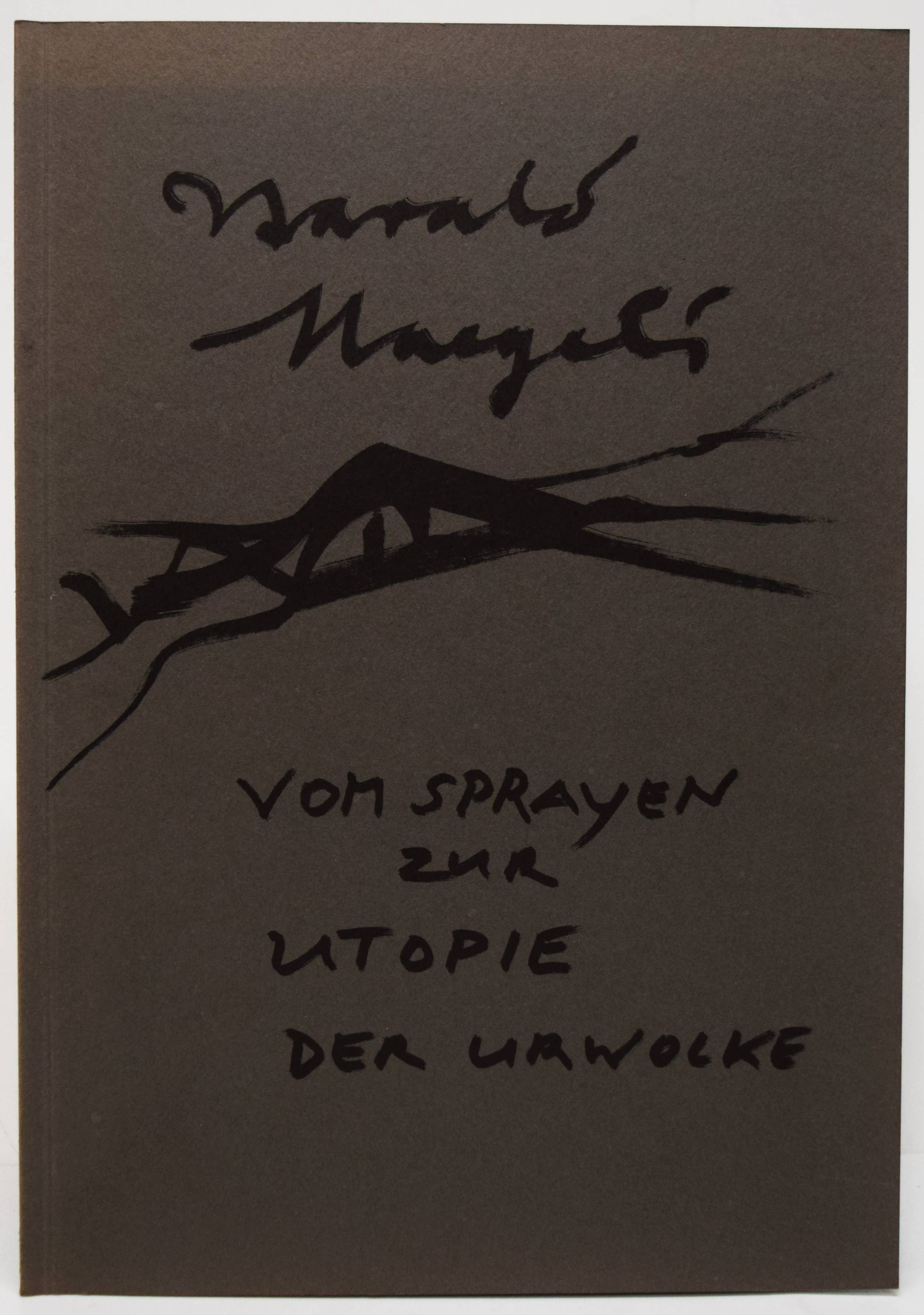 Naegeli, Harald. Vom Sprayen zur Utopie der Urwolke. [Katalog zur Ausstellung: 21. September bis 29. Oktober 2000]. Basel, Galerie Carzaniga + Ueker (2000). 4°. [16] Bl. mit Portrait und 21 Abbildungen. Illustr. Orig.-Kartonumschlag. Mit eigenhändiger Zeichnung und Widmung, sowie eigenhändigem Brief mit kleiner Zeichnung und Farbfotografie (Graffiti) von H. Naegeli für die Züricher Galleristen Ingrd und Franz Ehrenberger, dat. 1. Februar 2008. – „Wenn Sie Ihren Ohren trauen, werden Sie sich plötzlich ganz leicht fühlen. Sie können über dem Boden schweben und sich mit grosser Leichtigkeit in alle Himmelsrichtungen wenden. Es wird Ihnen gelingen, im Ballongefährt Ihrer Imagination hinaufzugleiten und die Stadt unter sich verschwinden zu hören. Im Silberflüstern der hohen Luftschichten treffen Sie auf den Murmelstrom Ihres Innenohres und Sie werden auf weiten Atembögen von Raum- und Zeitwellen dahinfahren. Nun sind Sie in Resonanz mit dem inneren Aggregatszustand der Urwolkenbilder von Harald Naegeli. Verweilen Sie solange es Ihnen beliebt! Ein Jahr in der Urwolke entspricht einem kostbaren Augenblick Ihres Alltags!» (Andres Bosshard, 2021). – Der Züricher Zeichner und Grafiker Harald Naegeli (geb. 1939) gilt als einer der wichtigsten Wegbereiter europäischer Graffiti- und Streetart-Kultur.