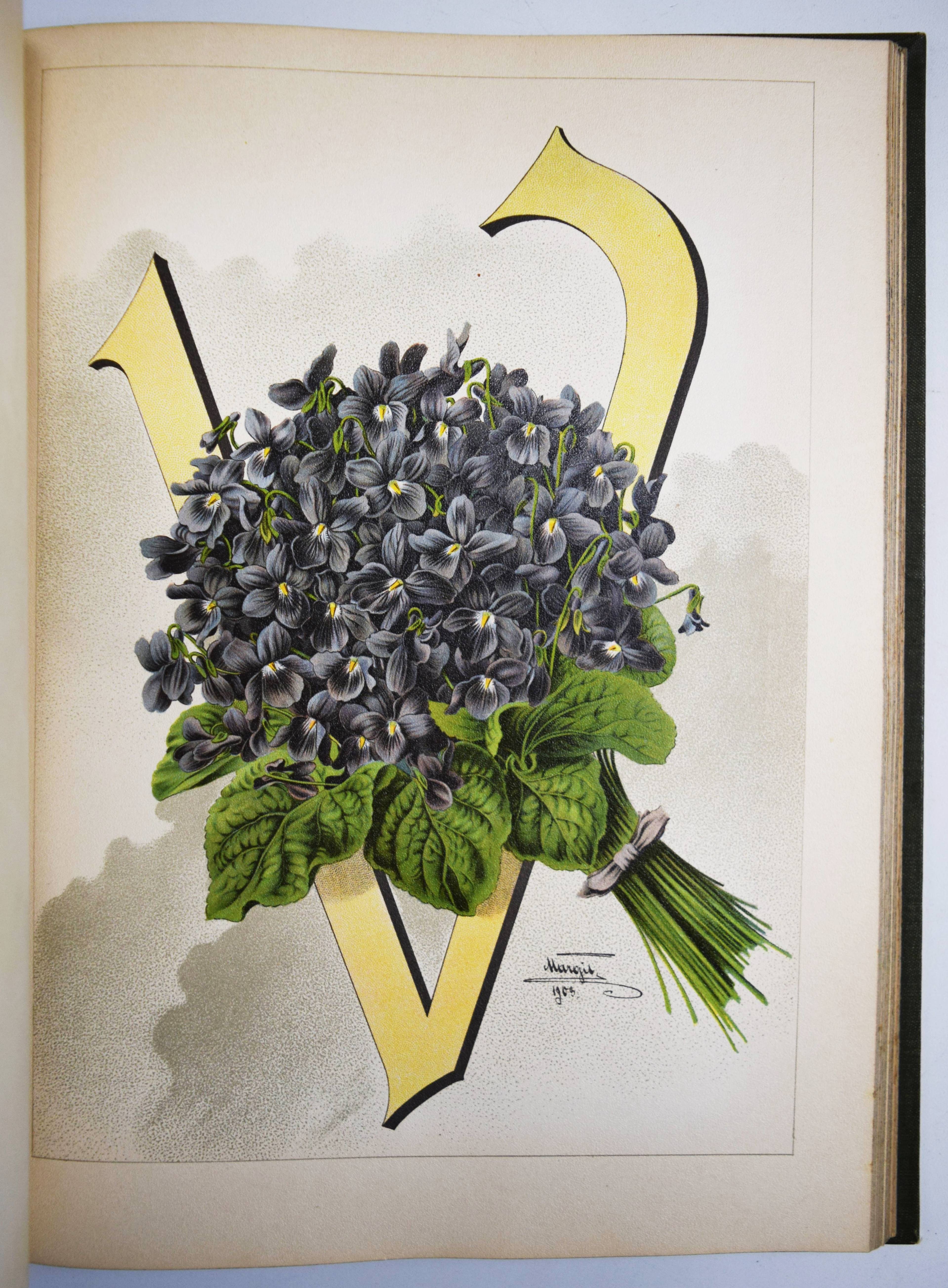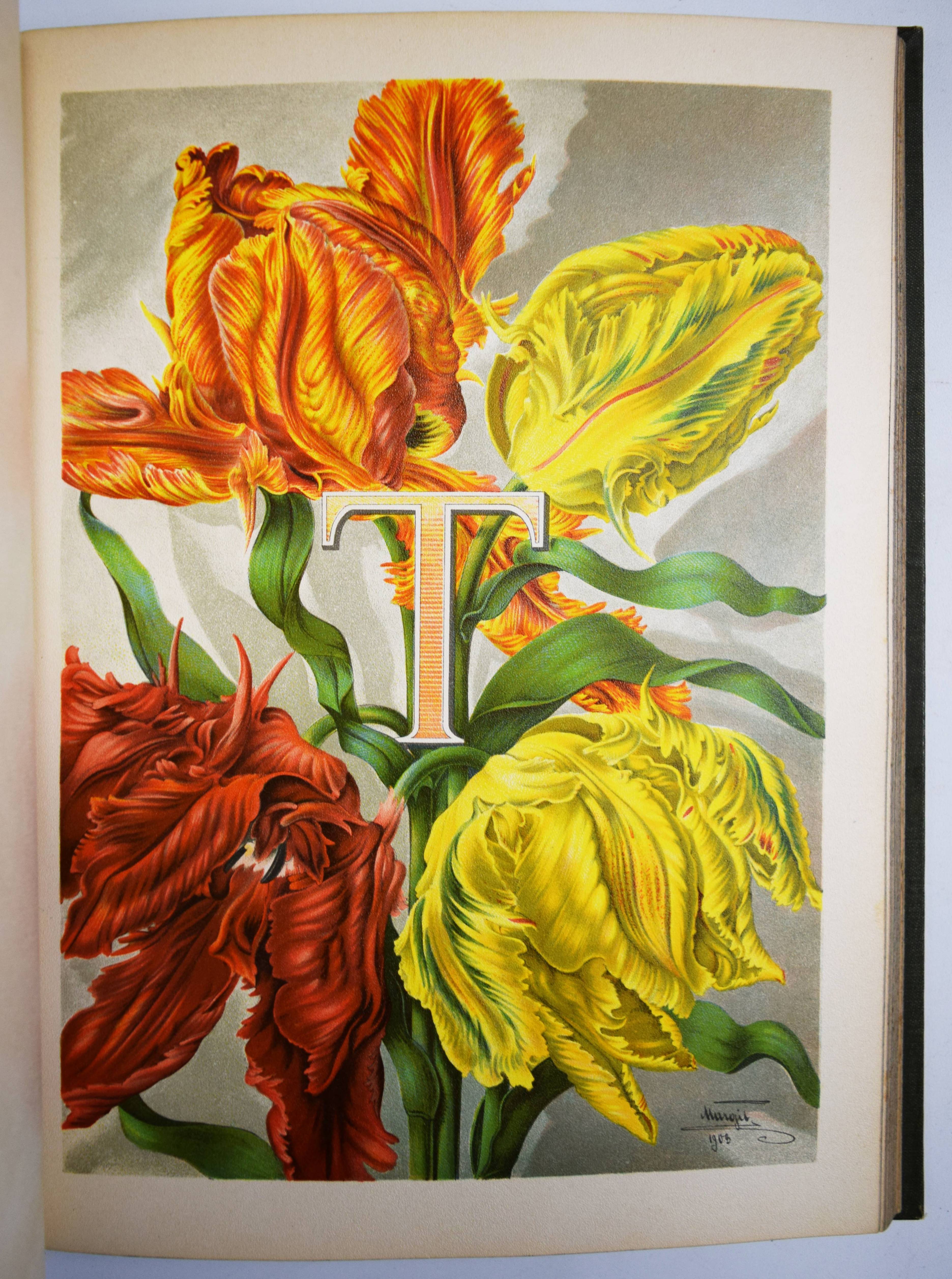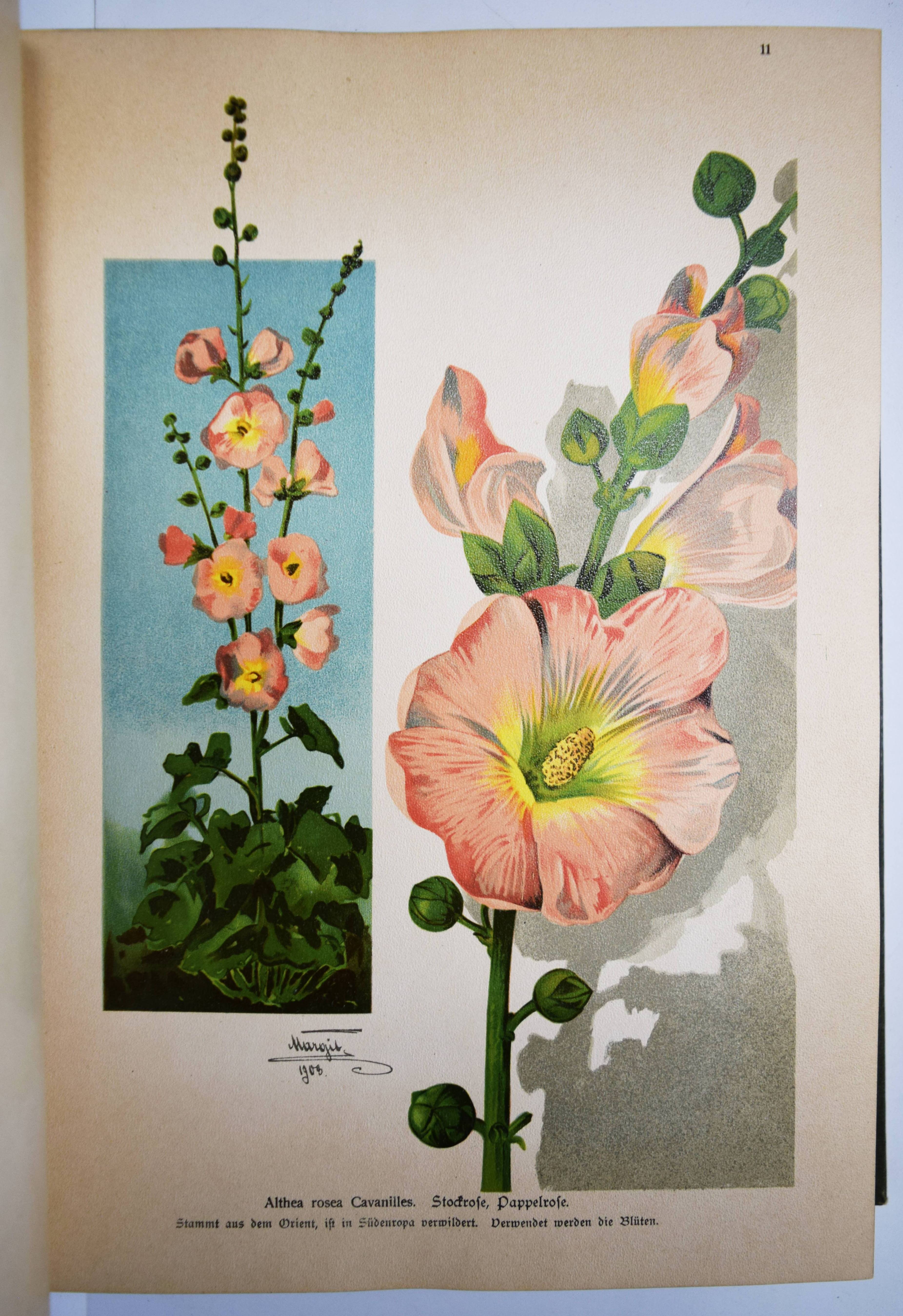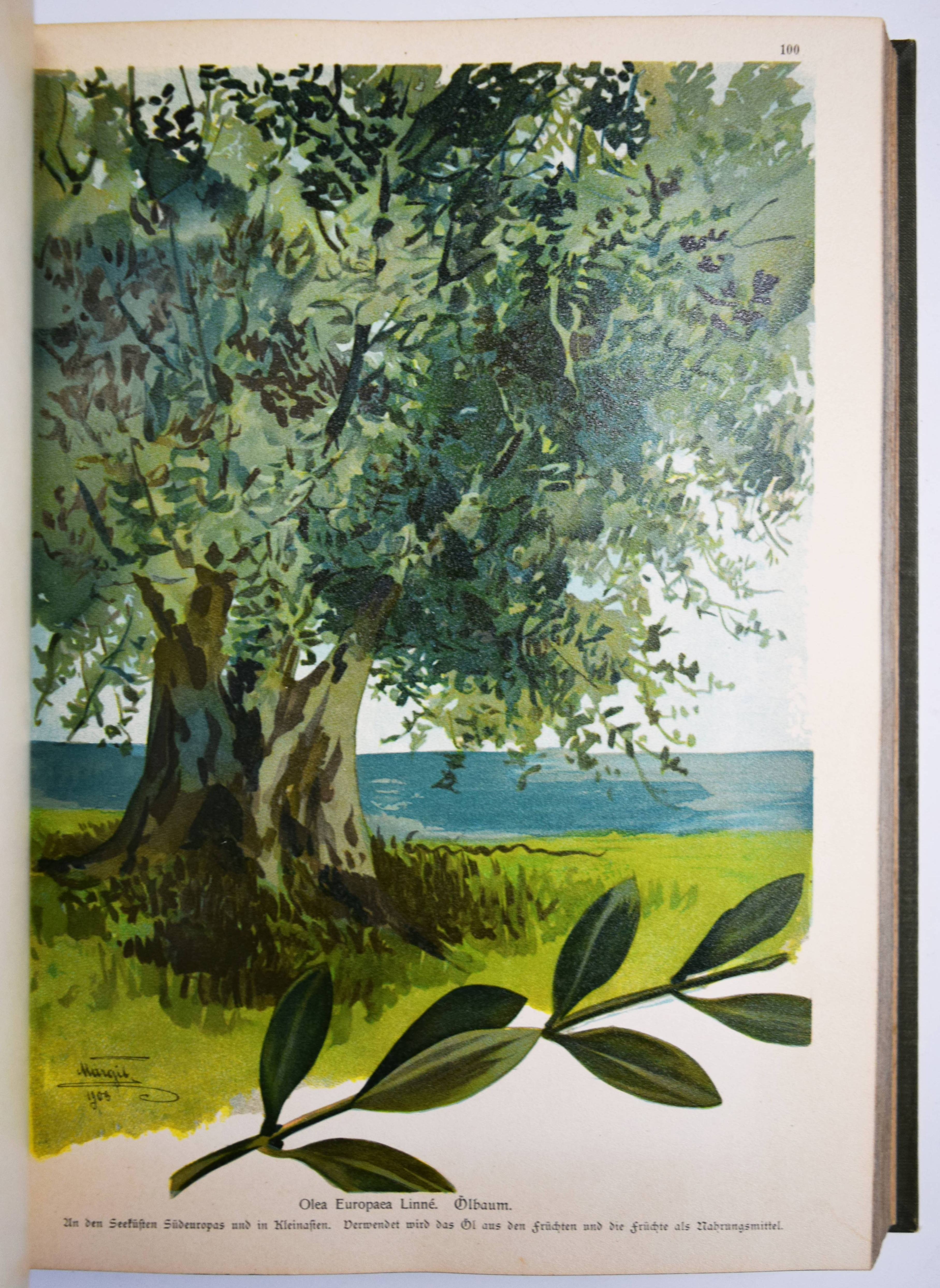 Joseph, Erzherzog von Österreich. Atlas der Heilpflanzen des Praelaten (Sebastian) Kneipp. Bildlich dargestellt durch Margarethe von Thurn und Taxis. Regensburg, W. Wunderlings Hofbuchhandlung (1904-1906). Gr.-4° (31 x 23,5 cm.). Chromolithogr. Titelblatt, chromolithogr. Widmungsblatt, [1] Bl. (Vorwort), 188 chromolithogr. Tafeln, 20 chromolithogr. Zwischentitel und 21 chromolithogr. Register-Blätter (zusammen 231 Chromolithographien). Farbig illustr. Orig.-Leinenband mit goldgepr. Rücken- und Deckeltiteln. Nissen 1008 n. – Erste Ausgabe mit prachtvollen Jugendstil-Pflanzendarstellungen. – Außer dem Vorwort vollständig chromolithographisch gedruckt. Die Fürstin, Tochter des Verfassers, die ihre Zeichnungen lässig mit „Margit“ signierte, schuf nicht nur die Pflanzen-Aquarelle, oft vor eindrucksvollen oder idyllischen Landschaften, sondern auch noch dekorative Zwischentitel und Registerblätter. – Rücken am Kapital und Fuß gering berieben, sehr schönes Exemplar.