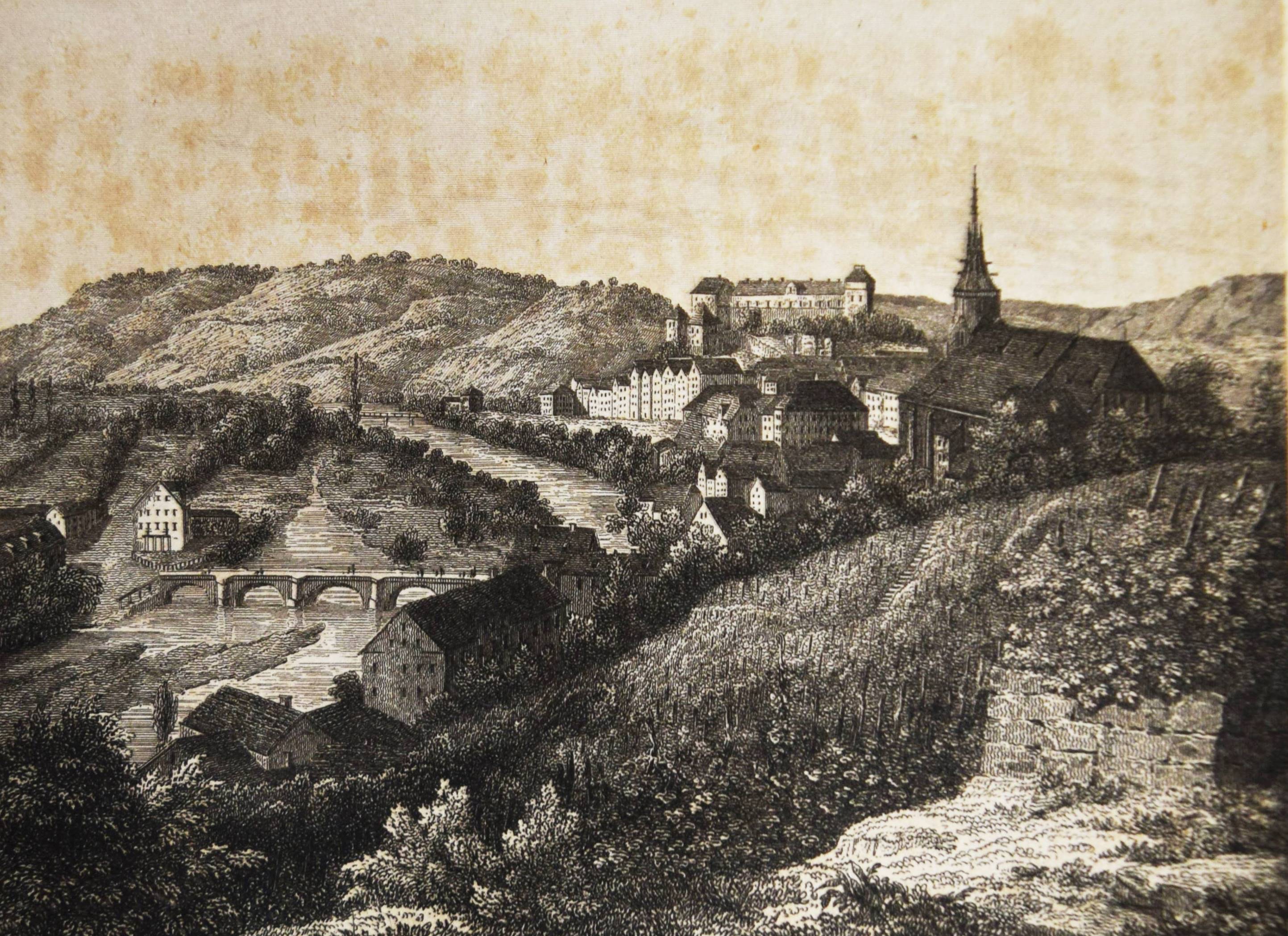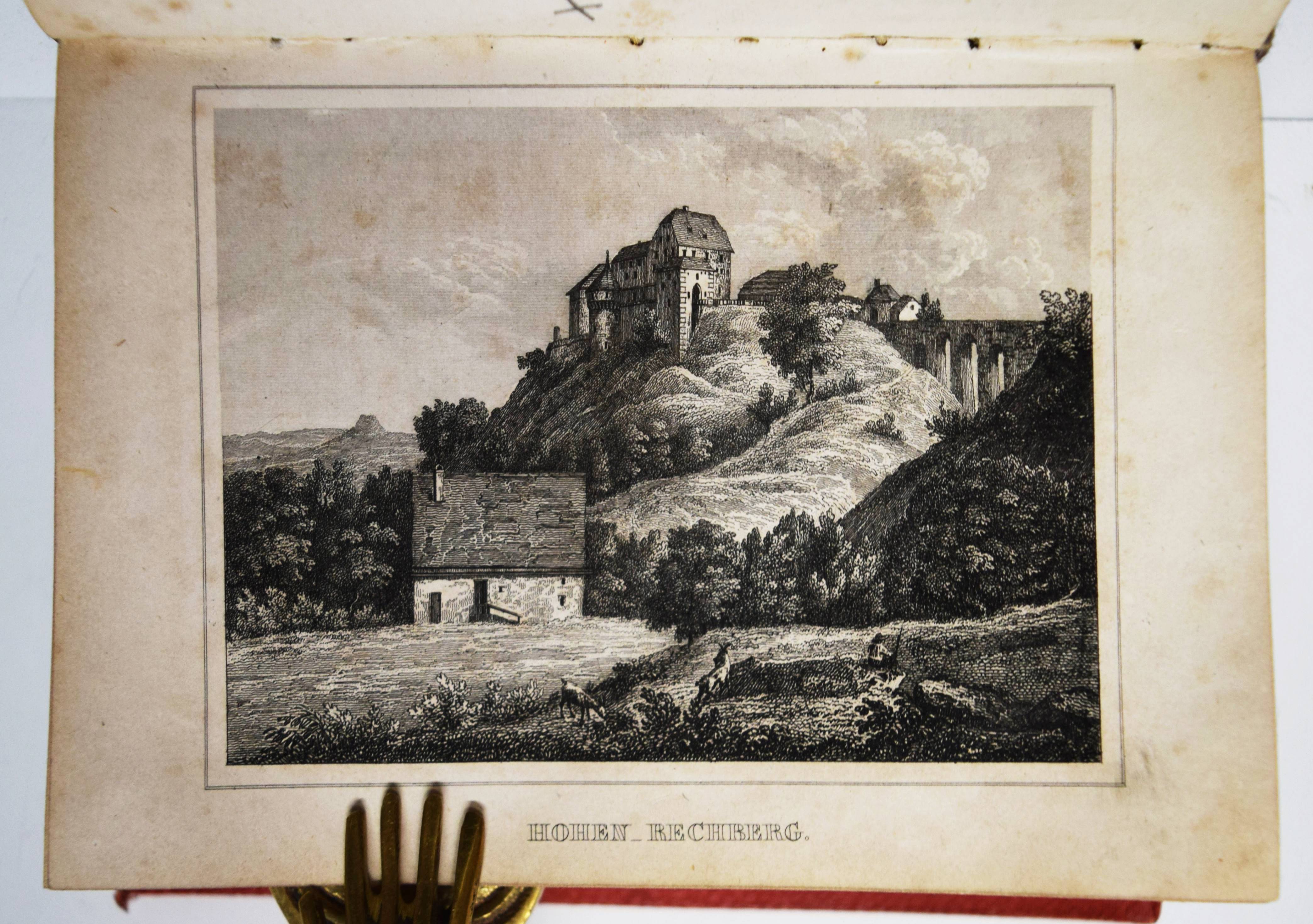 Moser, Rudolph (Friedrich) v. Vollständige Beschreibung von Wüttemberg. Ein geographisch-statistisch-topographisches Hand- und Hausbuch für Beamte, Kaufleute, Gewerbetreibende. In allen seinen Städten, Dörfern, Schlössern, Bädern, Flüssen, Bergen, Merkwürdigkeiten, wichtigen Ereignissen. 2 Bände. Stuttgart, Scheible, Rieger & Sattler 1843. Kl.-8° (14 x 10,5 cm.). IV, 661 S.; Titel, 902 S. mit 24 Stahlstich-Ansichten und 1 gefalt. Stadtplan von Stuttgart. Weinrote Leinenbände der Zeit. Engelmann I, 1053. Heyd I, 215. – Mit Ansichten von Bad Boll, Canstatt, Laufen, Herrenalb, Mergentheim, Tübingen, Weinsberg, Wildbad u. a. – Durchgehend etwas braunfleckig und gebräunt, gutes vollständiges Exemplar.