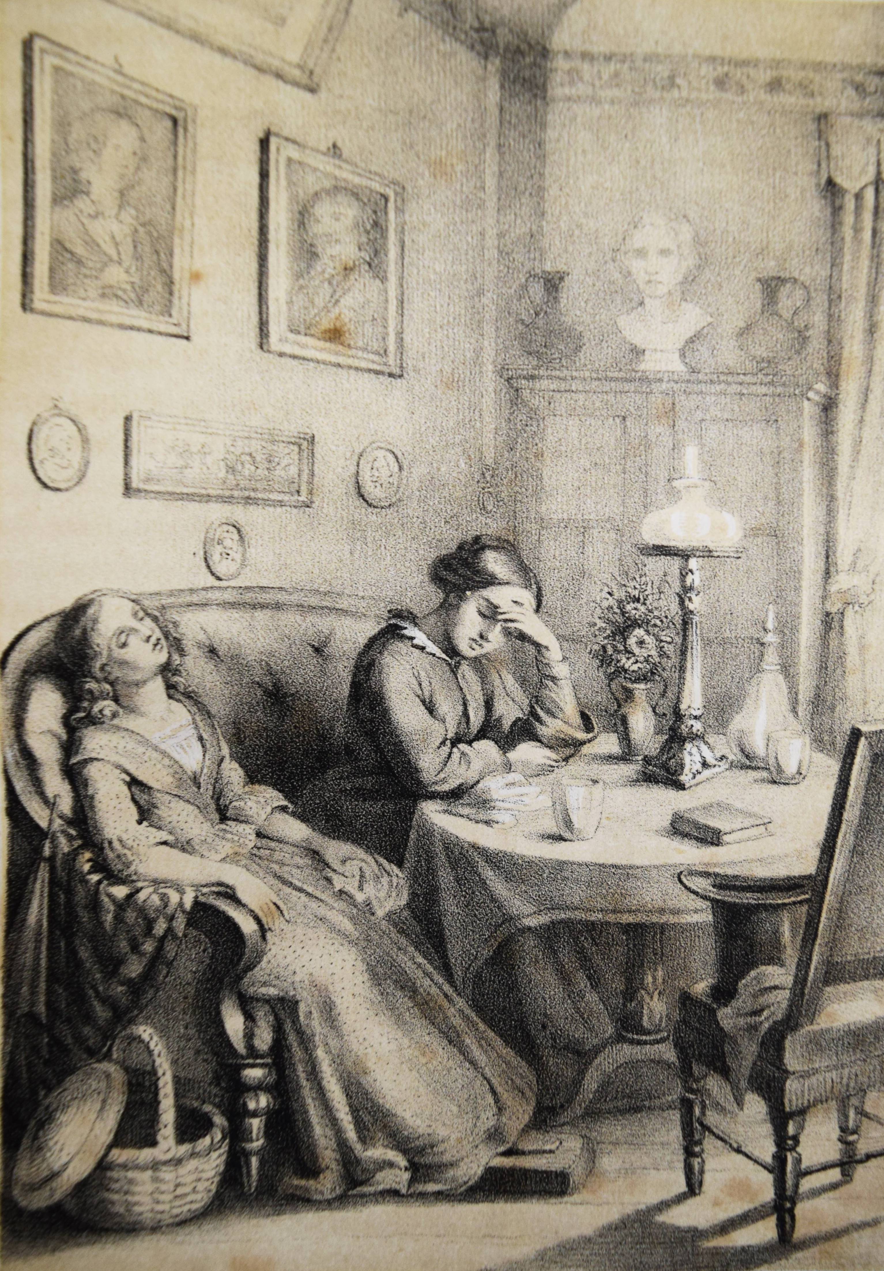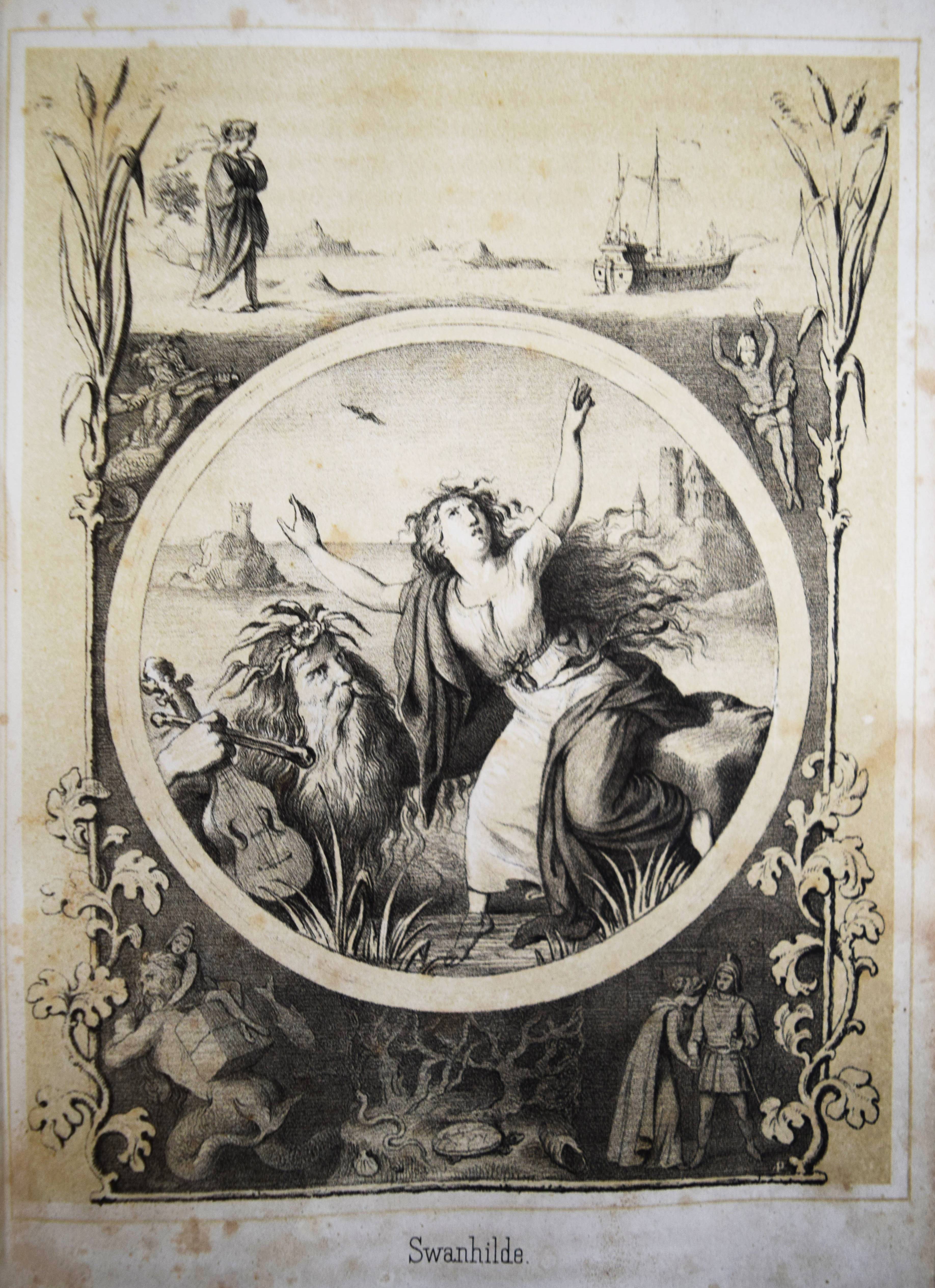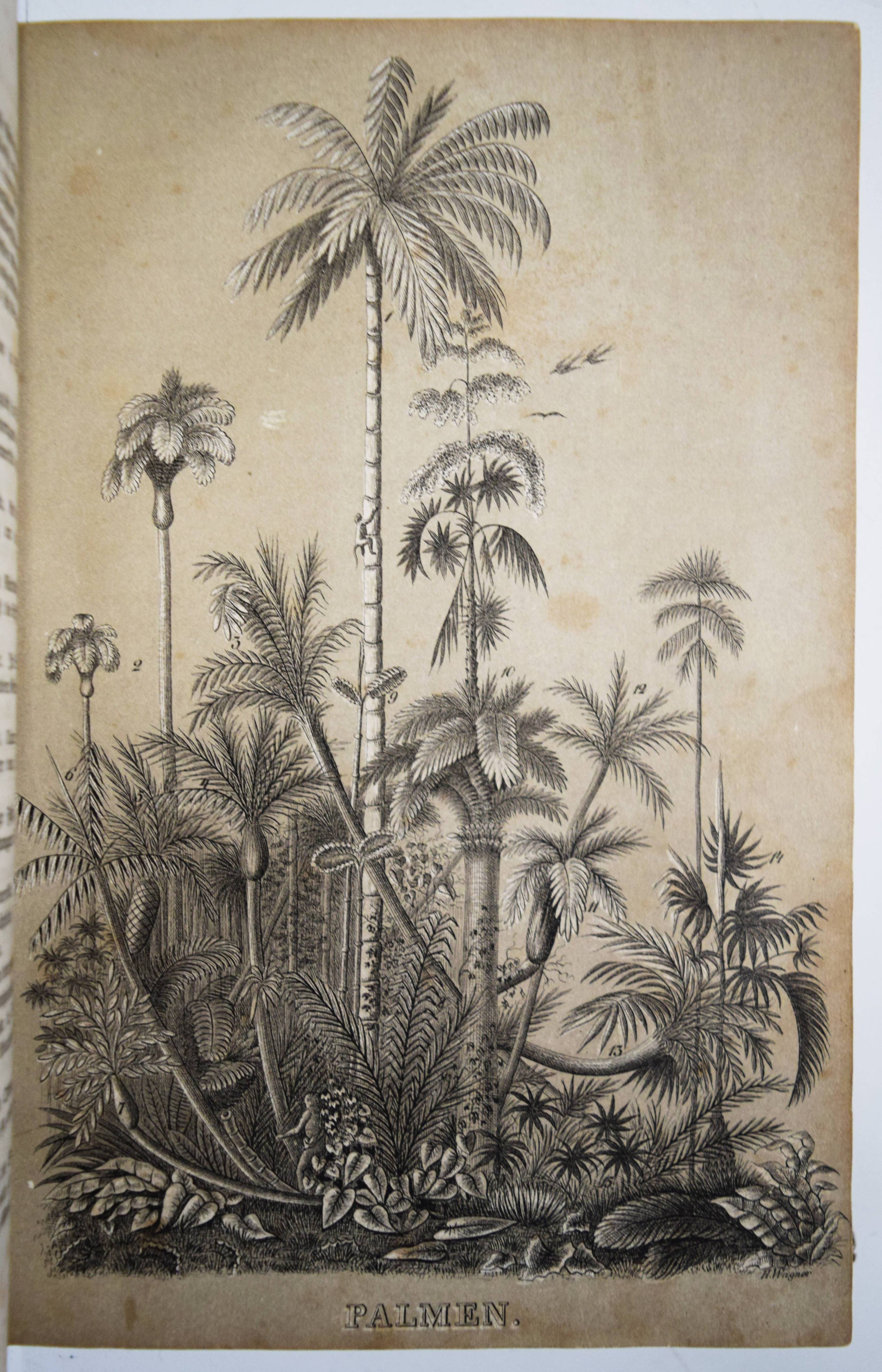 Gumpert, Thekla v. (d. i. Thekla von Schober, Hrsg.). Töchter-Album. Unterhaltungen im häuslichen Kreise zur Bildung des Verstandes und Gemüthes der heranwachsenden weiblichen Jugend. Zweiter Band. Glogau, Carl Flemming o. J. (1856). Gr.-8°. VII, 574 S., [1] Bl. mit lithogr. Portrait-Frontispiz, lithogr. illustr. hellblau lavierter Titel und 29 lithogr. Tafeln von (Hugo) Bürkner und H(ermann) Wagner. Halblederband der Zeit mit goldgepr. Rückentitel und Romantikervergoldung. Bilderwelt 1290. HKJL IV, 910. Hobrecker, Braunschweig 7848. LKJ I, 512 und III, 544 f. Seebaß II, 2053. Wegehaupt IV, 2737. – Seltener zweiter Jahrgang des, neben dem „Herzblättchen“ erfolgreichsten Mädchen-Jahrbuchs des 19. Jahrhunderts. – „Absicht der Herausgeberin und Inhalt lassen sich aus dem Motto ablesen, welches sich auf den hübsch lithographierten Titeln findet: „Willst du erfüllen die Pflichten, zu welchen Dich rufet Dein Dasein, Sei die Maria im Geist, sei in der Thätig keit Martha!“. Der Inhalt setzt sich aus Erzählungen, Biographien, geschichtlichen und kulturgeschichtlichen Schilderungen, naturwissenschaftlichen Artikeln, Anleitungen zu Beschäftigungen usw. zusammen. Die Illustrationen sind oft bemerkenswert“ (A. Seebaß). – Rücken etwas berieben, durchgehend teils stärker braunfleckig, noch gutes Exemplar.