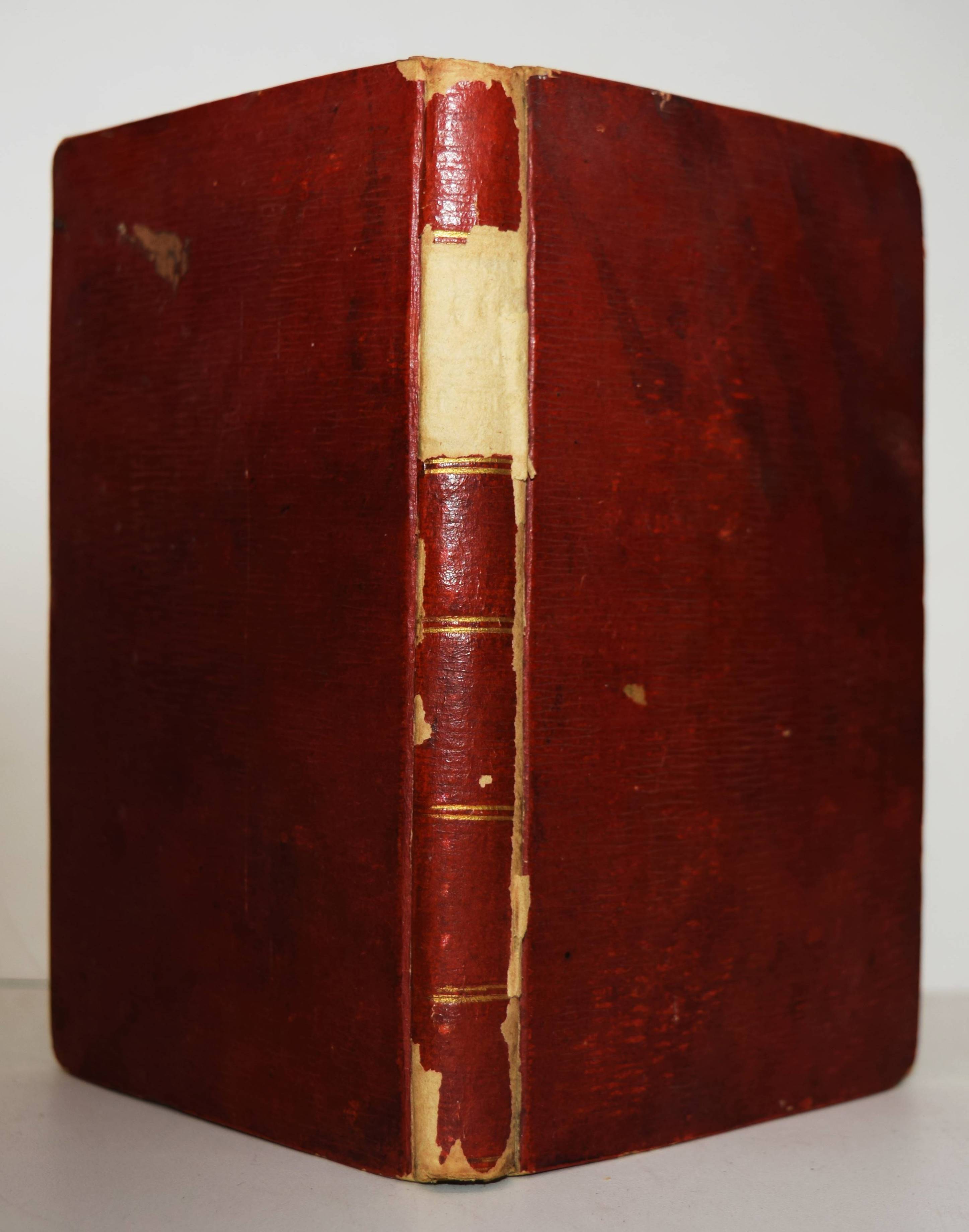 Schilderungen aus Natur, Welt und Menschenleben. Ein angenehmes und nützliches Geschenk für die Jugend. Mit Kupfern. Nürnberg, Friedrich Campe 1816. Kl.-8° (16,5 x 10 cm.). [4] Bl., 416 S. mit 8 handkol. Kupfertafeln. Halbpergamentband der Zeit mit modernem Papierrückenschild. Rammensee 1389 (dat. 1815). Seebaß II, 1759. Wegehaupt I, 1889 (mit Farbabb. S. 218). – Seltene erste Ausgabe; 1820 erschien eine 2. verbesserte Auflage, erweitert um einen zweiten Teil mit Kupfern von J. M. Voltz. – „Rammensse 1389 gibt dass Datum 1815 und die nächste Ausgabe 1819. Höchstwahrscheinlich erschienen Exemplare des ersten Druckes mit den Daten 1815 und 1816, bzw. ist die Ausgabe mit dem Datum 1816 als Titelauflage der ersten anzusehen. – Eine Sammlung sehr interessanter Schilderungen der Landung des Columbus, einer Grönlandfahrt, der Insel Island des Erdbebens in Lissabon 1755, des Sächsischen Prinzenraubes, der Abenteuer als James Erdbebens in Lissabon 1755, des Sächsischen Prinzenraub es, der Abenteuer des James Cook usw. Der 4. Abschnitt ist eine Übersetzung der „Bemerkungen“ Benjamin Franklins „über die Wilden in Nordamerika“. – Die fein kolorierten Kupfer mit Darstellungen des Lissabonner Erdbebens, des Todes Kapitän Cooks, der Landung des Columbus usw. sind sehr bemerkenswert“ (A. Seebaß). – Einband etwas berieben, Rücken angestaubt, gelöschter Besitzvermerk auf dem Titelblatt, stellenweise etwas fingerfleckig, gutes Exemplar.