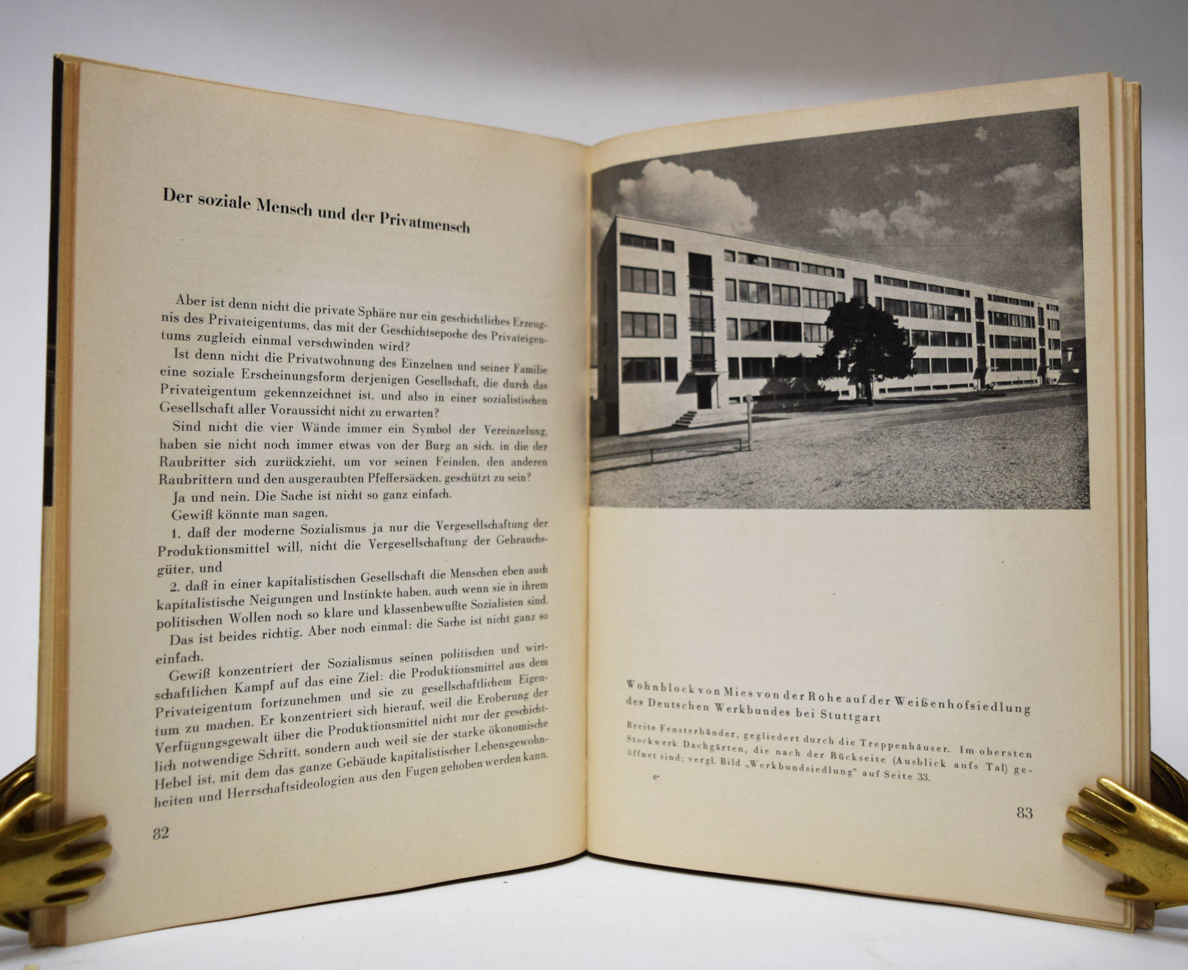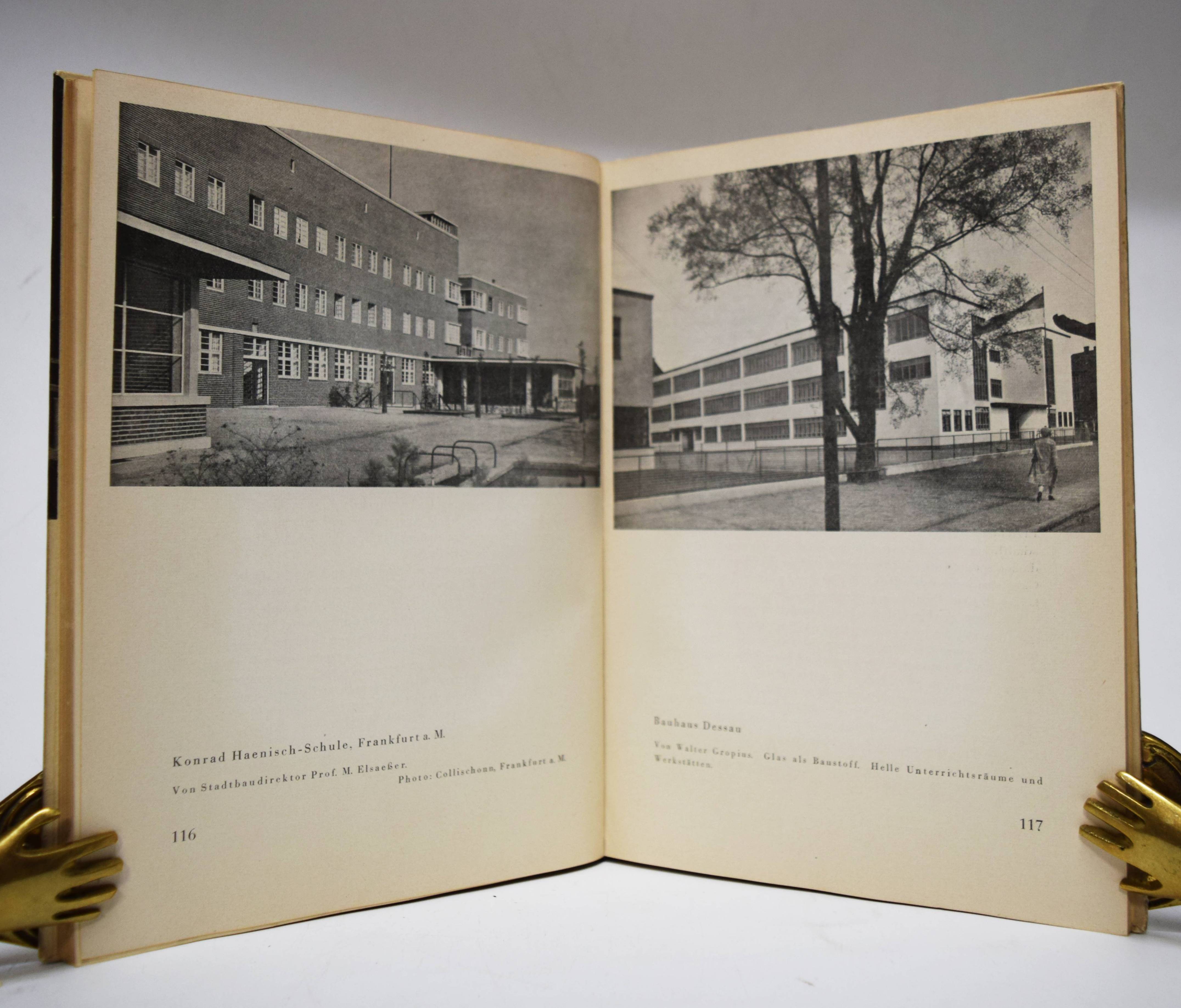 Sigrist, Albert (d. i. Alexander Schwab). Das Buch vom Bauen. Wohnungsnot · Neue Technik · Neue Baukunst · Städtebau. Berlin, Der Bücherkreis 1930. 8°. 216 S. mit zahlr. Abbildungen. Illustr. Orig.-Halbleinenband. Jaeger 885 (mit ganzs. Abb. auf S. 10). Van Melis 47. – Erste Ausgabe. – Einbandentwurf: Jan Tschichold, mit einer Photographie der Oud-Häuser in der Stuttgarter Weißenhofsiedlung. Dieses Wohnprojekt wird im Buch ausführlich beschrieben und bildlich dokumentiert. – Wichtige Dokumentation der Tendenzen der modernen Architektur in Deutschland, insbesondere des Siedlungsbaus der 1920er Jahre, der von Werkbund und Bauhaus geprägt war. – A. Schwab (1887–1943), kommunistischer Politiker und Publizist, wurde 1933 verhaftet und ist 1943 im Zuchthaus Zwickau verstorben. – Deckel etwas berieben, Rückendeckel leicht fleckig, gutes Exemplar.