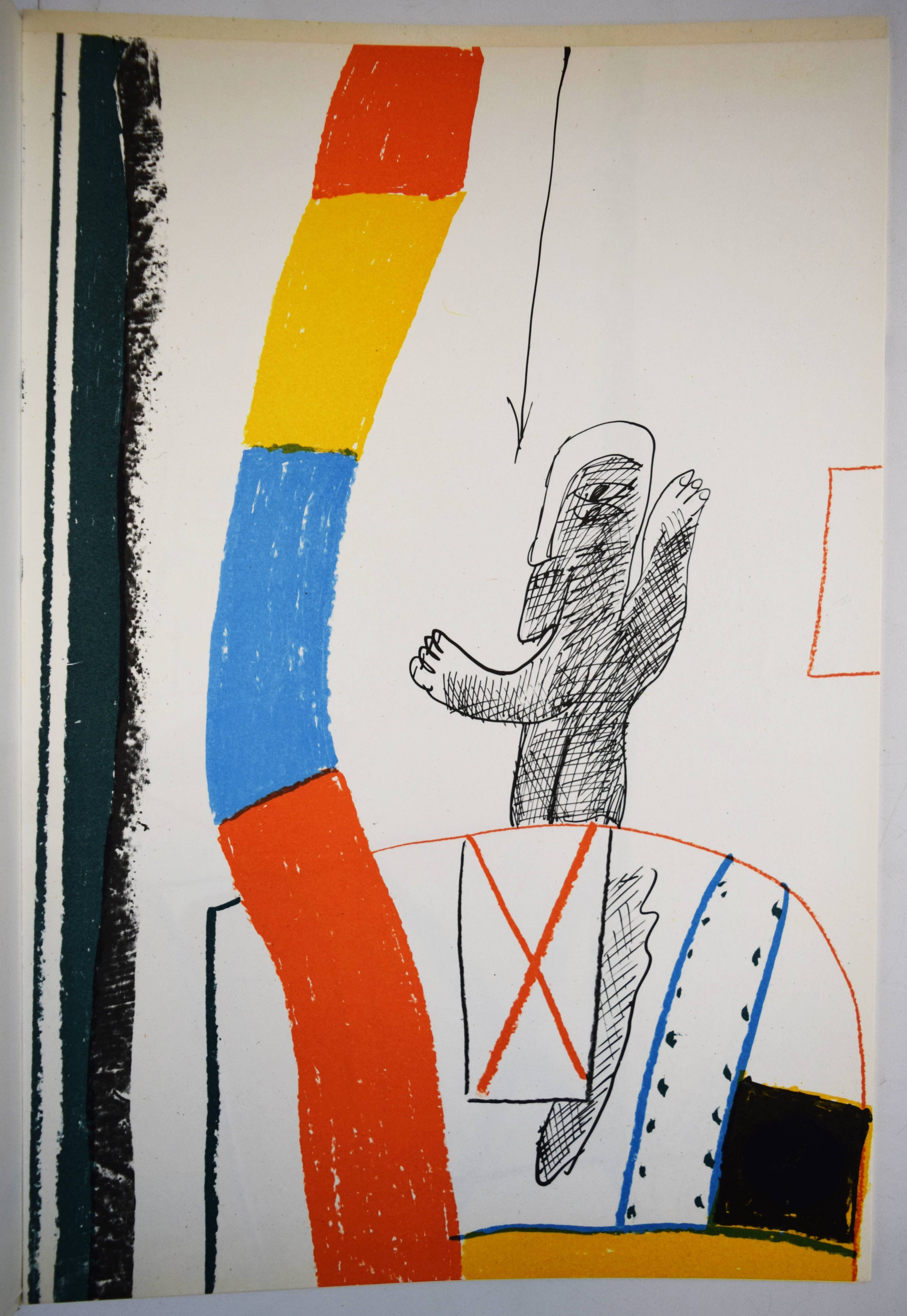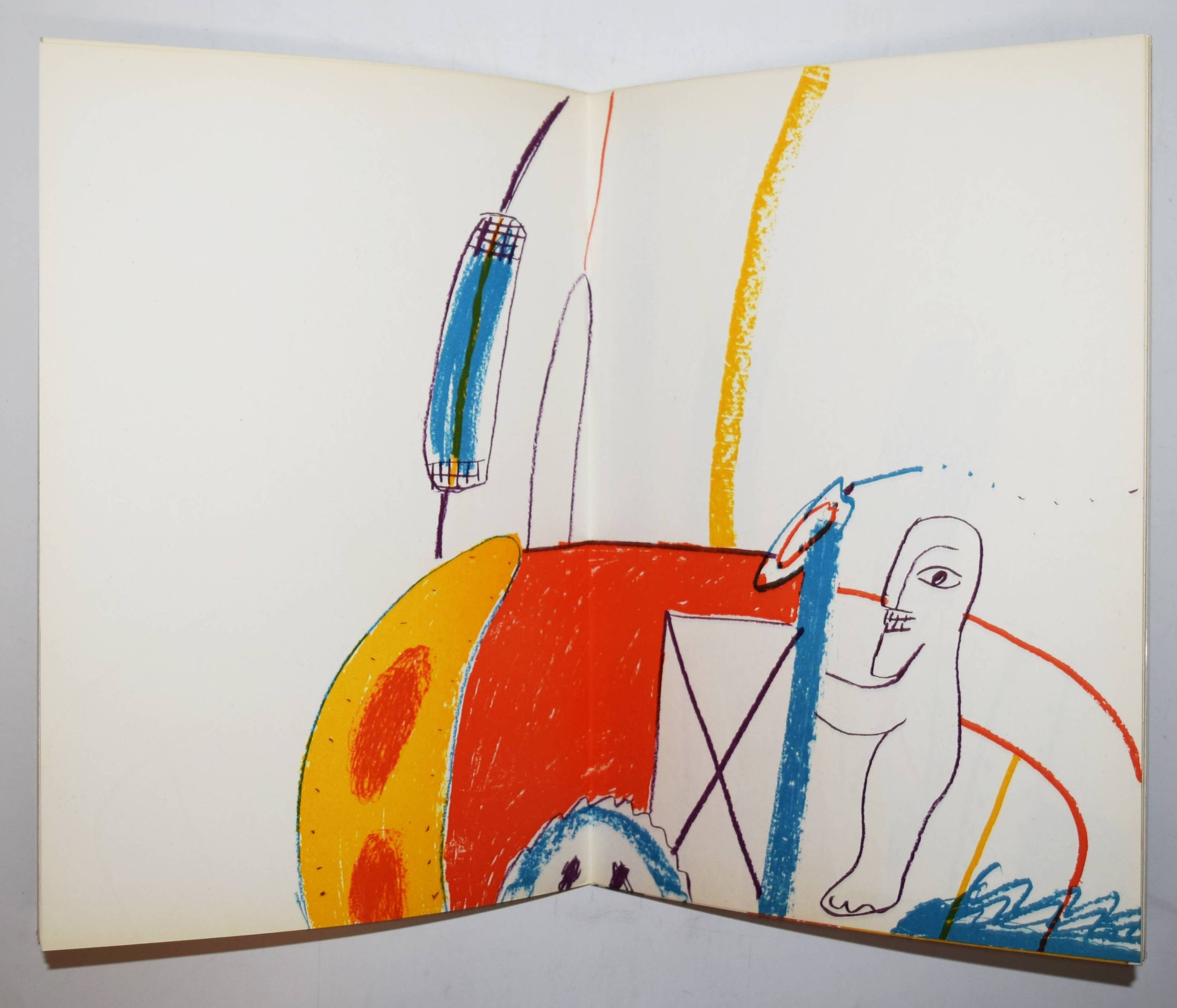 Antes, Horst. Geh durch den Spiegel. Bilder aus Florenz und Rom. Köln, Galerie Der Spiegel (1963). Folio (38 x 26 cm.). [22] S. mit 7 (4 doppelblattgr., 6 farbigen) Orig.-Lithographien, davon 1 auf dem Umschlag. Farbig illustr. Orig.-Kartonumschlag mit Klarsicht-Schutzumschlag. (Geh durch den Spiegel, Folge 36). Lutze 225-231. – Eines von 250 Exemplaren. – Mit einem Brief an Horst Antes von H.A.P. Grieshaber als Vorwort. – Horst Antes erhielt 1962 ein Stipendium für die Villa Romana in Florenz und 1963 für die Villa Massimo in Rom. „Die in Florenz und Rom entstandenen Bilder wurden im Mai 1963 in der Galerie Der Spiegel gezeigt und sind in diesem Katalog abgebildet. Die Platten zu den 7 Lithos wurden von Horst Antes in Rom gezeichnet und bei Eugen Natz in Karlsruhe gedruckt.“ – Der Klarsicht-Schutzumschlag mit Randläsuren, sonst sehr gut erhalten.