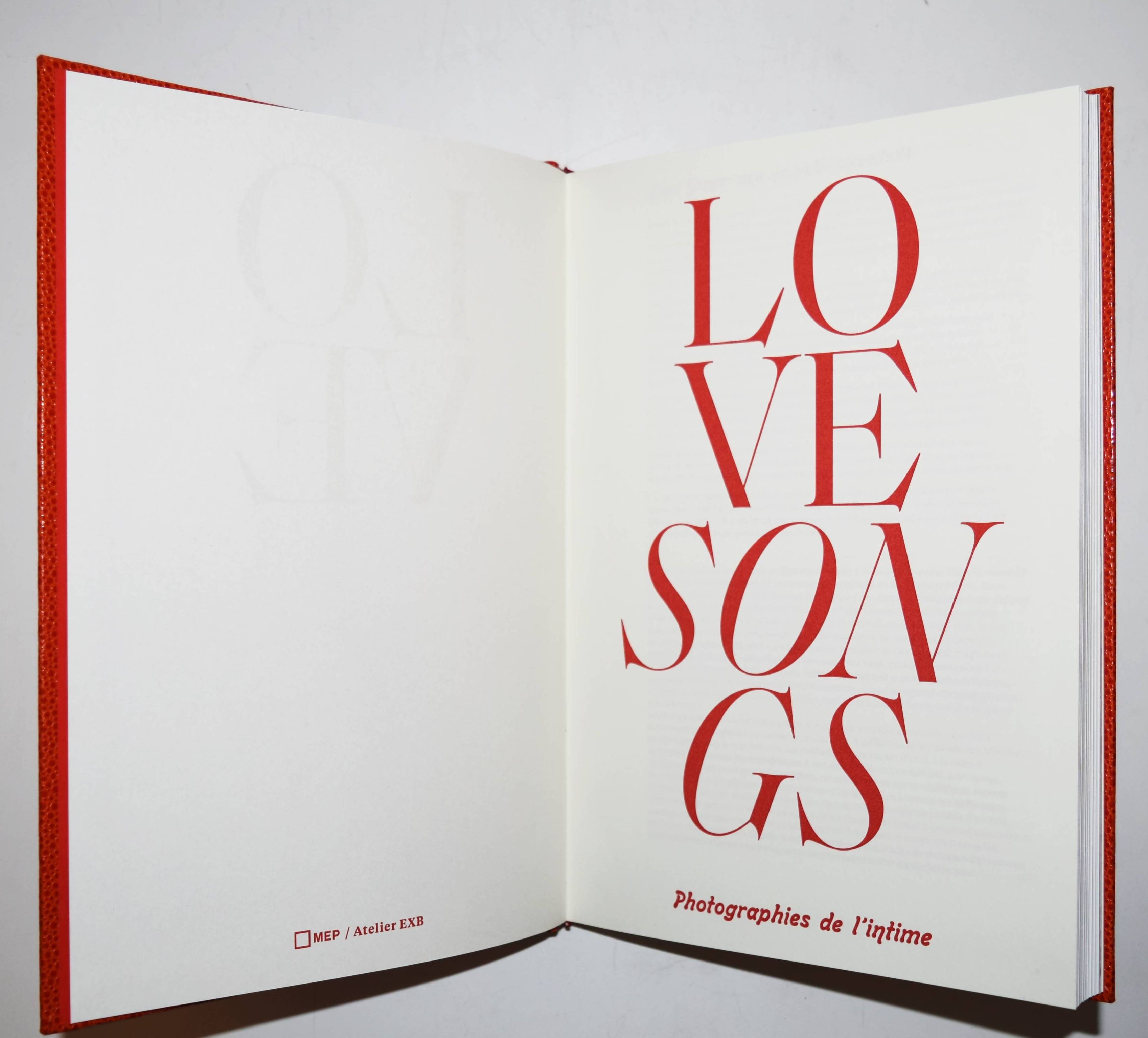 Alves, Jordan (Ed.). Love songs. Photographies de l’intime (par René Groebli, Emmet Gowin, Nobuyoshi Araki, Hervé Guibert, Alix Cléo Roubaud, Larry Clark, Nan Goldin, Sally Mann, J. H. Engström & Margot Wallard, Rong Rong & Inri, Hideka Tonomura, Leigh Ledare, Lin Zhipeng alias No 223, Collier Schorr, Motoyuki Daifu, Karla Hiraldo Voleau). Paris, Atelier EXB (2022). 4° (28 x 20 cm.). 221, (3) p. avec de nombreuses illustrations sur des planches en duetone et en couleur. Couverture en similicuir de l’éditeur. Catalogue de l’exposition à la Maison Européenne de la Photographie (MEP, Paris). Textes par Simon Baker, Frédérique Dolivet, Pascal Hoël, Laurie Hurwitz et Clothilde Morette. – „A sentimental journey in photography (of the nude 1950-2021).“ (Simon Baker).