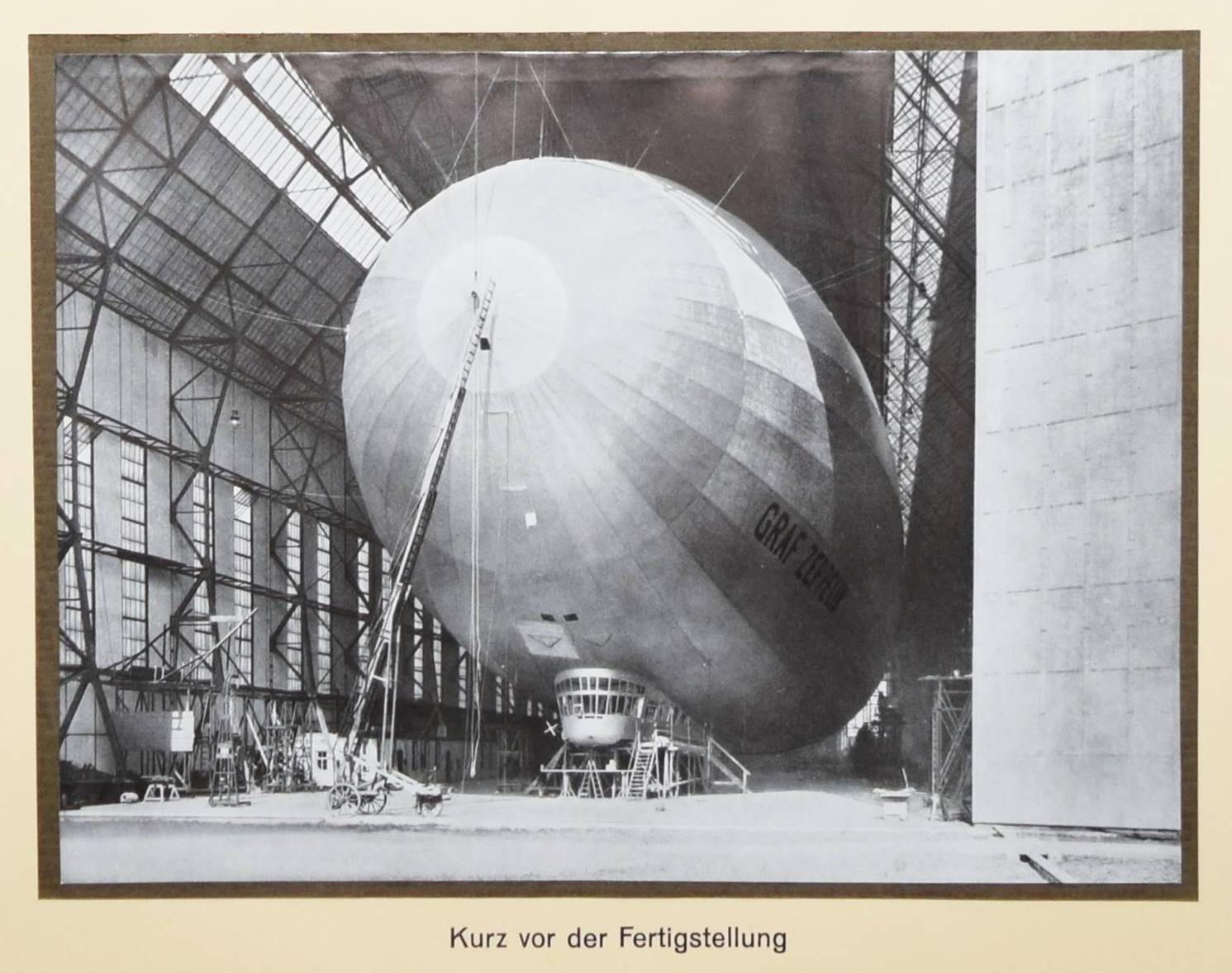 Zeppelin – Das Luftschiff LZ 127 „Graf Zeppelin“. 15 Bilder vom Bau des Luftschiffes nach Originalaufnahmen. Friedrichshafen, Luftschiffbau Zeppelin G.m.b.H. o. J. (1928). Quer-4° (25 x 33 cm.). Portfolio, [1] Bl. (techn. Daten) und 15 mont. Tafeln. Orig.-Halbleinen-Fügelmappe mit Deckeltitel. Nicht bei Heidtmann 12415 ff. – Einzige Ausgabe, selten. – „LZ 127 „Graf Zeppelin“ (Kennzeichen D-LZ127) war ein Starrluftschiff aus der Reihe der Zeppeline und gilt als das erfolgreichste Verkehrsluftschiff seiner Zeit. Es wurde am 18. September 1928 nach 21-monatiger Bauzeit in Dienst gestellt. Ursprünglich als Versuchsschiff gebaut, erwies sich LZ 127 als so zuverlässig, dass es bald durch zahlreiche spektakuläre Fahrten, wie die 20-tägige „Weltfahrt“ und die „Polarfahrt“, berühmt wurde und über mehrere Jahre einen regelmäßigen Transatlantikverkehr aufrechterhielt. Unmittelbar nach der Hindenburg-Katastrophe wurde der Zeppelin im Mai 1937 außer Dienst gestellt und 1940 verschrottet“ (Wikipedia).– Sehr schönes sauberes Exemplar.