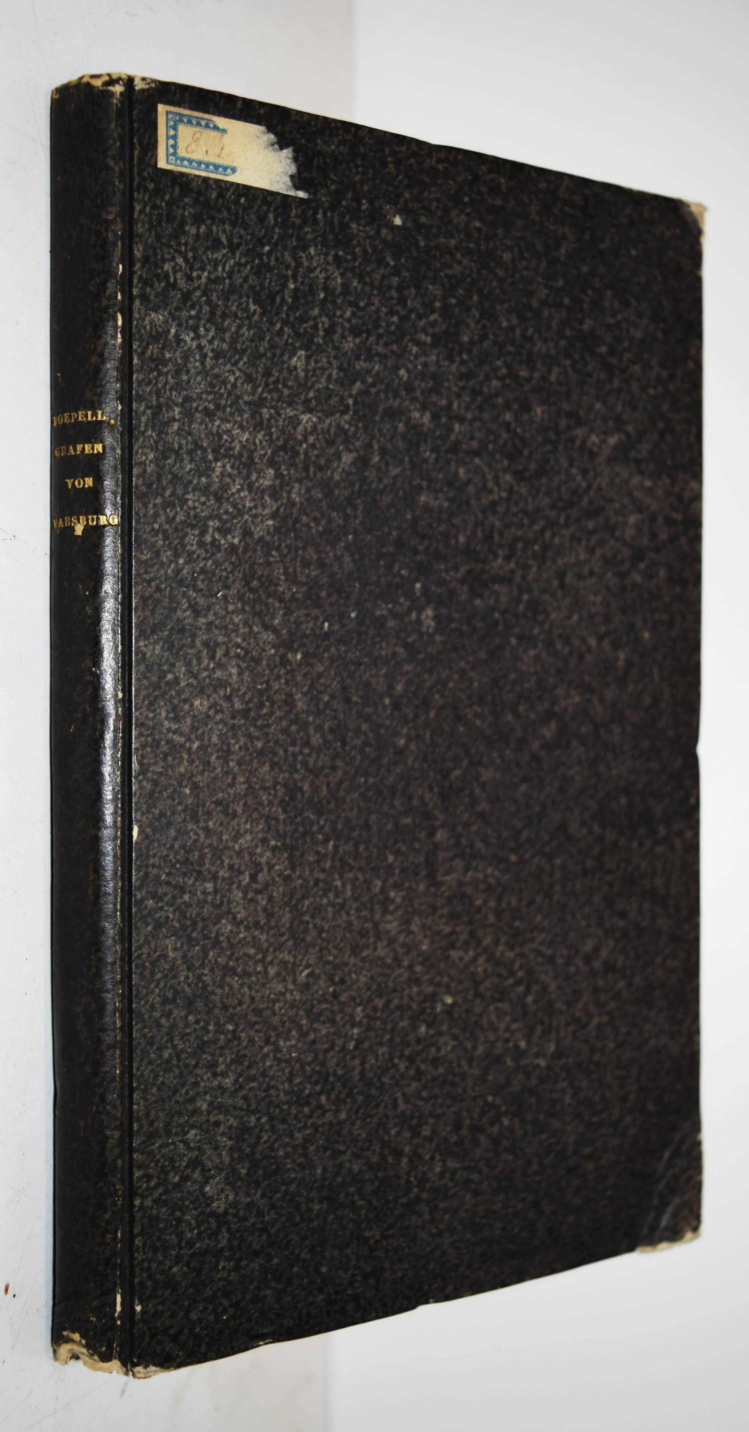 Roepell, Richard. Die Grafen von Habsburg. Eine von der Universität zu Halle gekrönte Abhandlung über Genealogie und Besitzungen dieses Geschlechts bis zur Thronbesteigung Rudolfs im J. 1273. Halle, C. A. Schwetschke und Sohn 1832. 8°. 136 S. mit 1 gefalteten Stamm-Tafel. Pappband der Zeit mit goldgepr. Rückentitel. ADB LIII, 464 ff. GV 119, 143. – Erste Ausgabe, selten. – R. Roepell (1808-1893) war über 50 Jahre lang Professor für Geschichte an der Universität Breslau und wurde anlässlich „seiner 50jährigen Breslauer Universitätslehrthätigkeit zum Geheimen Regierungsrat ernannt. Außerdem wurde seine Büste, ein Geschenk seiner Universitätscollegen, im Provinzialmuseum aufgestellt und eine „Roepellstiftung“ zur Unterstützung von Studirenden gegründet.“ (H. Hahn in ADB). – Kanten etwas berieben und bestoßen, sehr gutes Exemplar.