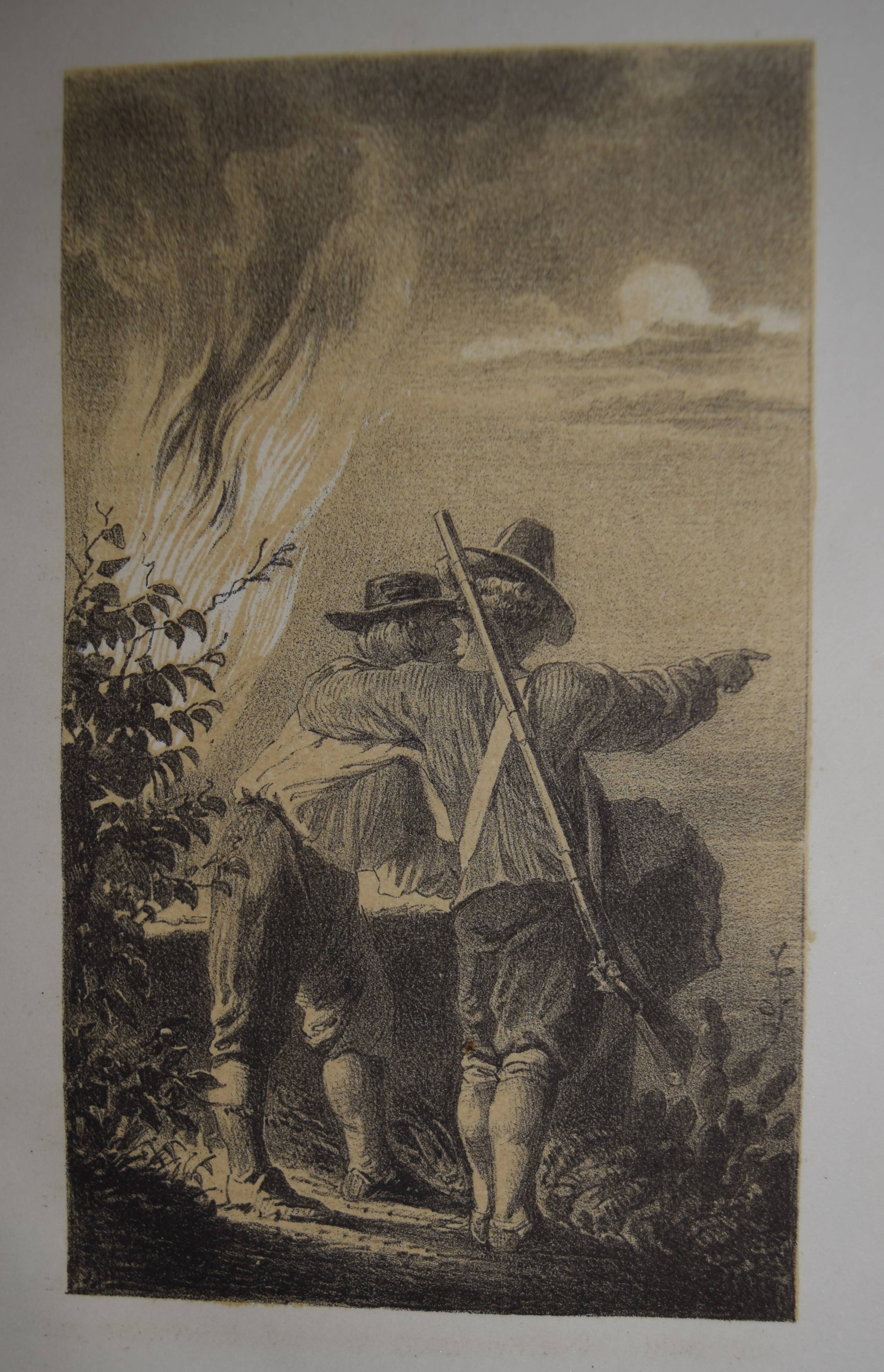 Robinsonade – Hildebrandt, C. Robinson’s Kolonie. Fortsetzung von Campe’s Robinson. Ein unterhaltendes Lesebuch für Kinder. 6. Aufl. Glogau, Flemming o. J. (ca. 1865). Kl.-8°. 2 Bl., 252 S. mit 6 lithogr. Tafeln mit Tonplatte. Lithogr. illustr. OPbd. Hauswedell 1068. Klotz 2673/11. Vgl. Gumuchian 4896. Hobrecker, Braunschweig 3336. Seebaß I, 1605. Ullrich 83 f., C. Wegehaupt I, 933 a u. III, 1528 f. – Zweite Auflage mit den schönen Lithographien. – Unteren Ecken des Vorderdeckels etwas wasserfl., Papierbezug an den Gelenken mit kl. Fehlstellen, stellenw. leicht stockfl. u. gebräunt, gutes Exemplar.