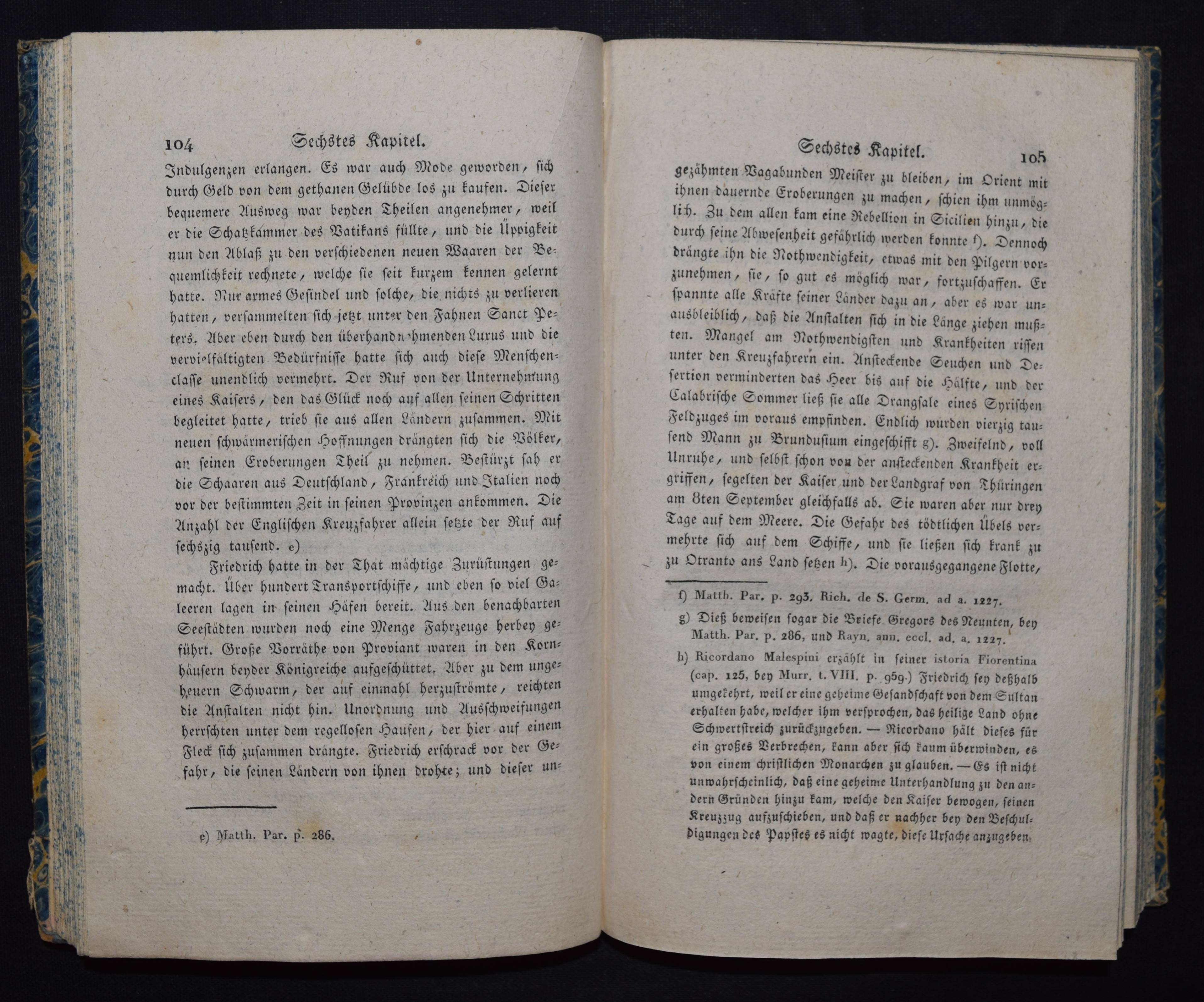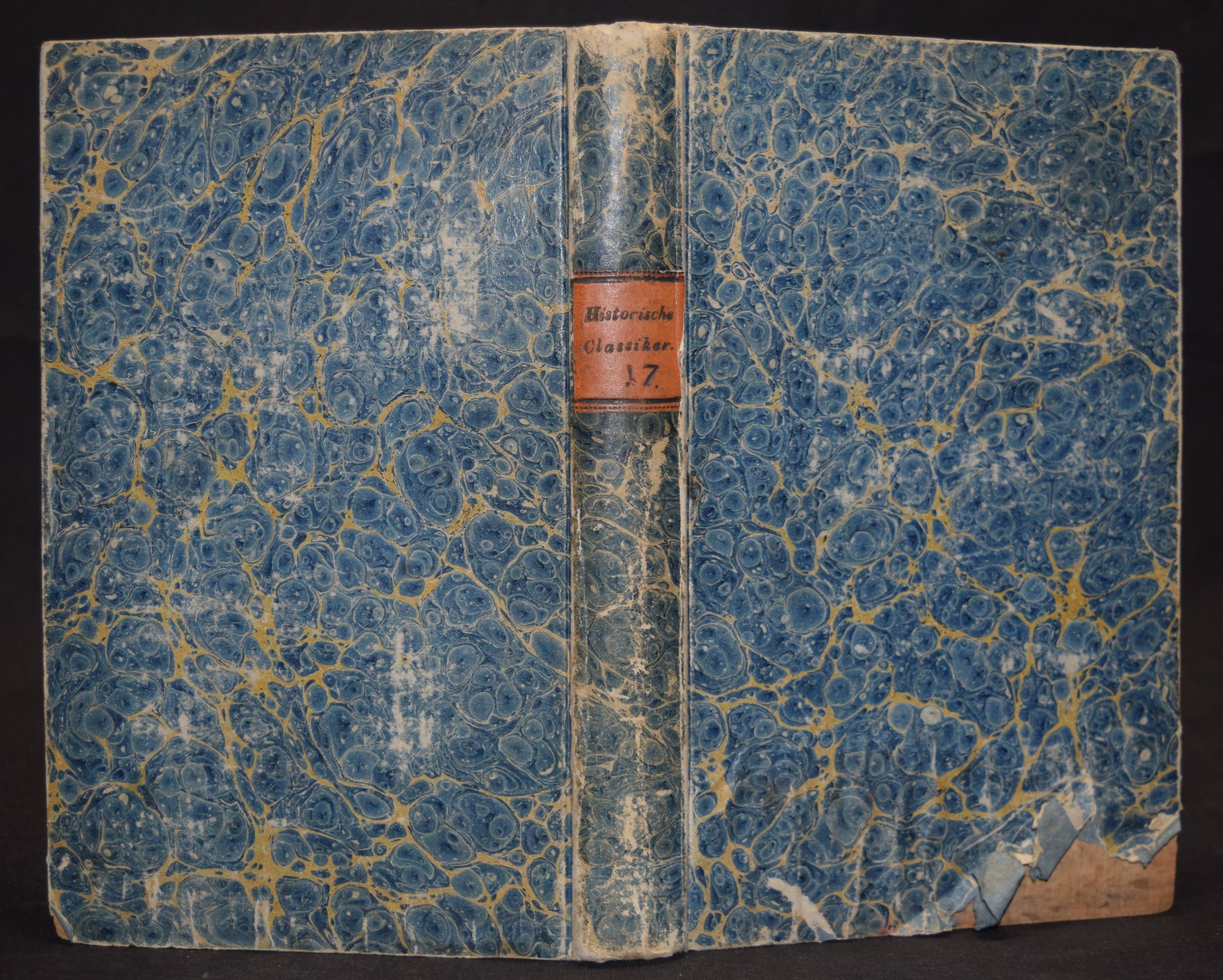 Geschichte Kaiser Friedrich des Zweyten. Nach der neuesten Ausgabe. Wien, Härter 1817. 8°. XVI, 351 S. Pb. der Zeit. (Bibliothek historischer Classiker aller Nationen, Band 17). Einband stärker berieben, an der Stehkante wasserrandig und mit Fehlstelle am vorderen Deckel, stellenweise leicht stocklfleckig.