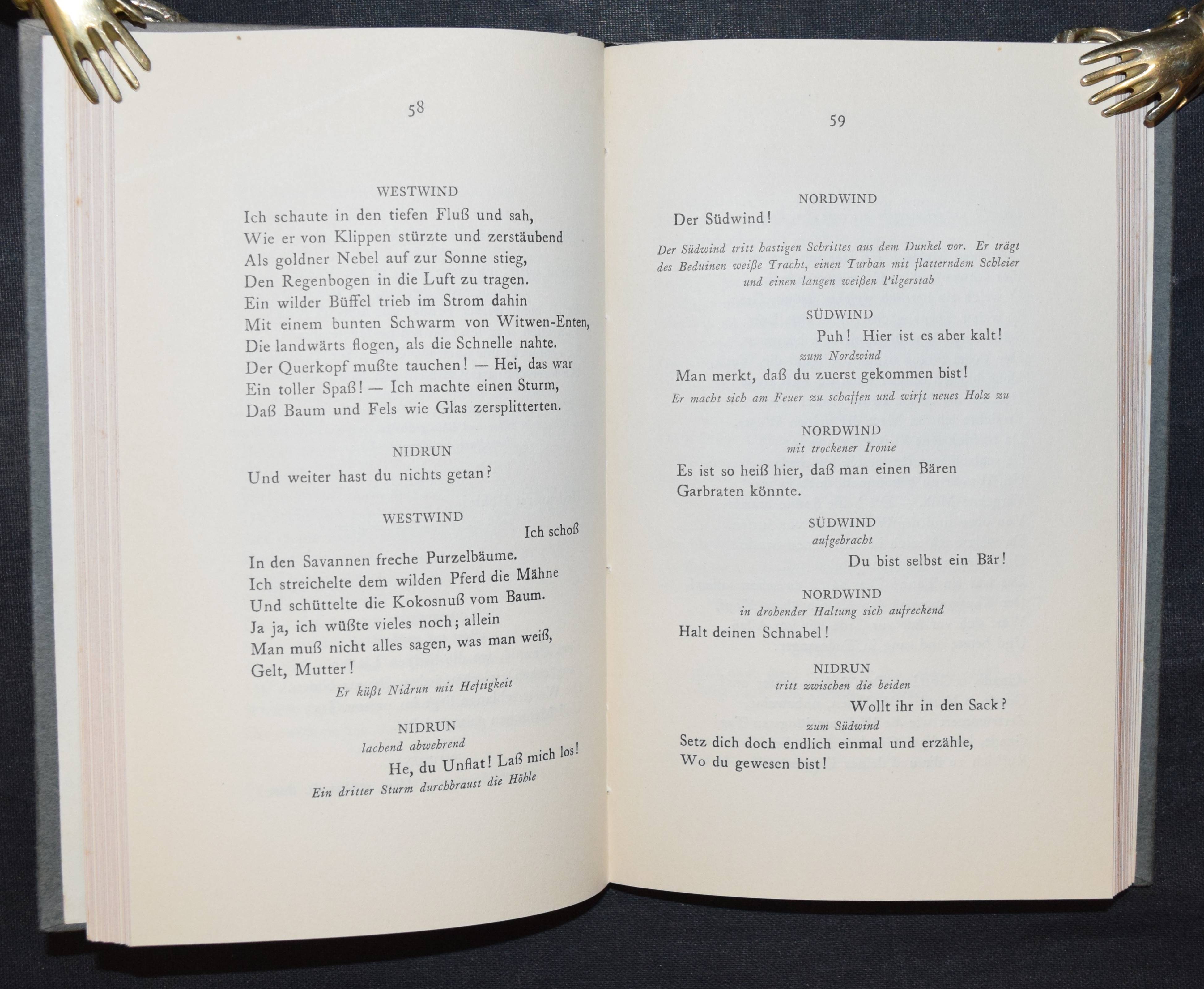 Reinhart, Hans. Gesammelte Dichtungen. 1898 bis 1922. 4 Bände. Erlenbach-Zürich, Leipzig, Rotapfel-Verlag 1921-1923. 8°. OHprgt. Erste Gesamtausgabe. – Schönes Exemplar.