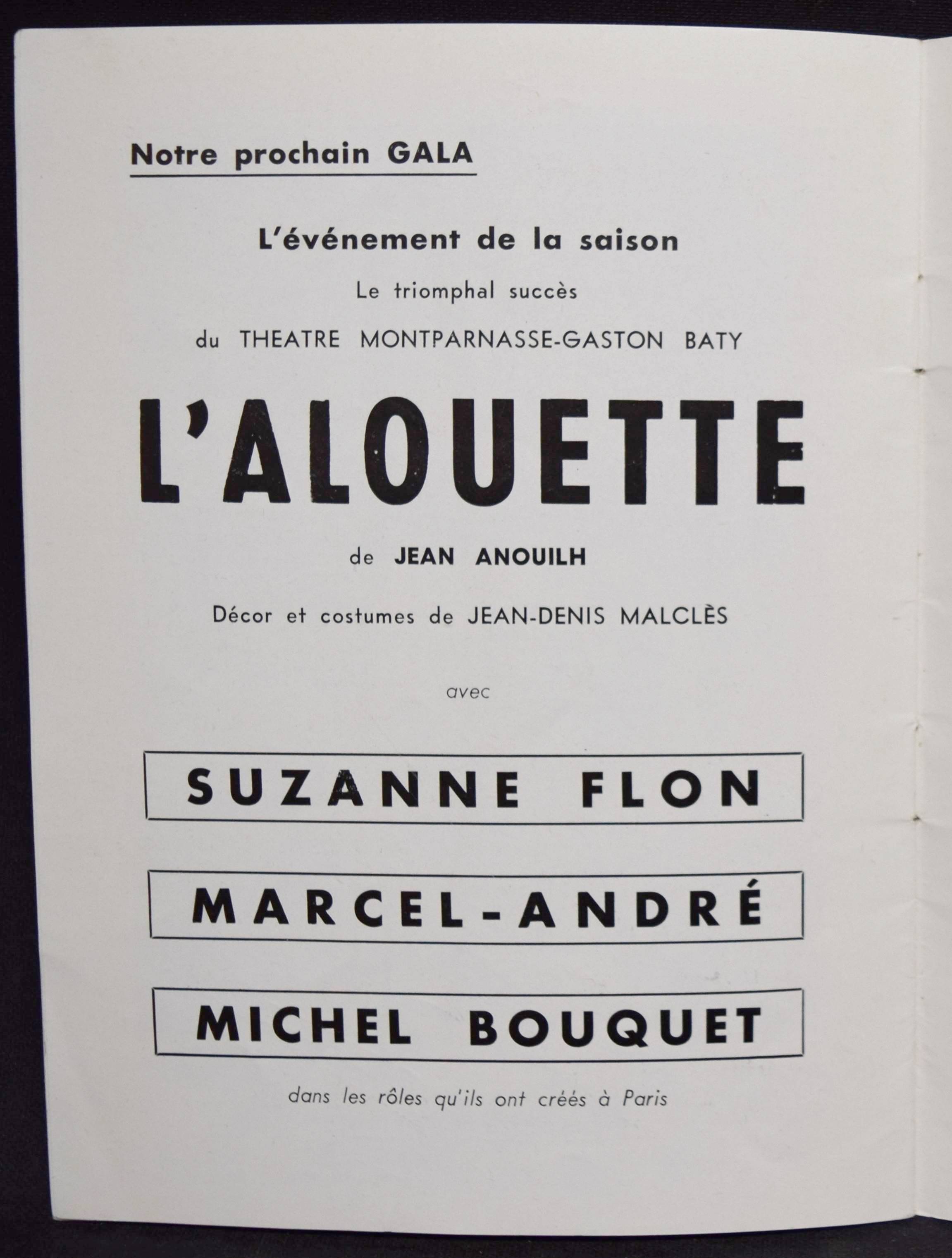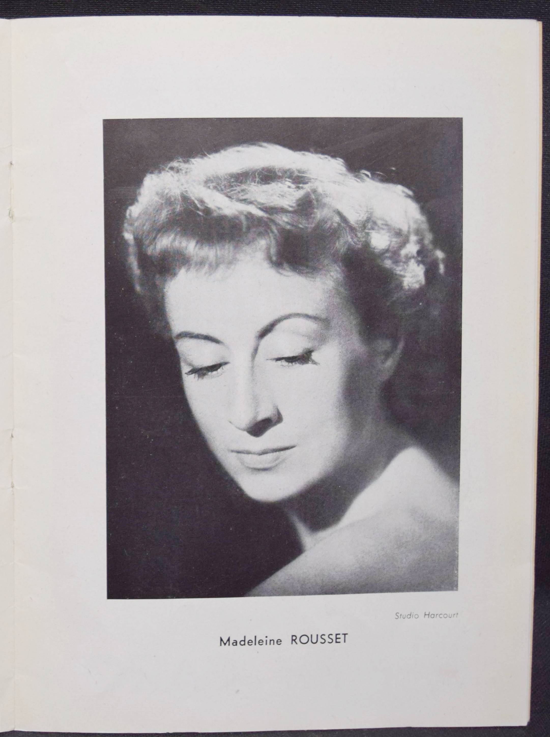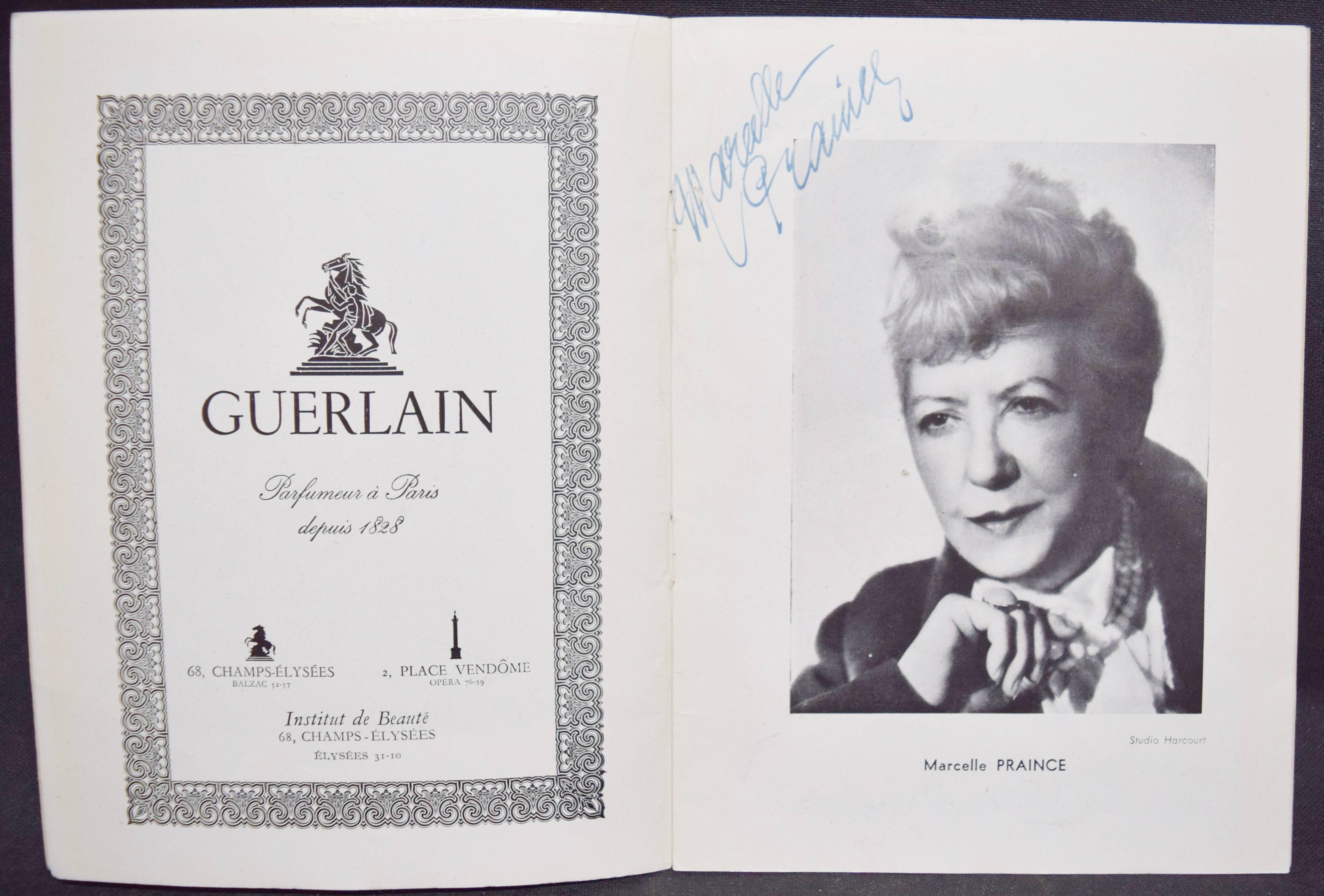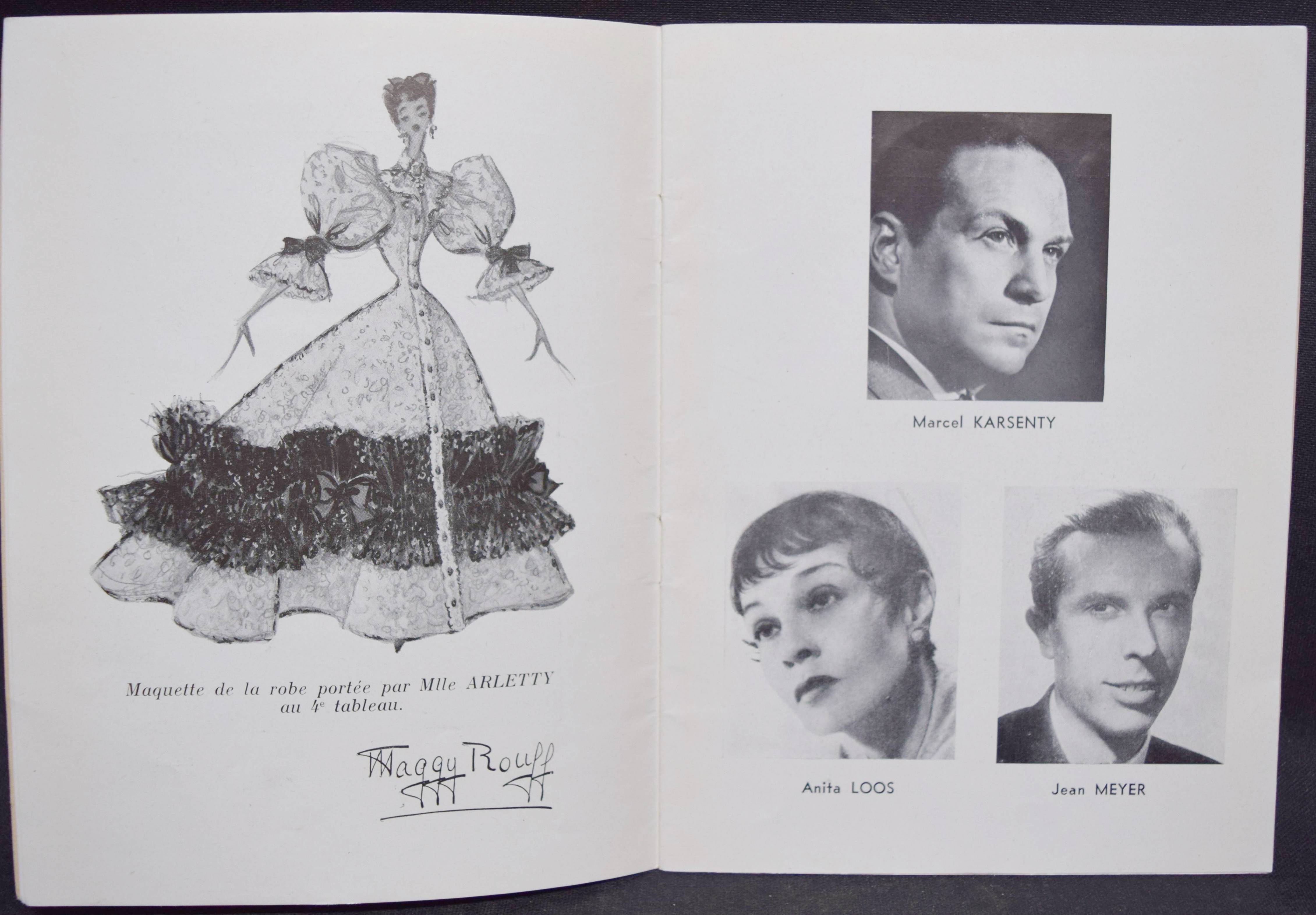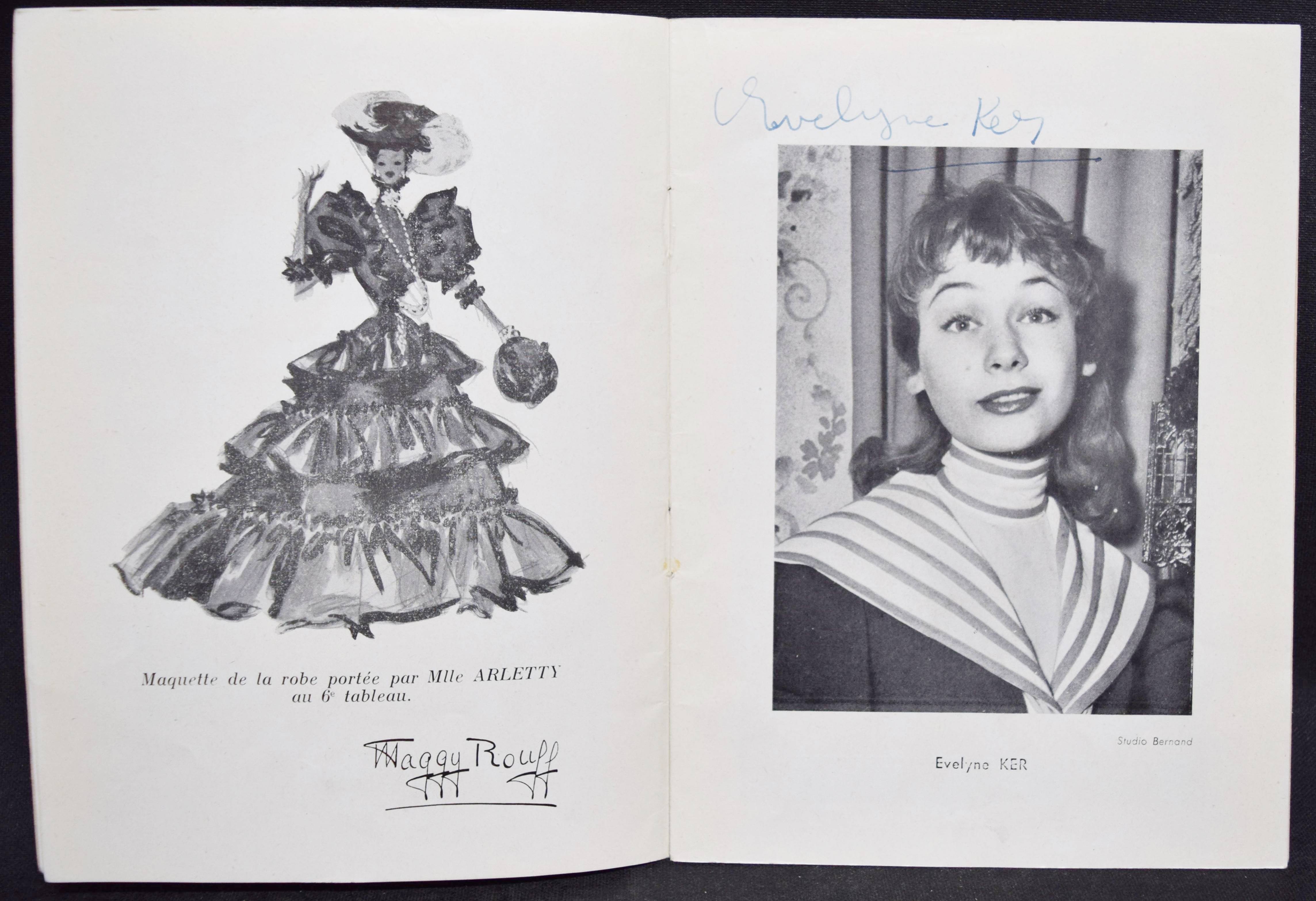 Colette, (Sidonie-Gabrielle Claudine), (Préface). Galas Karsenty. Saison 1954-1955. (Programme de Théatre). (Paris, 1954). 8°. 12 unbez. Bl. mit zahlr. Porträts u. Werbeanzeigen. OKart. Programm-Heft des Theaters unter der Leitung von Marcel Karsenty. – Mit eigenhändigen Signaturen der Schauspieler: Arletty (eig. Léonie Bathiat), Evelyne Ker, Marcelle Praince und Michel Gatineau (eigenh. Widmung). – Gutes Exemplar.