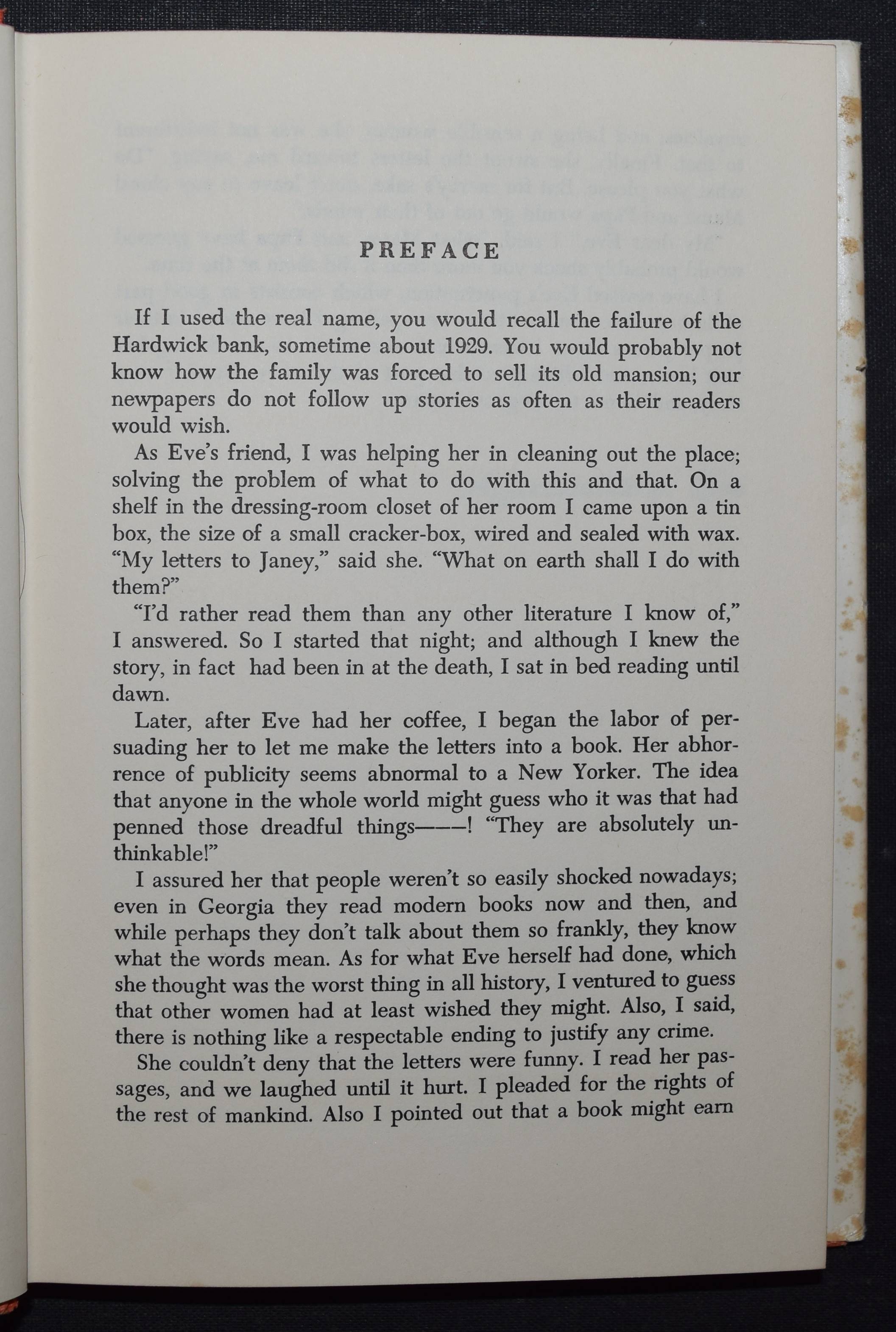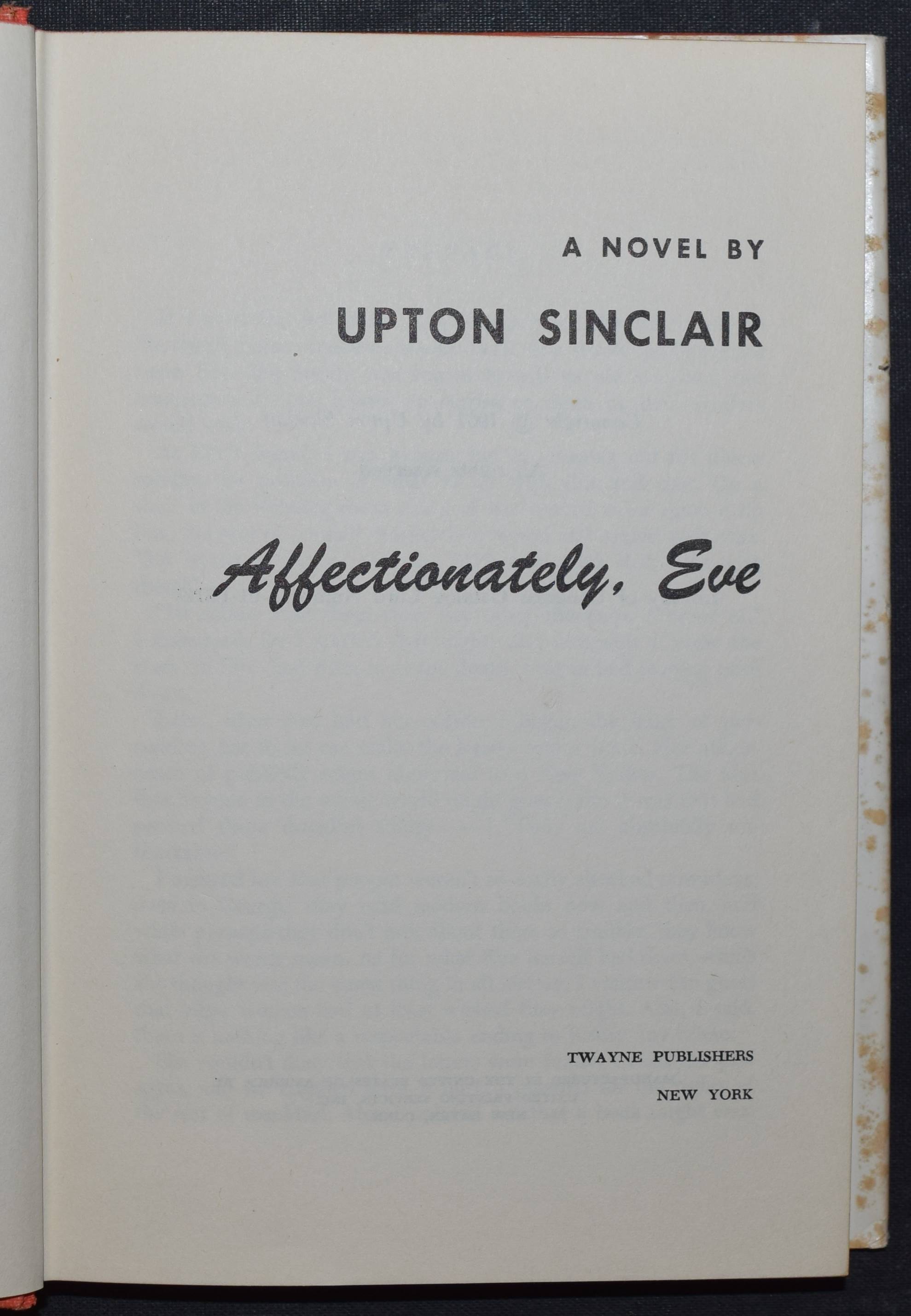 Sinclair, Upton. Affectionately, Eve. A novel. New York, Twayne 1961. 8°. 215 p. Publishers red cloth in illustr. dust jacket. First edition. – Dustjacket with little tears and slightly rubbed, very good copy.