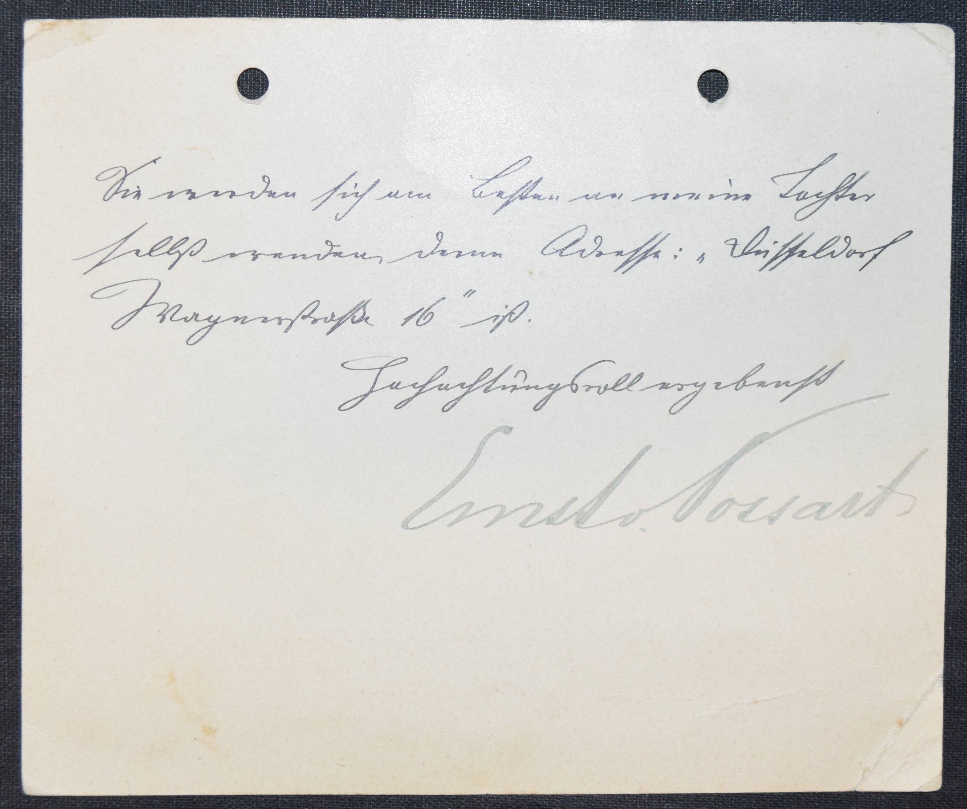 Possart, Ritter Ernst Heinrich v. (1841-1921, deutscher Schauspieler, Regisseur und Intendant). Eigenhändige Briefkarte. München 10. 2. 1905. 8°. 2 S. Karte mit lithogr. Wappen und Adresse „Der Intendant der Königl. Bayer. Hoftheater und des Prinzregenten-Theaters“. – „P. absolvierte zunächst eine Buchhändlerlehre und ließ sich danach bei Wilhelm Kaiser (1813–92) zum Schaupieler ausbilden. 1861 debütierte er in Breslau als Siegfried von Mörner im „Prinzen von Homburg“; Engagements in Bern und Hamburg folgten. Sein fulminanter Auftritt 1864 als Franz Moor in Schillers „Räubern“ markierte den Beginn einer steilen Karriere in München, wo er seit 1872 auch als Regisseur tätig wurde; bald stieg er zum Oberregisseur, 1878 zum Schauspieldirektor auf. Nach Verpflichtungen am Lessingtheater in Berlin und zahlreichen Gastspielreisen wieder in München, wurde er hier 1893 zum Generaldirektor und Intendanten der Kgl. Hoftheater ernannt (Ruhestand 1905). … P.s Mozart-Zyklus an der Hofoper, mit dem er den Versuch verband, die originale Gestalt der Bühnenwerke zu rekonstruieren, ging in die Operngeschichte ein. Zu seinen besonderen Leistungen zählt ferner der Bau des Prinzregententheaters 1900/01 nach Plänen von Max Littmann (1862–1931), dessen Errichtung indes bereits P.s Vorgänger Karl v. Perfall (1824–1907) angeregt hatte. Die seit 1901 dort beheimateten Wagner-Festspiele, die sich aus den regelmäßigen Aufführungen des „Ringes“ in München entwickelt hatten, traten allmählich mit den Bayreuther Festspielen in Konkurrenz. P., musikalisch begabt und ein guter Geiger, verdankte als Schauspieler der Melodik seines Tonfalls seine besondere Ausstrahlung. In Rollen wie Nathan, Richard III., Hamlet, Shylock, Jago und Mephisto erwarb er sich den Ruf eines Charakterdarstellers par excellence. … Sein Vortrag des ihm gewidmeten Werkes „Enoch Arden“ begleitete 1897 bei der Uraufführung in München wie auch in zahlreichen anderen Städten, u. a. 1902 in London, Richard Strauss selbst am Klavier“ (C. Jost in NDB XX, 654). – Im oberen Rand gelocht, 2 Ecken mit Knickspuren, sonst gut erhalten.
