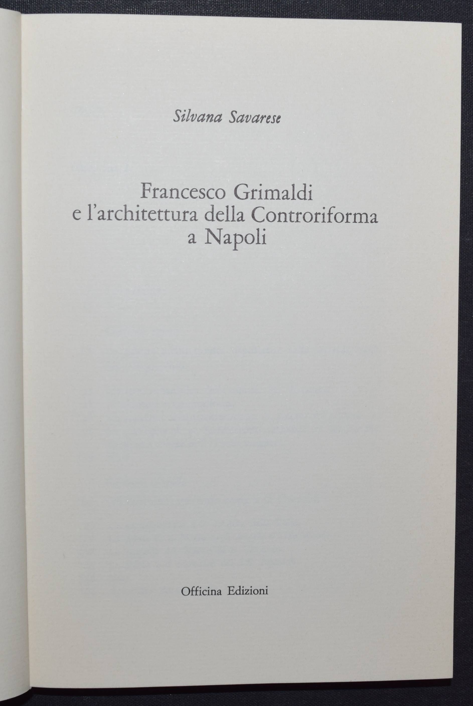 Savarese, Silvana. Francesco Grimaldi e l’architettura della Controriforma a Napoli. Roma, Officina Ed. 1986. 8°. 214 S., 48 Bl. mit zahlr. Abb. OKart. (Officina 1). Sehr gutes Exemplar.