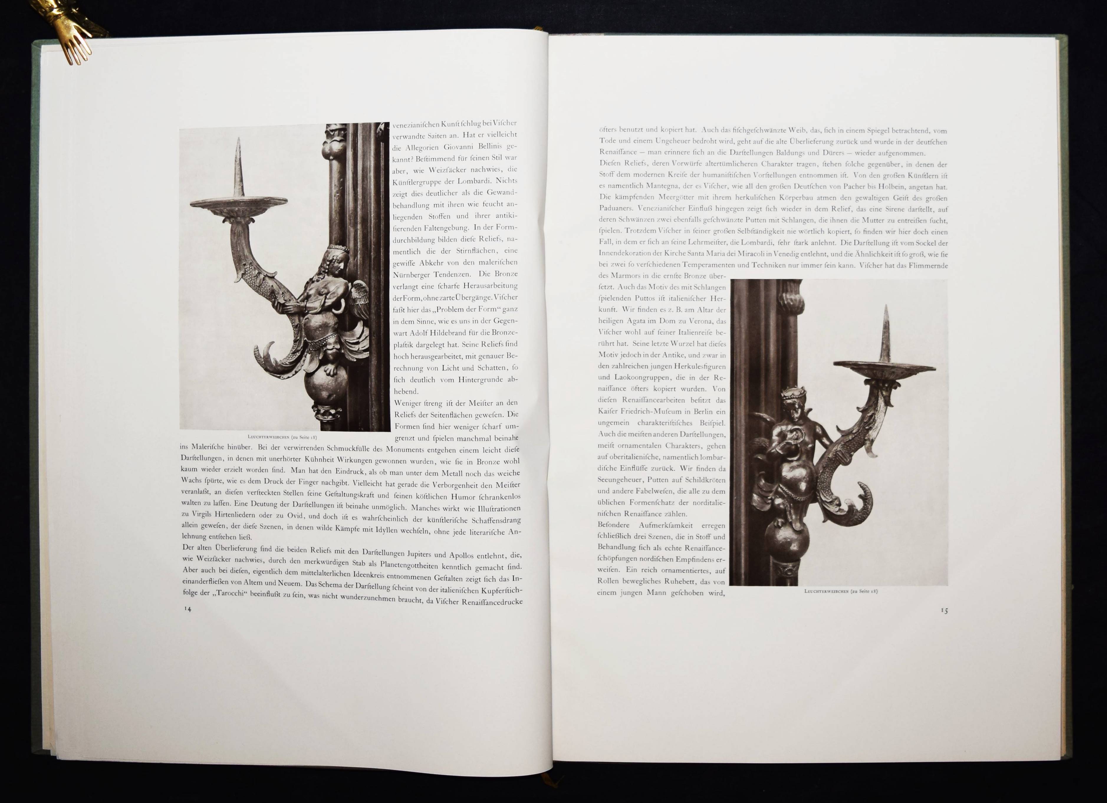Mayer, Alexander (Hrsg.). Die Genreplastik an Peter Vischers Sebaldusgrab. Leipzig, Insel-Verlag 1911. Folio. Mit 42 Textabbildungen und 31 Tafeln in Lichtdruck. OHln. mit goldgepr. Rückentitel. (Jahresgabe des Deutschen Vereines für Kunstwissenschaft, 1911). Aus dem Besitz des Kunsthistorikers Richard Hamann mit dessen eigenhändiger und dat. Signatur auf dem Titelblatt. – Kapital stärker best., sonst gut erhalten.