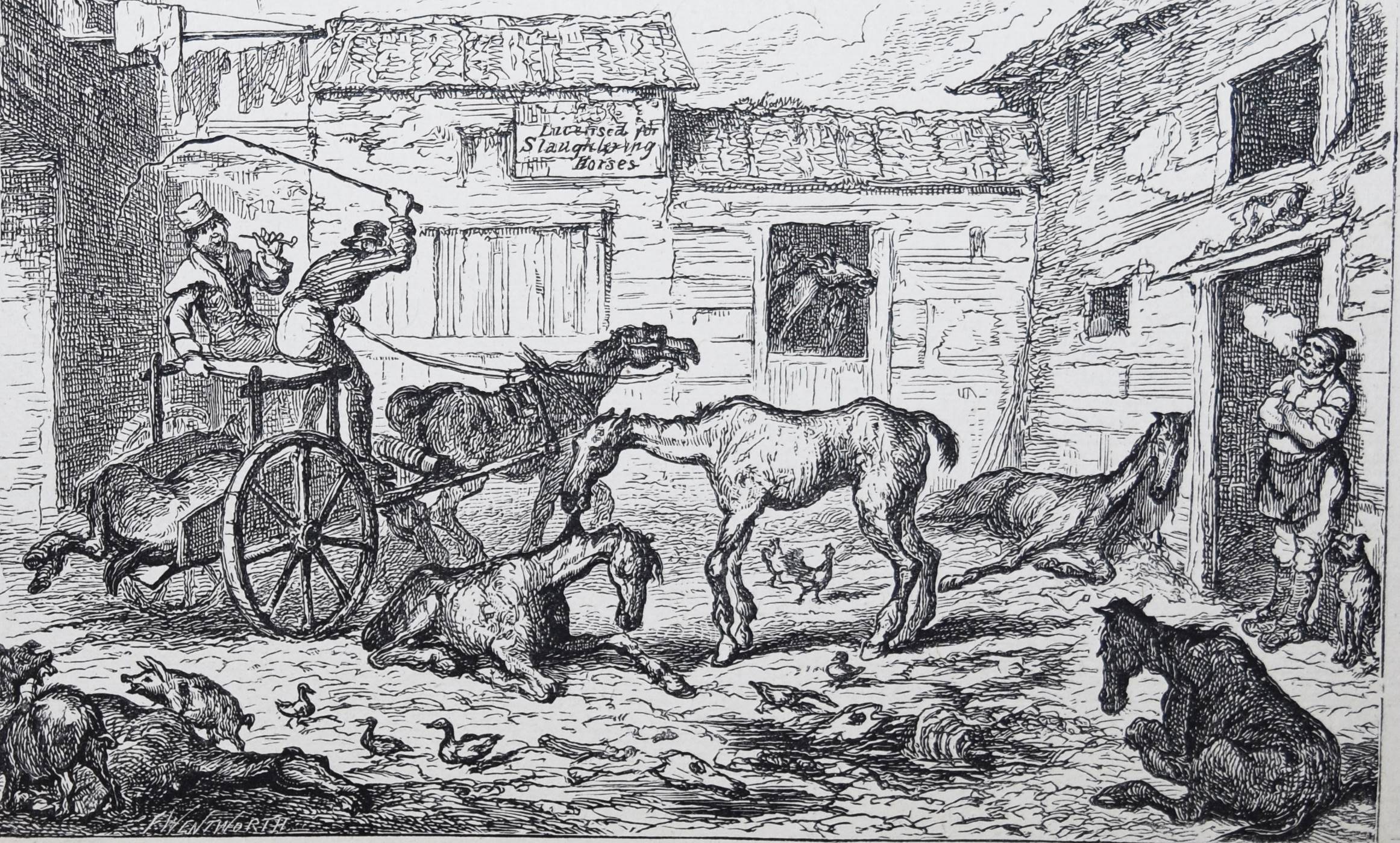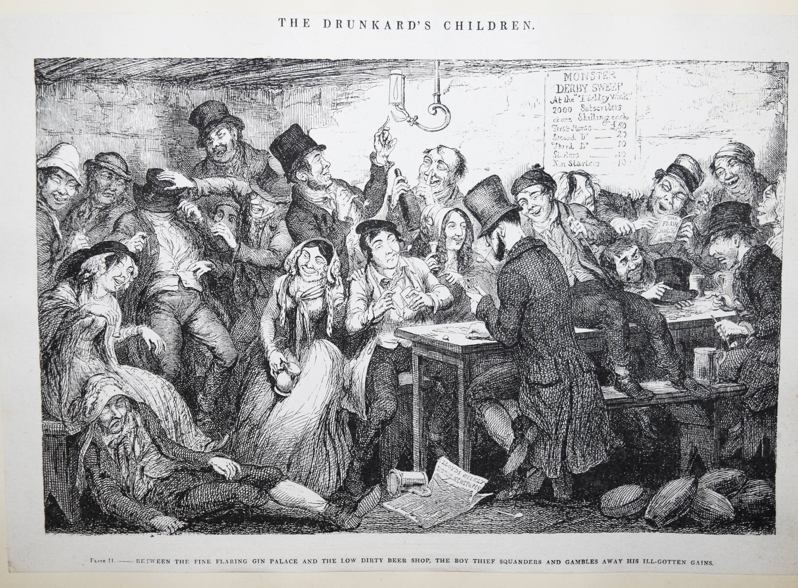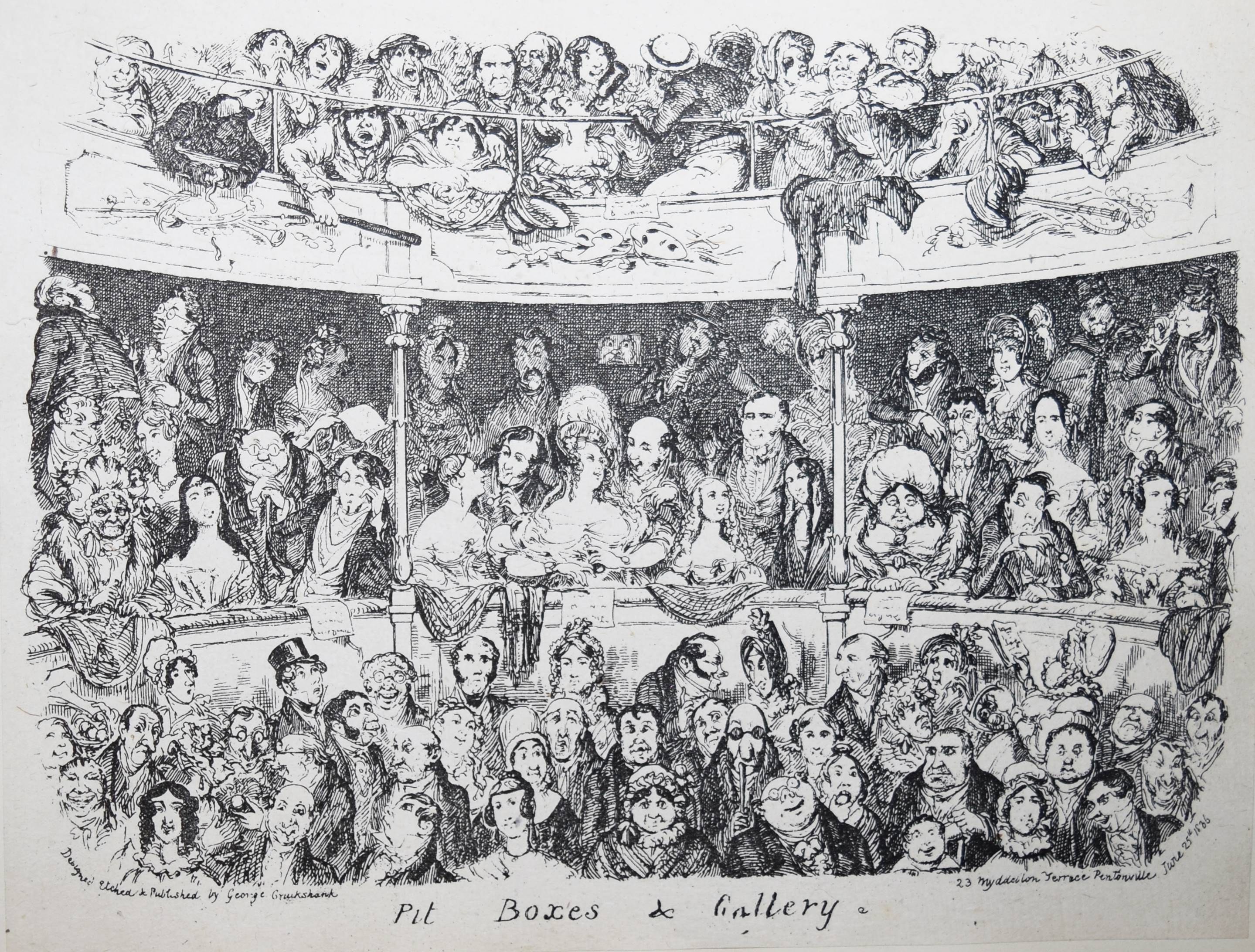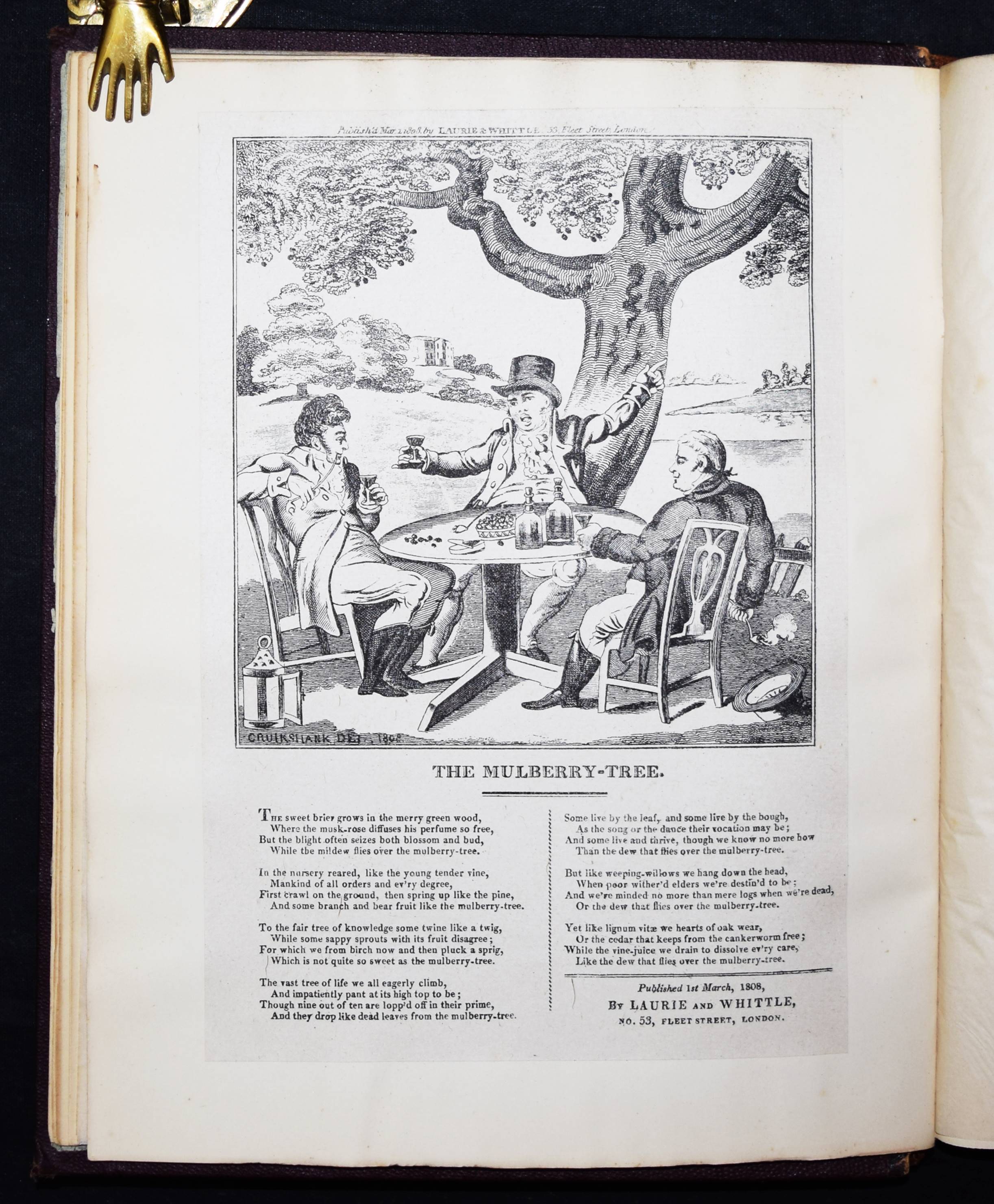 Cruikshank – Bates, William. George Cruikshank. The artist, the humourist, and the man, with some account of his brother Robert. A critico-bibliographical essay. 2. Edition. Revised and augmented by acopiously annotated bibliographical appendix. London, Birmingham, Houghton and Hammond 1879. 4°. Gestoch. Frontispiz, 94 S. mit zahlr. teils mont. Abb. OLdr. mit goldgepr. Deckeltitel u. goldgepr. Deckelillustration. Rücken mit Leder fachgerecht erneuert, wenige Seiten geringf. stockfl.u. im Rand angestaubt, gutes Exemplar.