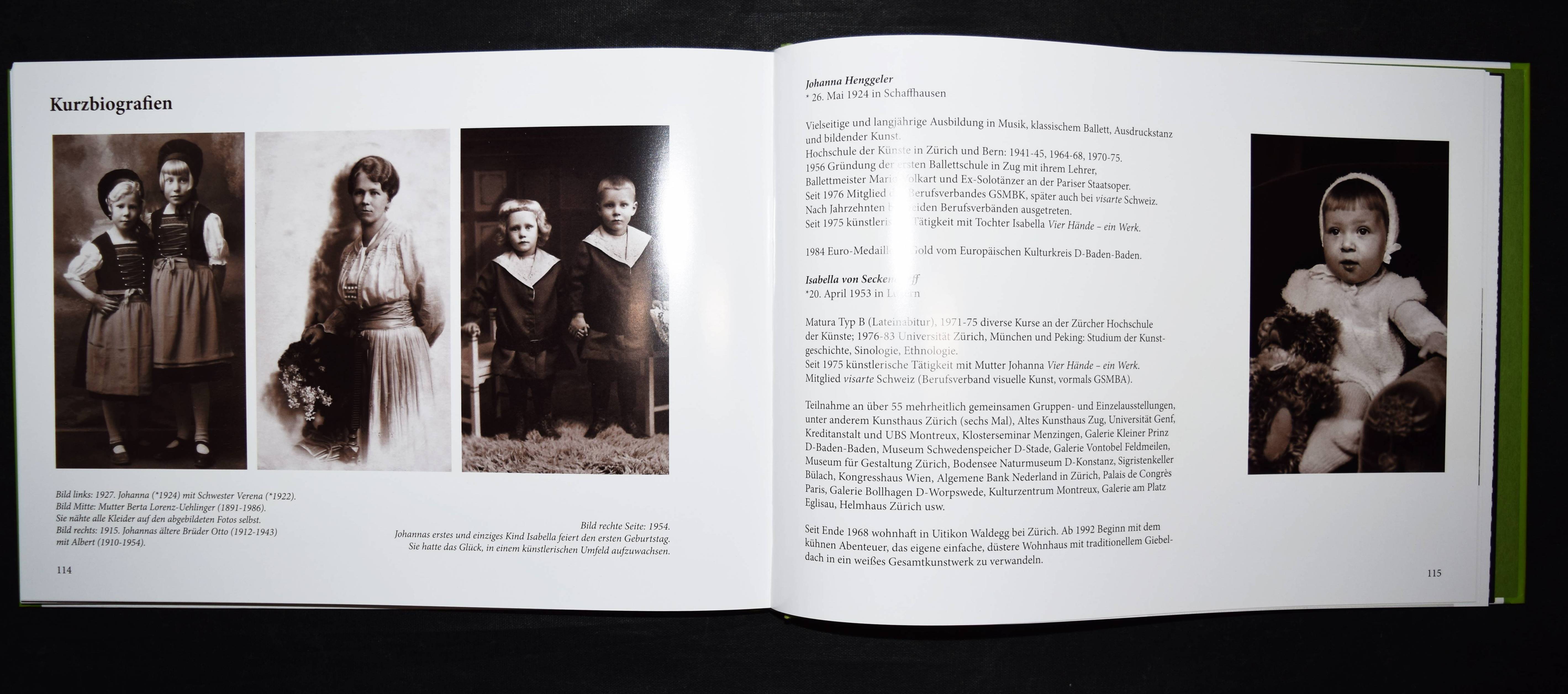 Groebli, Renè u. Isabella v. Seckendorff. Vier Hände – ein Werk. Ein Künstlerduo: Mutter & Tochter. Uitikon, Waldegg, Zürich, Verlag Art-Museum 2016. Quer-8°. 128 S. mit zahlr. teils farb. Abb. Illustr. OHln. Von Isabella Seckendorff und René Groebli auf dem vord. Vorsatz signiert. – Sehr gutes Exemplar.
