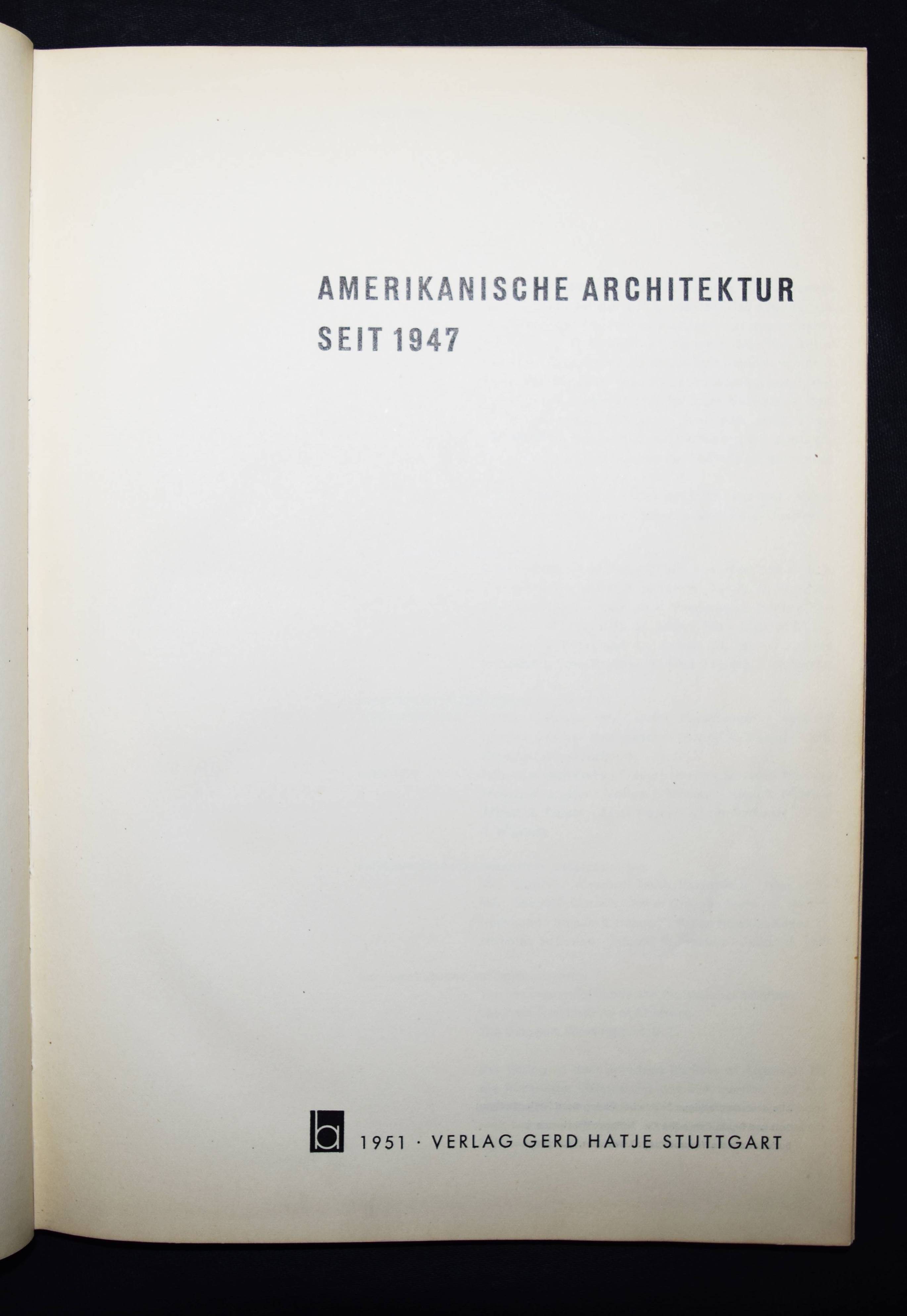 Amerikanische Architektur seit 1947. Stuttgart, Hatje 1951. 4°. 140 S. mit zahlr. Abb. u. Grundrissen. OLn. mit Rücken- u. Deckeltitel. Einband etwas fl., sonst gutes Exemplar.