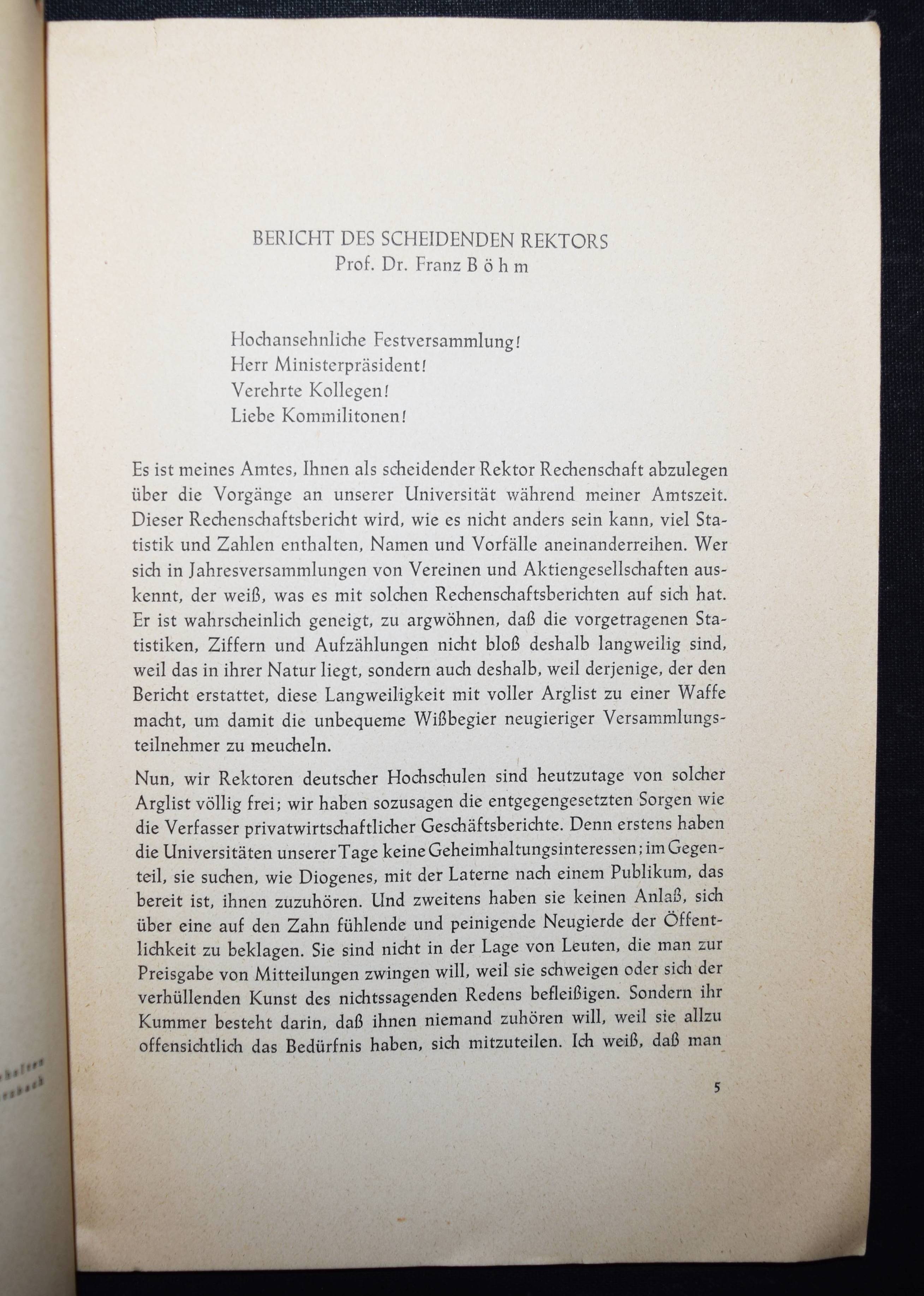 Böhm, Bericht des scheidenden Rektors Franz Böhm bei der Rektoratsübergabe
