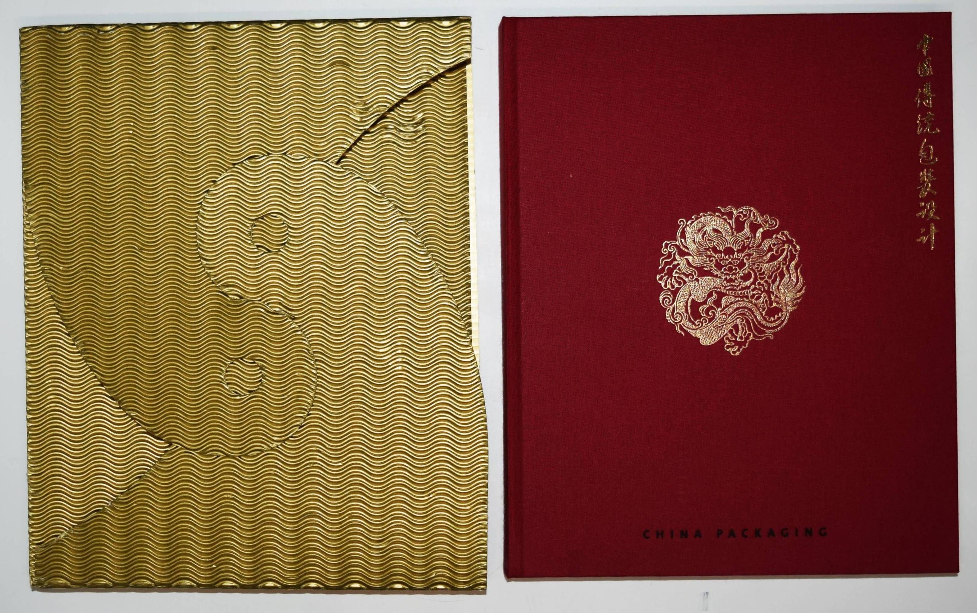 Rommel, Christian. China packaging. Im Reich des Goldenen Drachen – the empire of the golden dragon. 1. Auflage. s.l., Eigenverlag September 1998. 4°. 272 S. farb. Abb. u. 1 beil. Plakat. OLn. in Orig.-Pappschuber. Text in Deutsch u. Englisch. – Sehr gutes Exemplar.