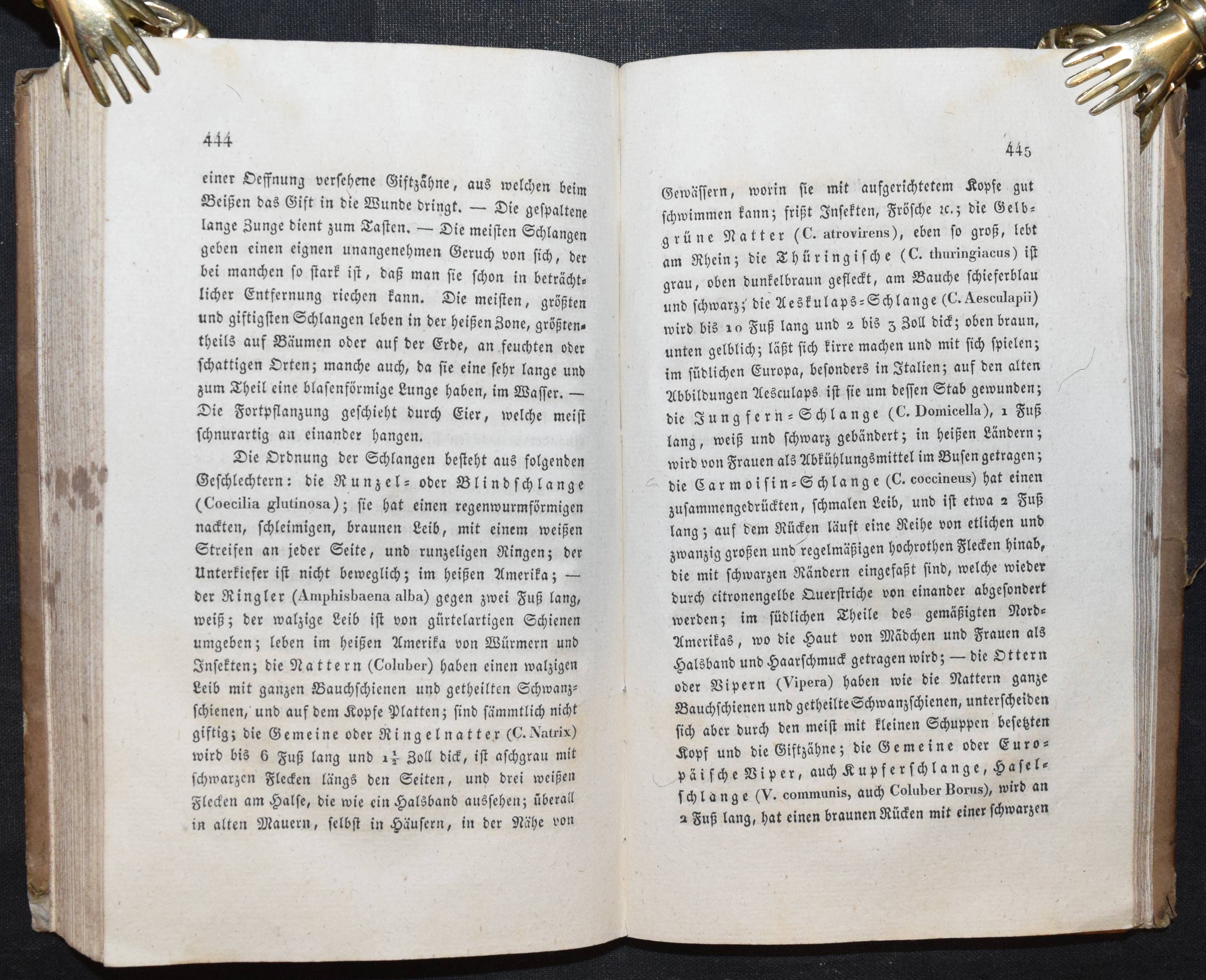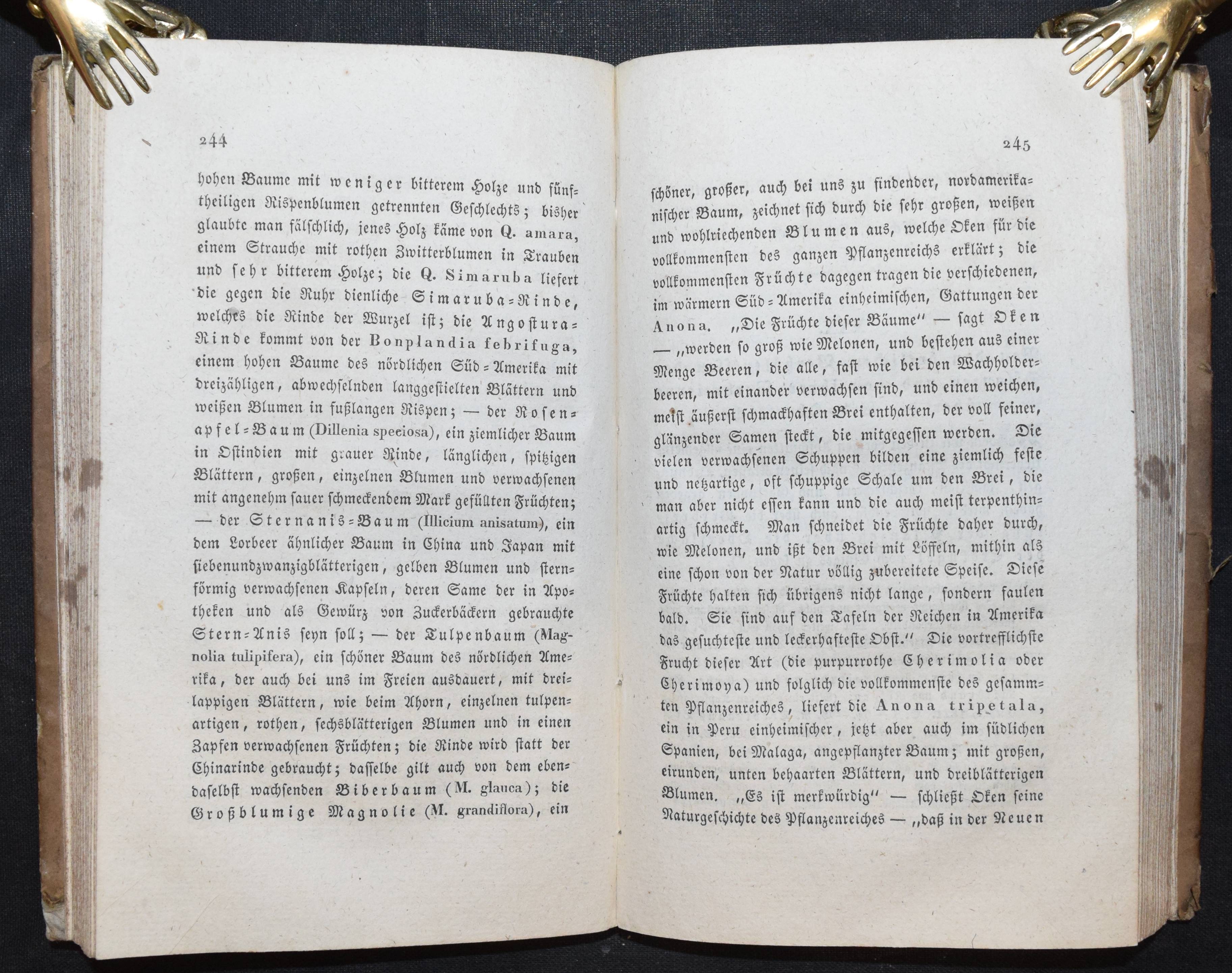 Sommer, Johann Gottfried (d. i. J. G. Volte). Gemälde der organischen Welt. Aus dessen „Gemälde der physischen Welt“ besonders abgedruckt. 2. verb. u. verm. Aufl. Prag, Calve 1831. 8°. VIII, 628, (1) S. Pbd. d. Zt. mit goldgepr. Rückenschild. J. G. Sommer (1782-1848) ist vor allem durch sein „Taschenbuch zur Verbreitung geographischer Kenntnisse“ bekannt geworden. 1809 nahm er den Namen Sommer an und war als Lehrer in Prag tätig. – Einband fleckig und etwas bestoßen, sonst gutes Exemplar.