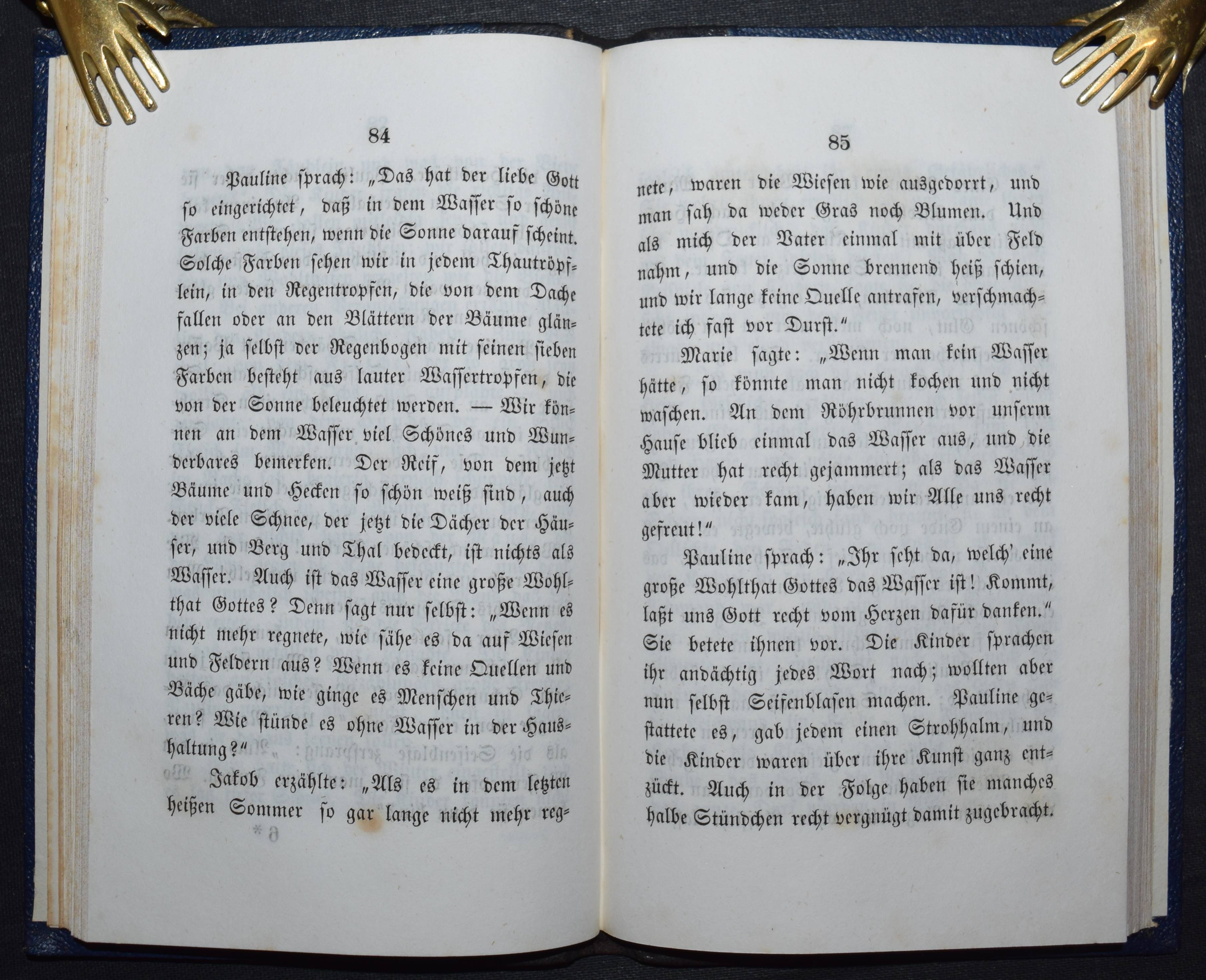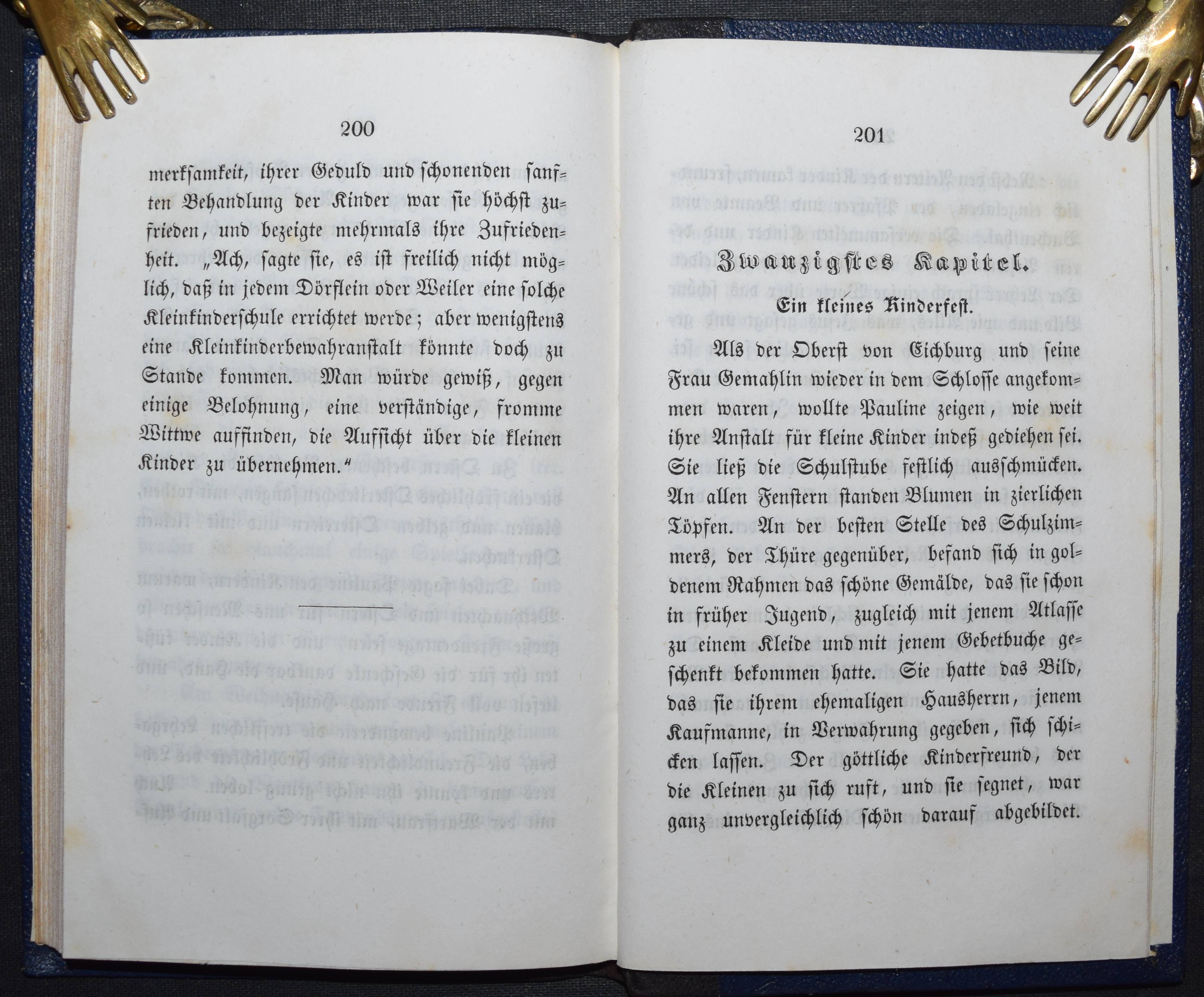 Schmid, Christoph v. Pauline, die Stifterin einer Kleinkinderschule. Erzählung. Regensburg, Manz 1848. 8°. [1] Bl., 207 S. mit gestoch. Frontispiz. Hldr. d. Z. Klotz 6354/716. – Erste Ausgabe. – V., T. u. Schnitt braunfl., stellenw. vereinzelt braunfl., sonst gutes Exemplar.