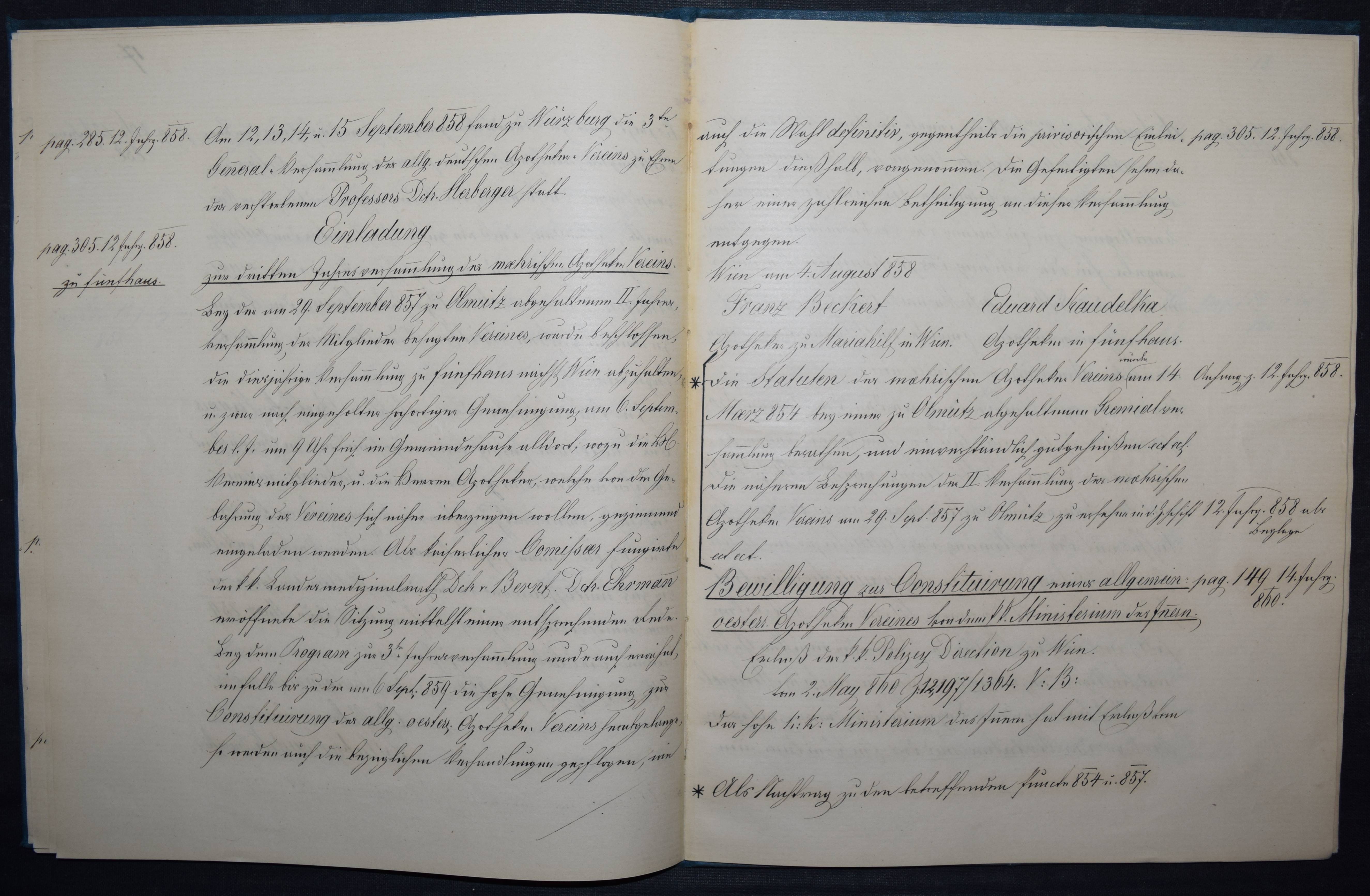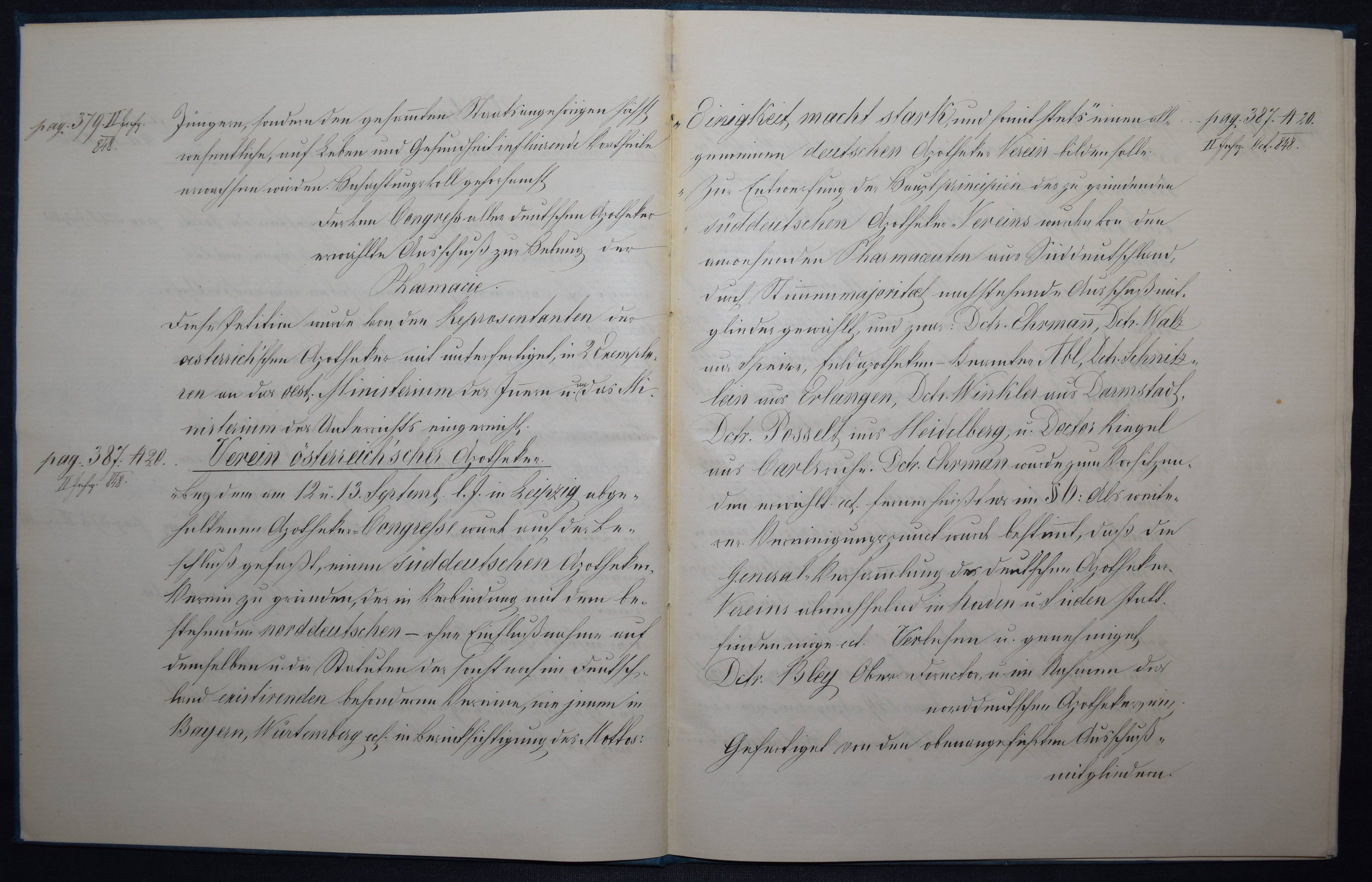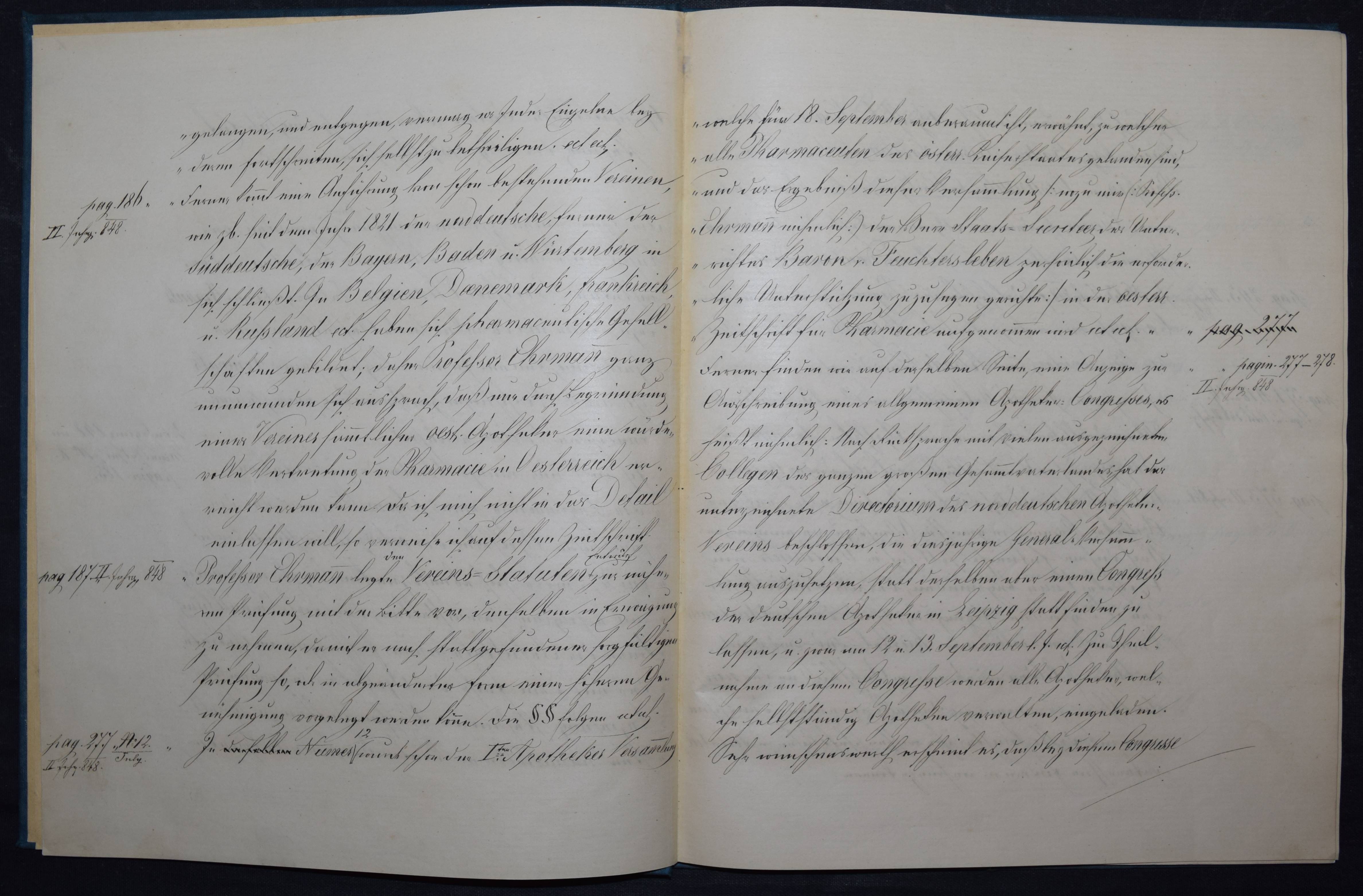 Blätter der Erin(n)erung gewidmet den verdienstvollen Männern des allg. oesterr. Apotheker-Vereins. Wohl Österreich (um 1880). 4°. Titelbl., 45 beids. beschr. Bl. Blindgepräg. Ln. d. Zt. Gewidmet v. Gustav Wagner, an die „Herren K.Rath Joseph Fuchs, Director Rudolf Schiffner, und Director-Stellvertreter Anton Schürer von Waldheim“. – Enthält Aufzeichnungen über die Jahre 1848 bis 1871. – Berieben, Innengelenke gebrochen.