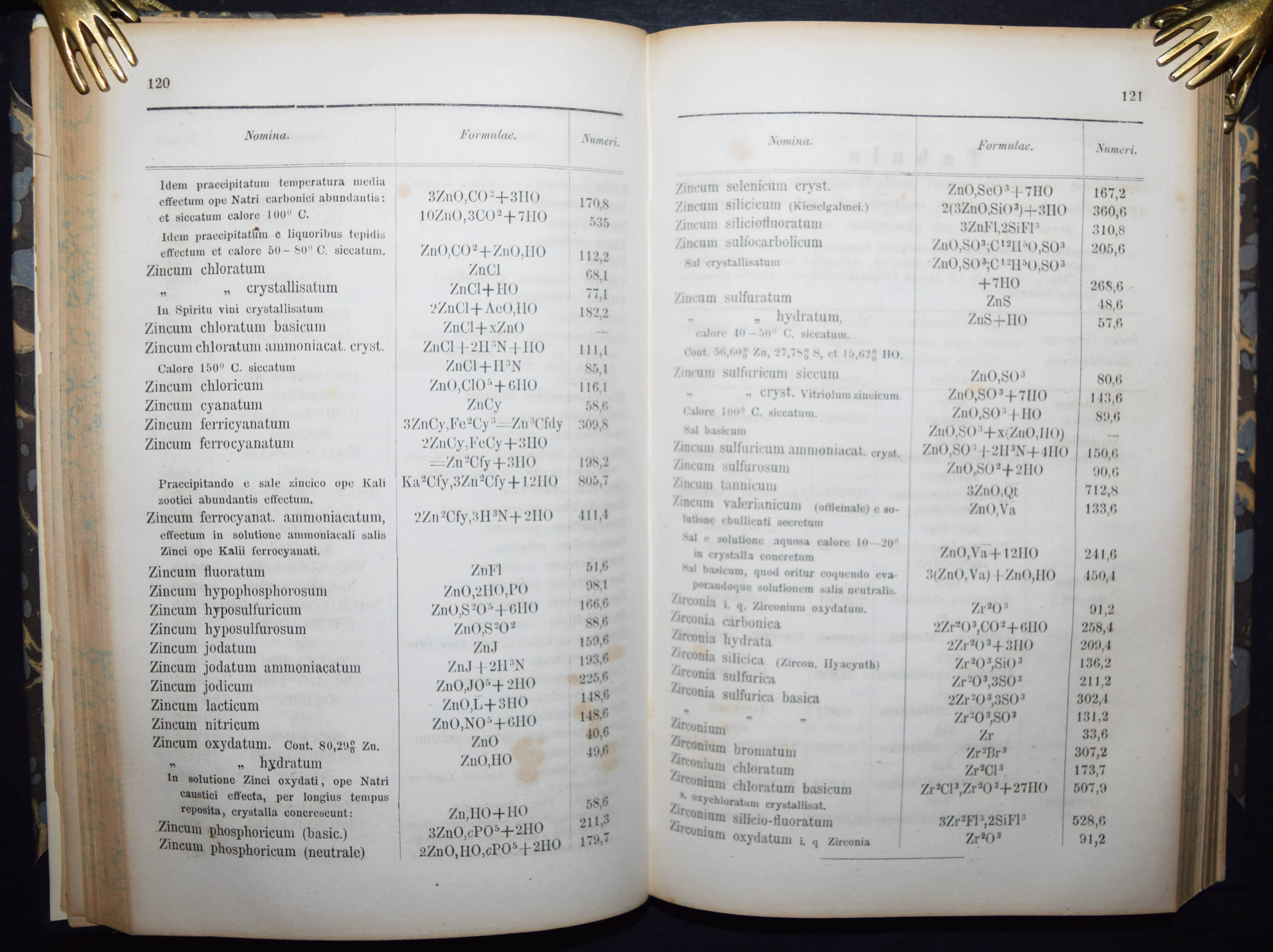 Hager, H(ermann). Adjumenta varia chemica et pharmaceutica atque subsidia ad parandas aquas minerales. Editio tertia priore auctior atque emendatior. Leipzig, Günther 1876. Gr.-8°. 3 Bl., 504 S. Hln. um 1920. Hermann Hager (1816-1897) gilt „als einer der fruchtbarsten pharmazeutischen Schriftsteller seiner Zeit. Er veröffentlichte eine Reihe von Standardwerken (u.a. Manuale pharmaceuticum). Gründer der „Pharm. Centralhalle“, Entdecker zahlreicher neuer Prüfungsmethoden u.a. auf dem Gebiet der Lebensmittelchemie“ (NDB). – Innengelenke nach dem Titel u. dem ersten Blatt mit Papierstreifen überklebt (geringfüg. Textverlust), stellenw. leicht stockfl., sonst gutes Exemplar.