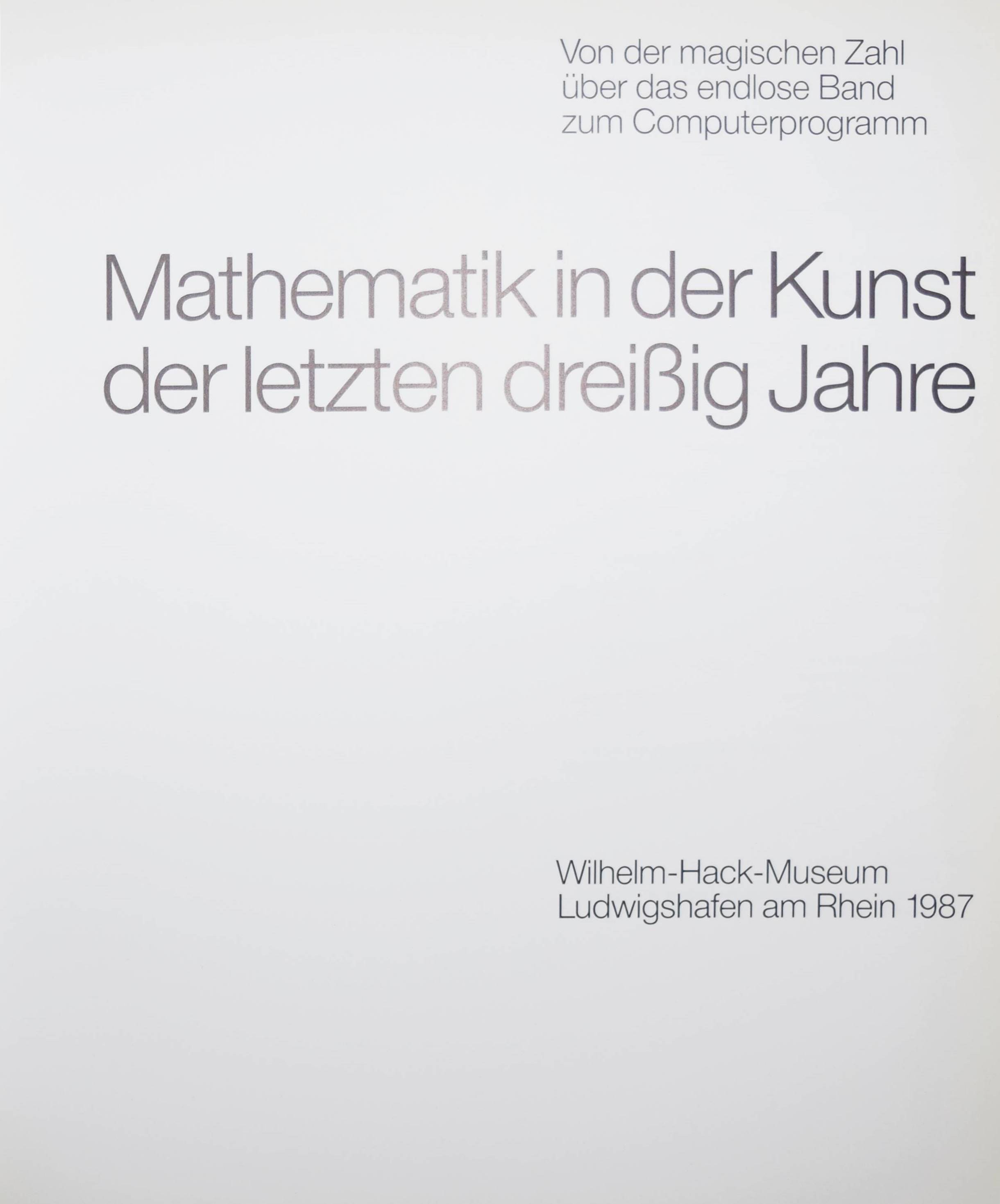Mathematik in der Kunst der letzten dreißig Jahre. Von der magischen Zahl über das endlose Band zum Computerprogramm. Ludwigshafen, Wilhelm-Hack-Museum 1987. 4°. 294 S. überw. Abb. Farbig illustr. OKart. Sehr gutes und sauberes Exemplar.