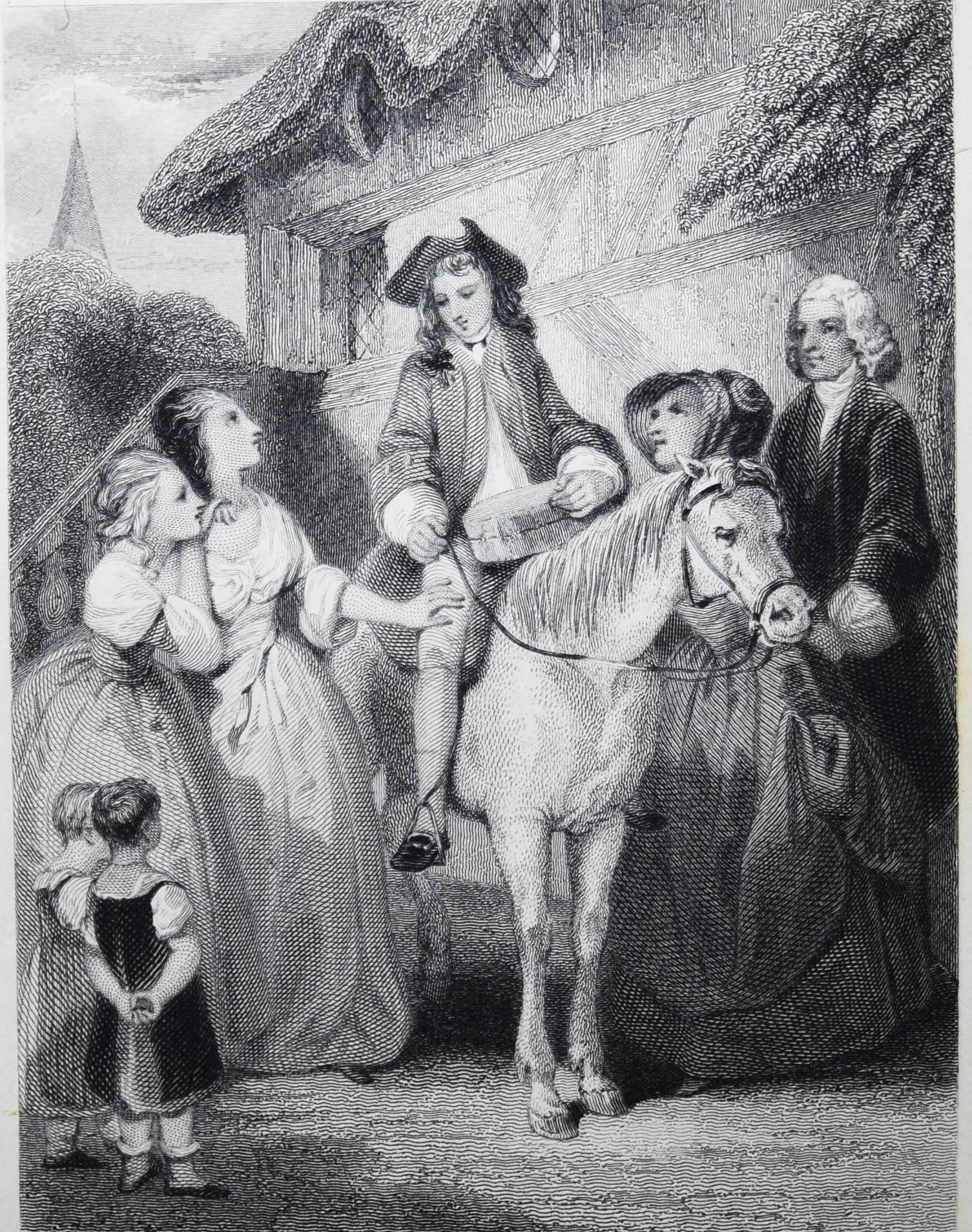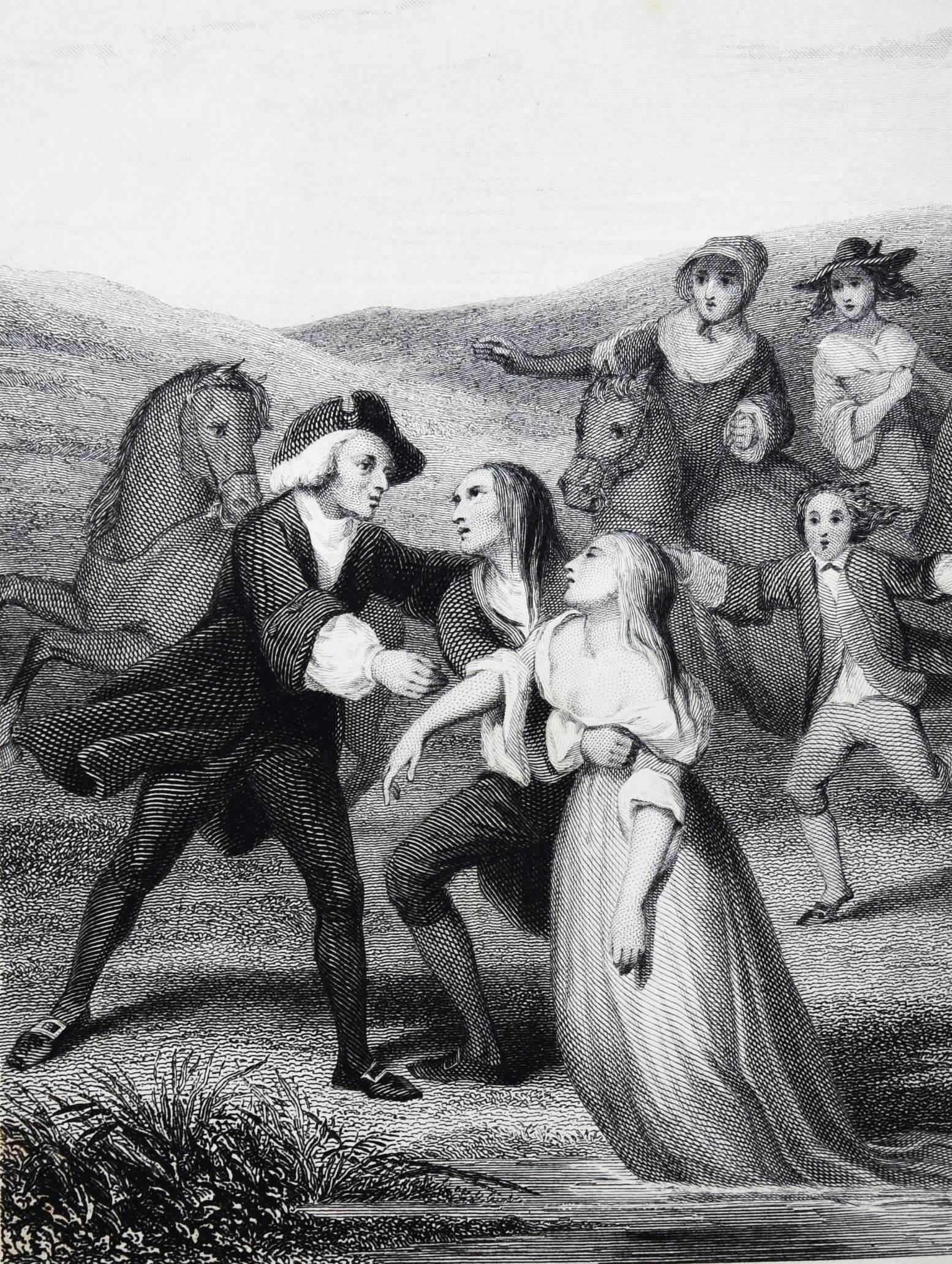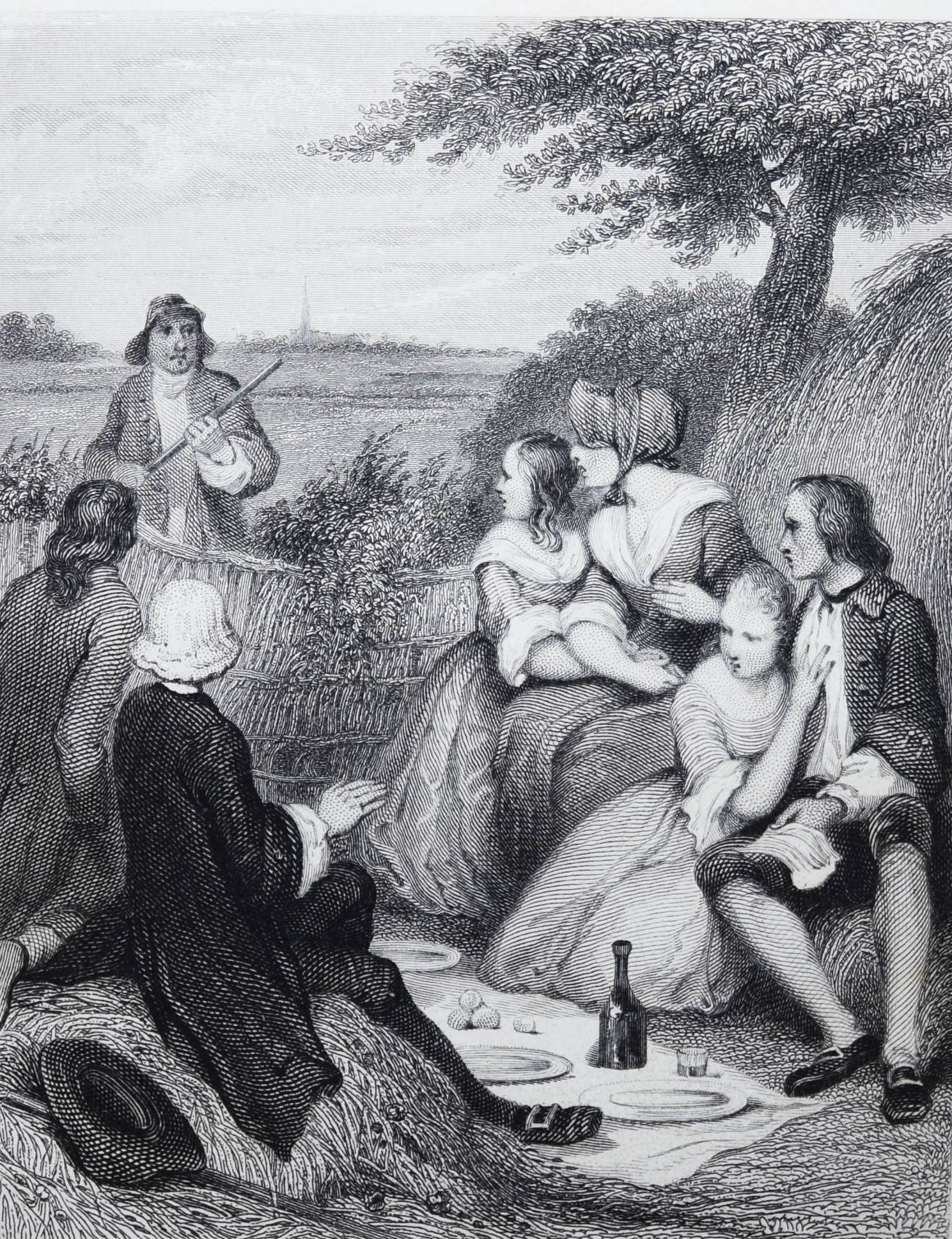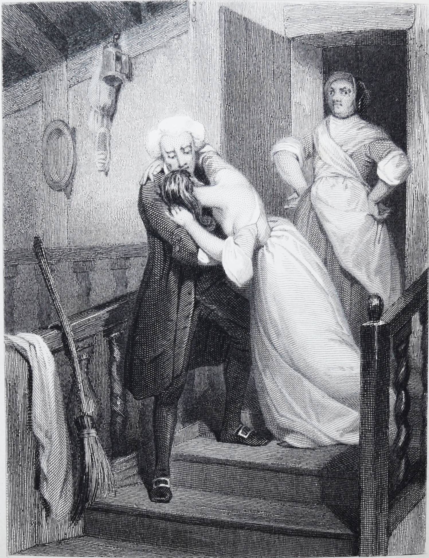 Goldsmith, (Oliver). Le vicaire de Wakefield. Traduit en francais avec le texte anglais en regard, par Charles Nodier, de l’ Académie francaise. Précédé d’une notice par la même sur la vie et les ouvrages de Goldsmith, et suivie de quelques notes. Paris, Bourgueleret 1838. Gr.-8°. XXVII, 581 S., 1 Bl. mit zahlr. Holzstichillustrationen im Text und 11 Holzstichvignetten von T(ony) Johannot. Grüner Hldr. d. Zt. mit goldgepr. Rückentitel und dekorativer Rückenvergoldung (signiert Koehler). Erste Ausgabe mit diesen Illustrationen. – Einband etwas berieben, stockfl., sonst schön dekorativ gebundenes Exemplar.